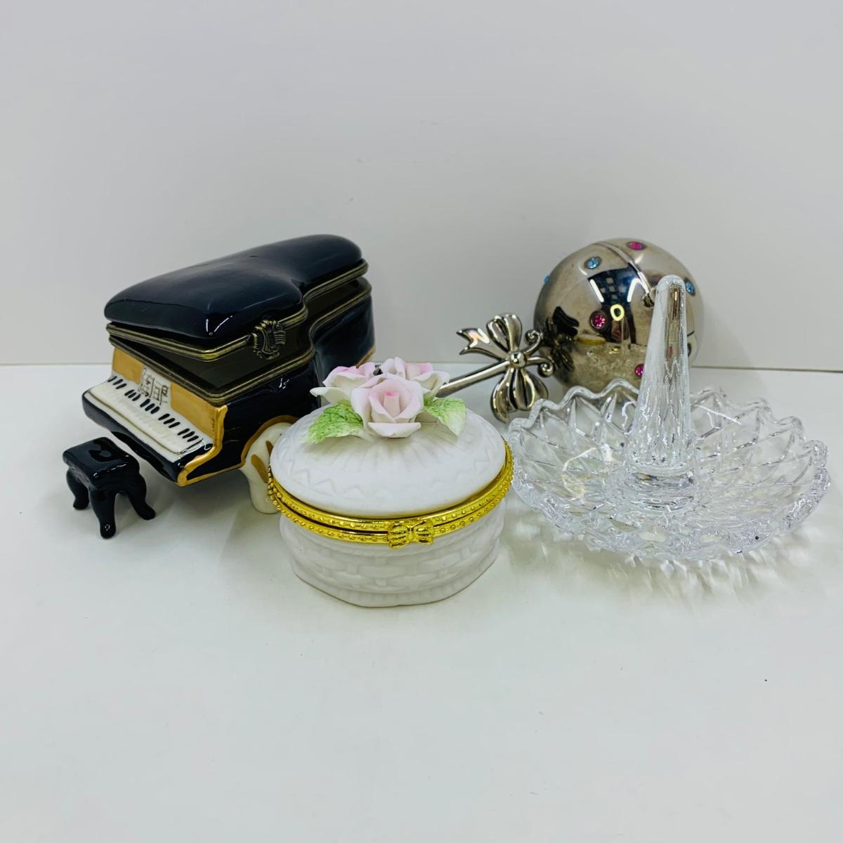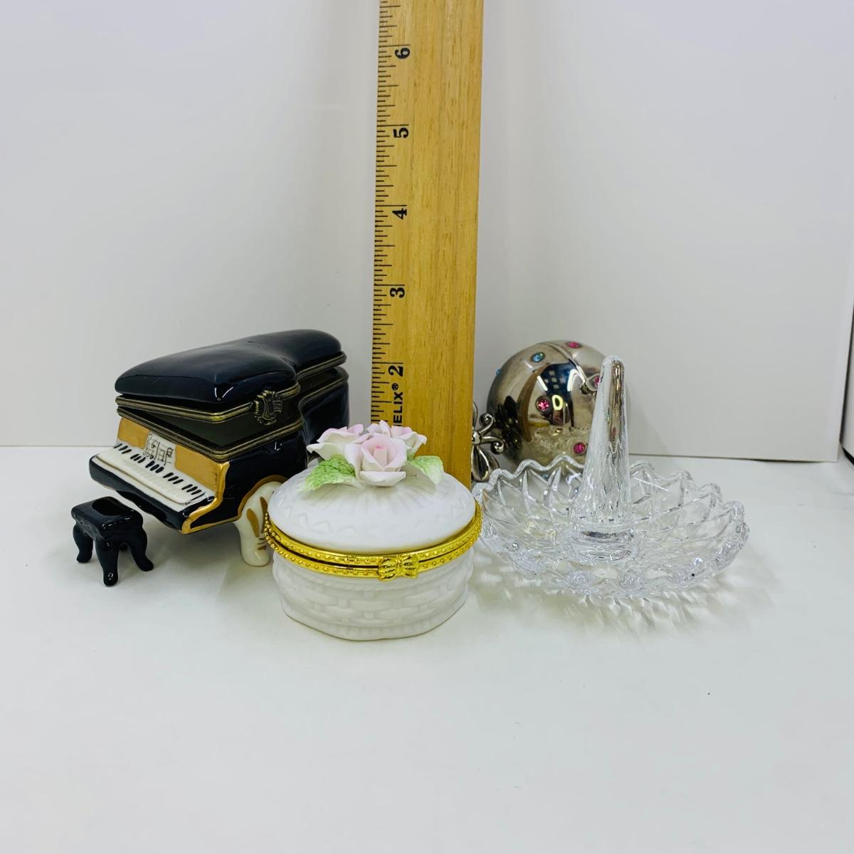 LOT 277R: Lenox Jeweled Rattle/Picture Frame, Trinket Boxes & Crystal Ring Holder