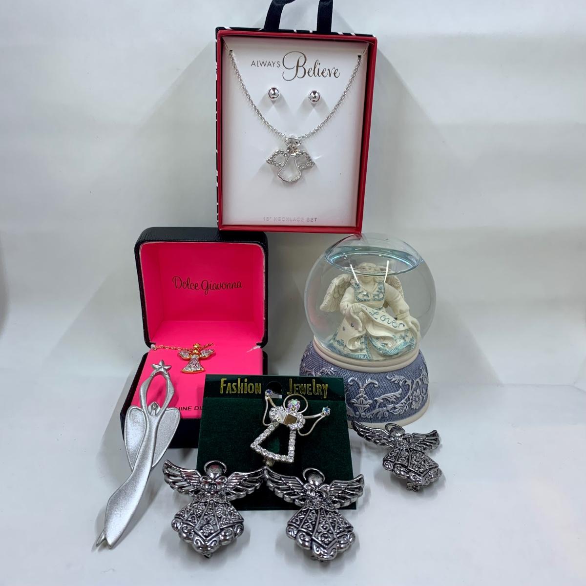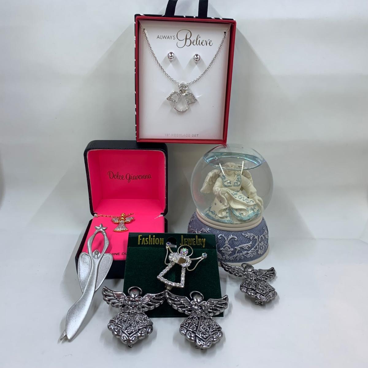 LOT 283R: Angel Collection: Sarah's Angels Water Globe, Necklaces, Brooches