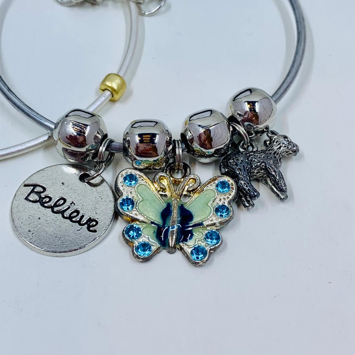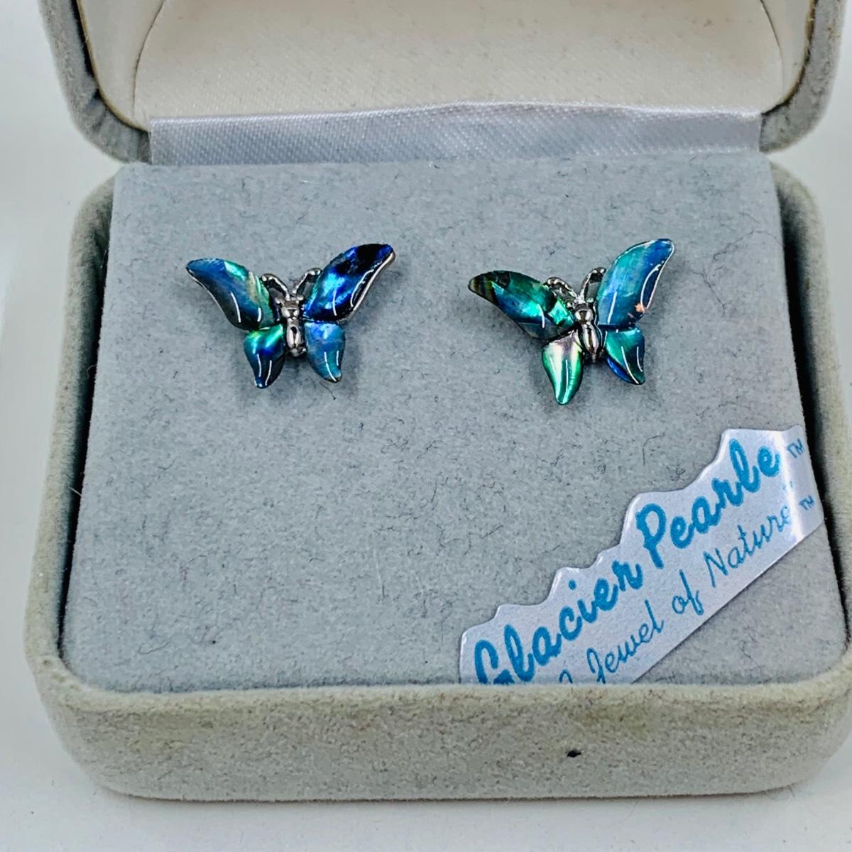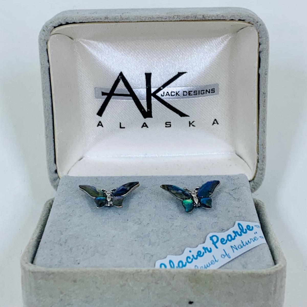 LOT 284R: Glacier Pearle Butterfly Pierced Earrings, Alex & Ani Bracelet & Rose Pendant Necklace