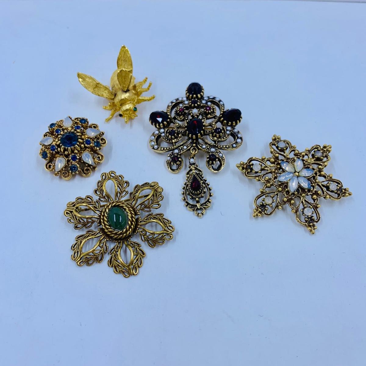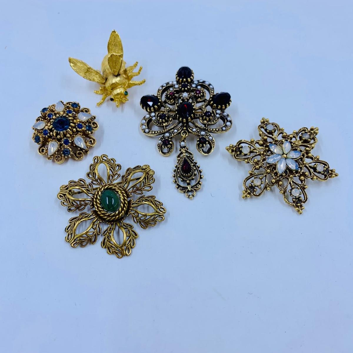 LOT 289R: Vintage "Bobber Bee" Brooch & Vintage Jeweled Brooches