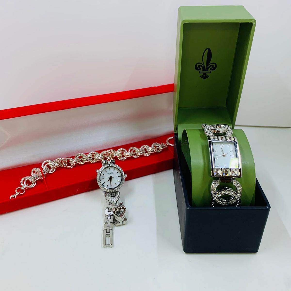 LOT 293R: Bulova Watch, FMD Ladies Watch & Silver Tone Bracelet