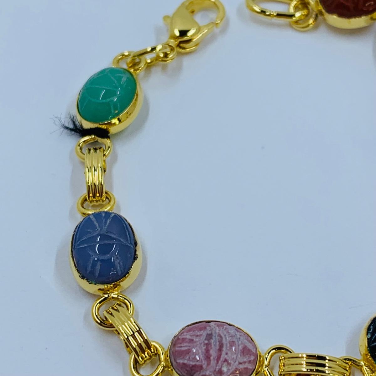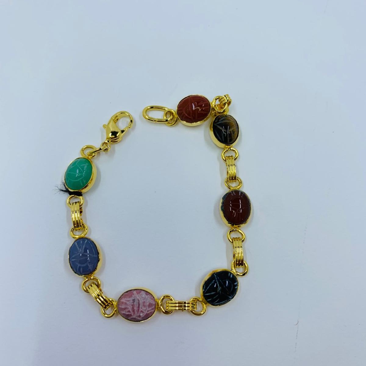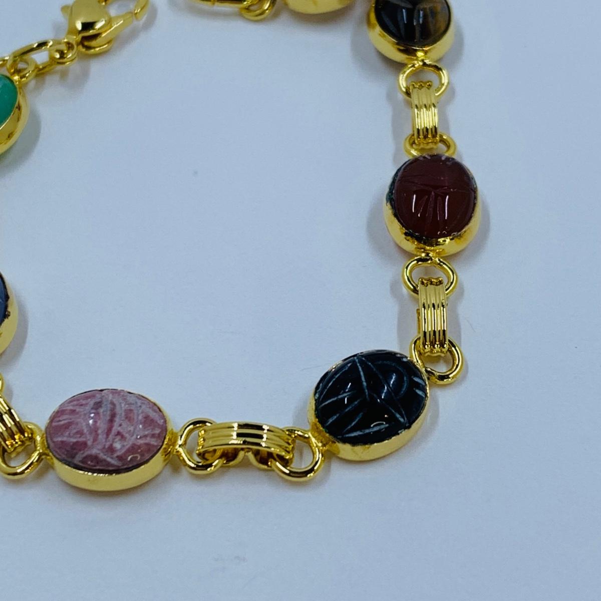 LOT 296R: Budda Power Bracelets, Good Luck Panel Link Bracelet & Multi-Stone Scarab Link Bracelet