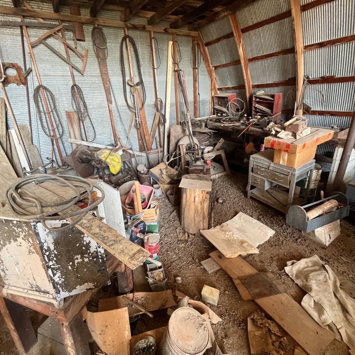 Take a good long look! There is a brass boat propeller, antique tools, Blacksmithing items, saws and who knows what all!