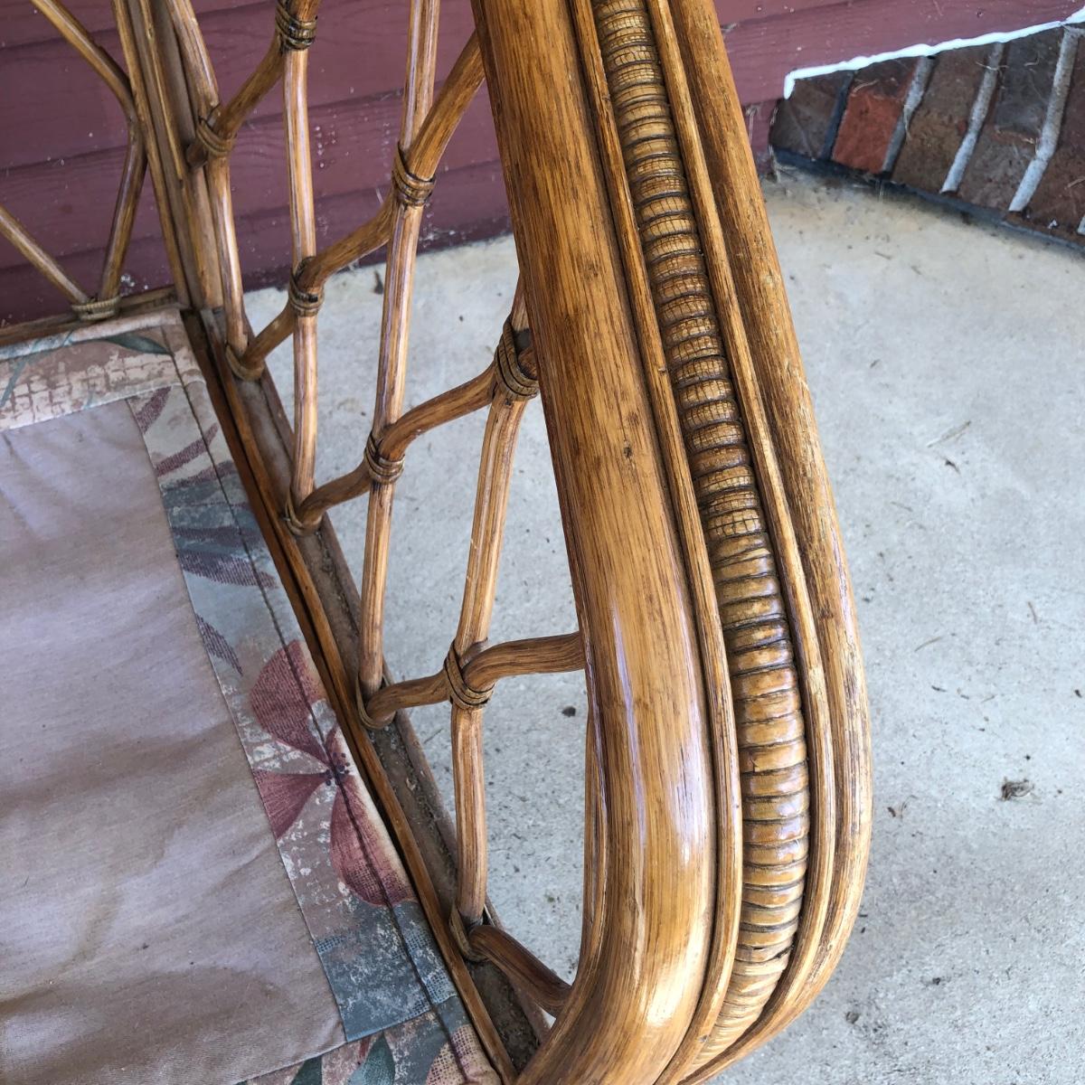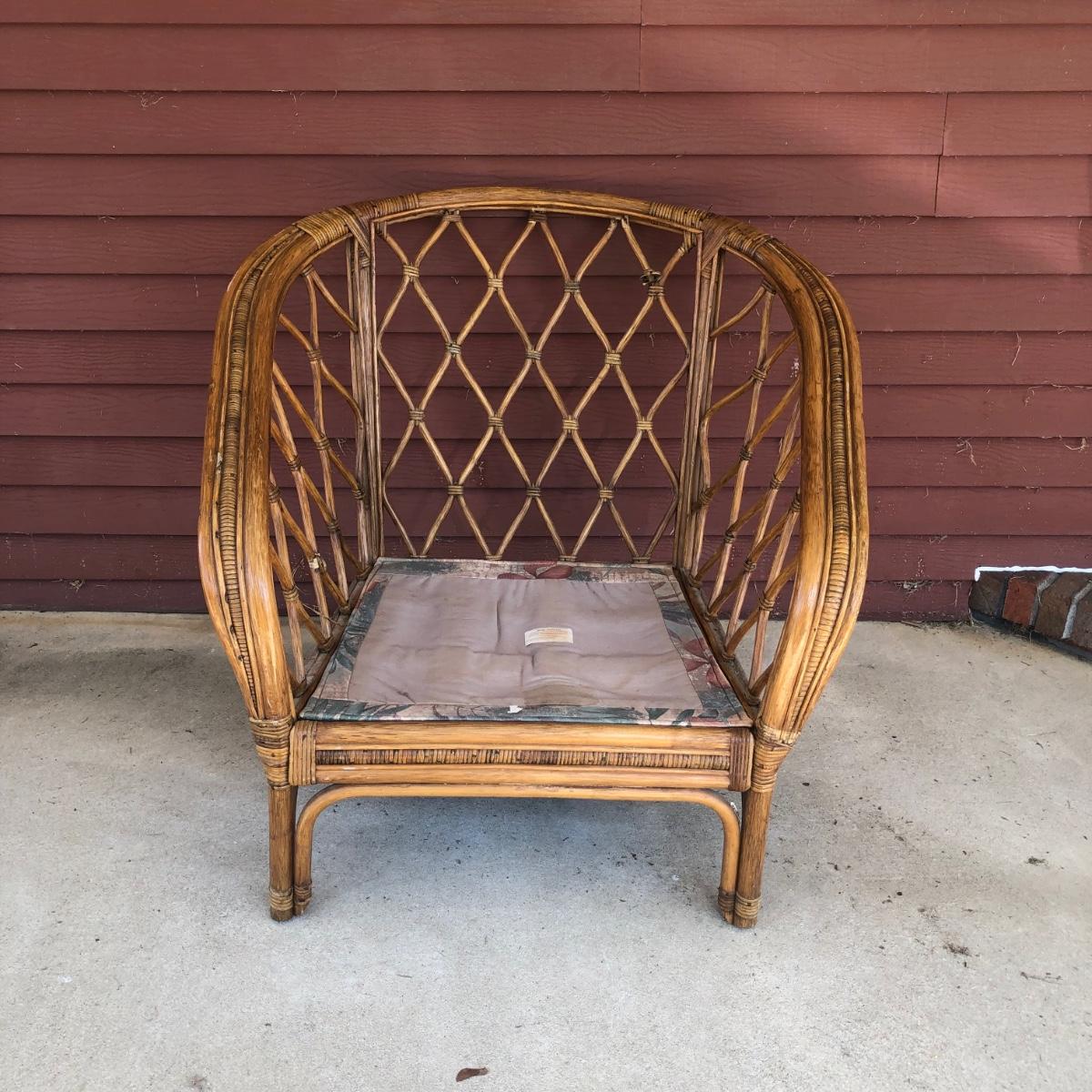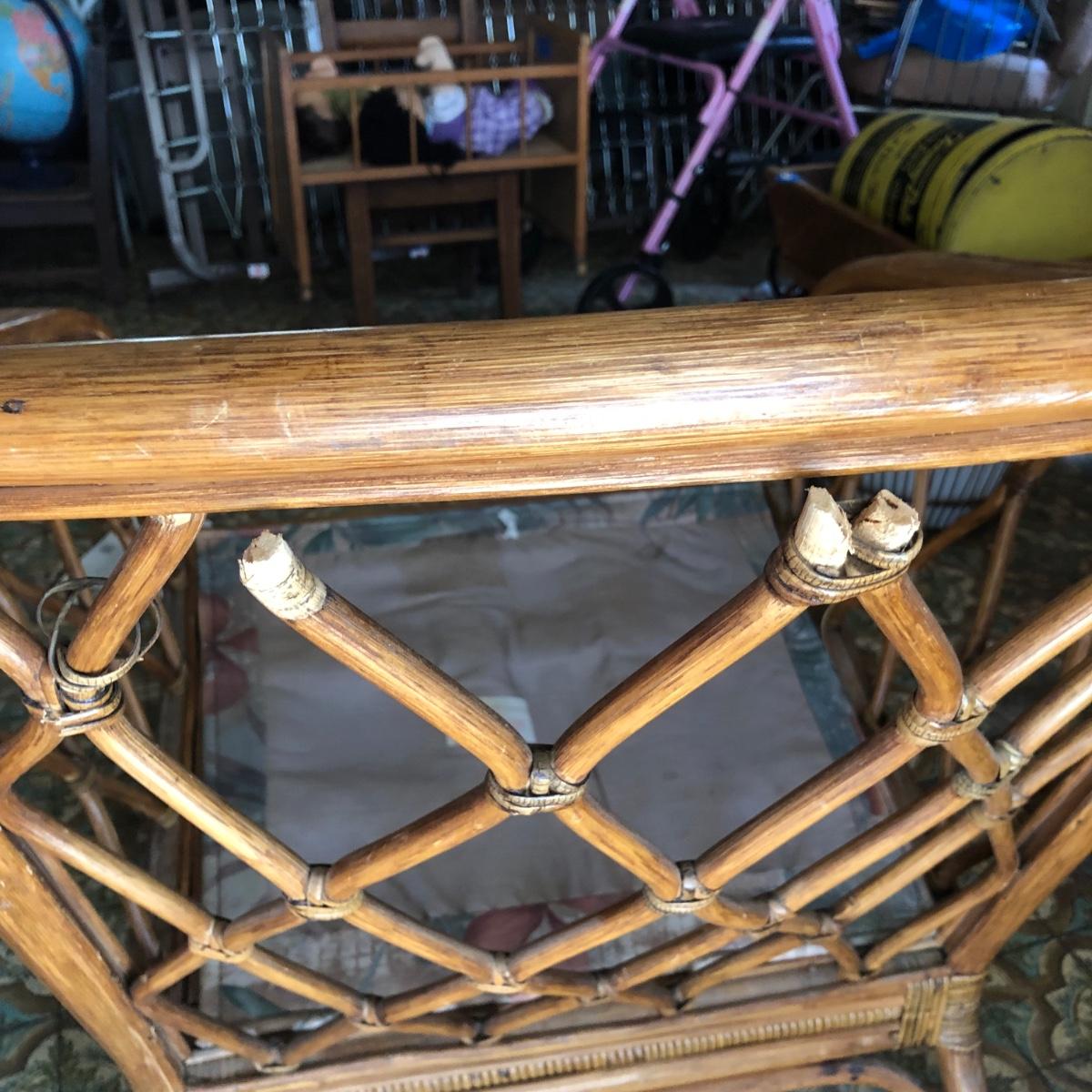 No cushion included. Condition issues - see photos. 37W x 31D x 33H.