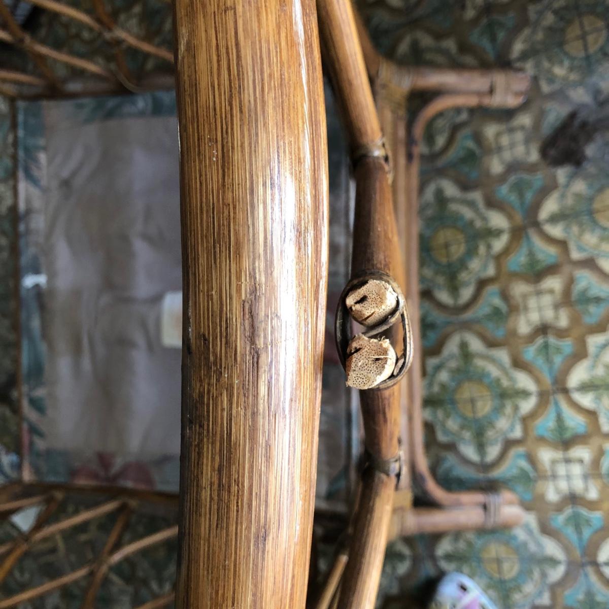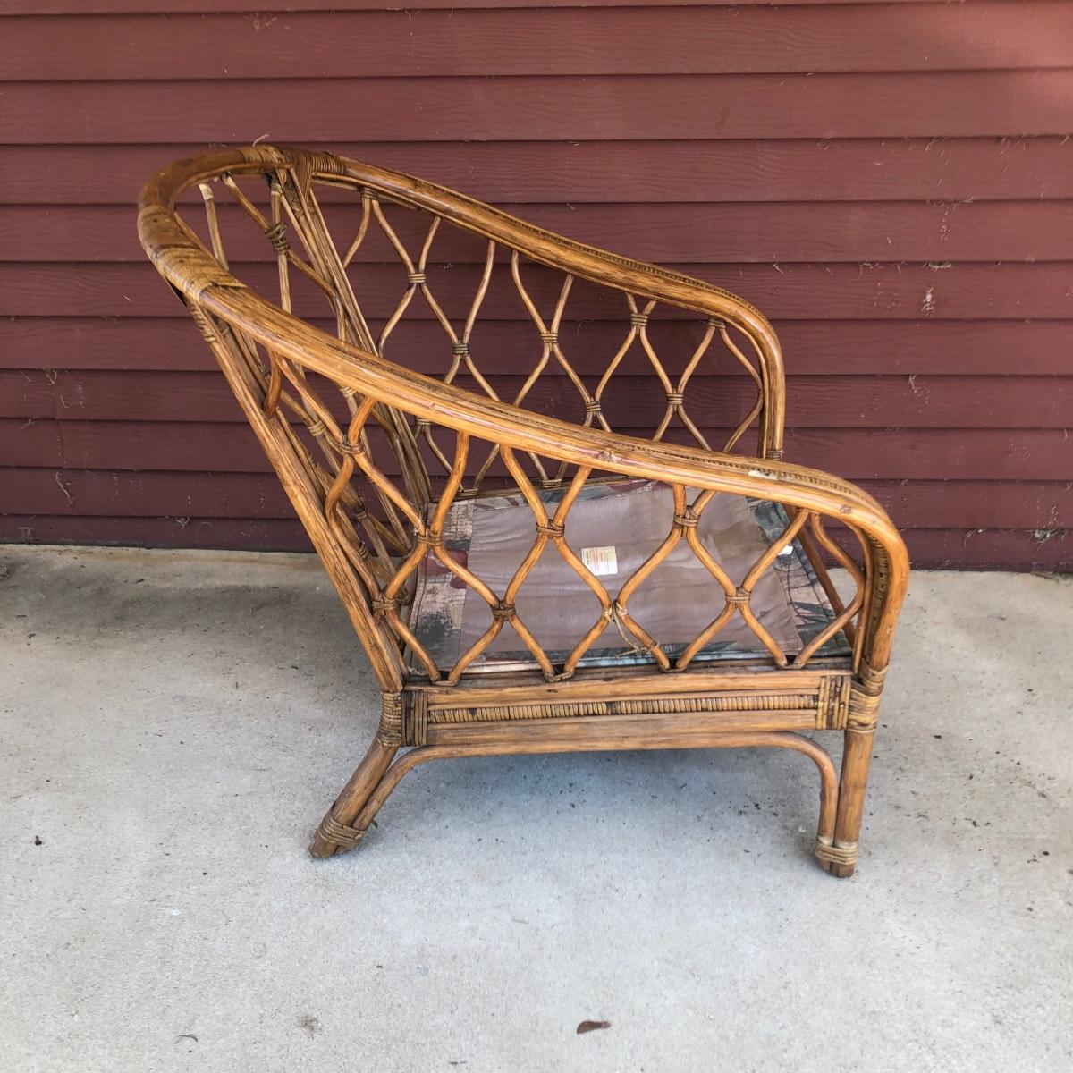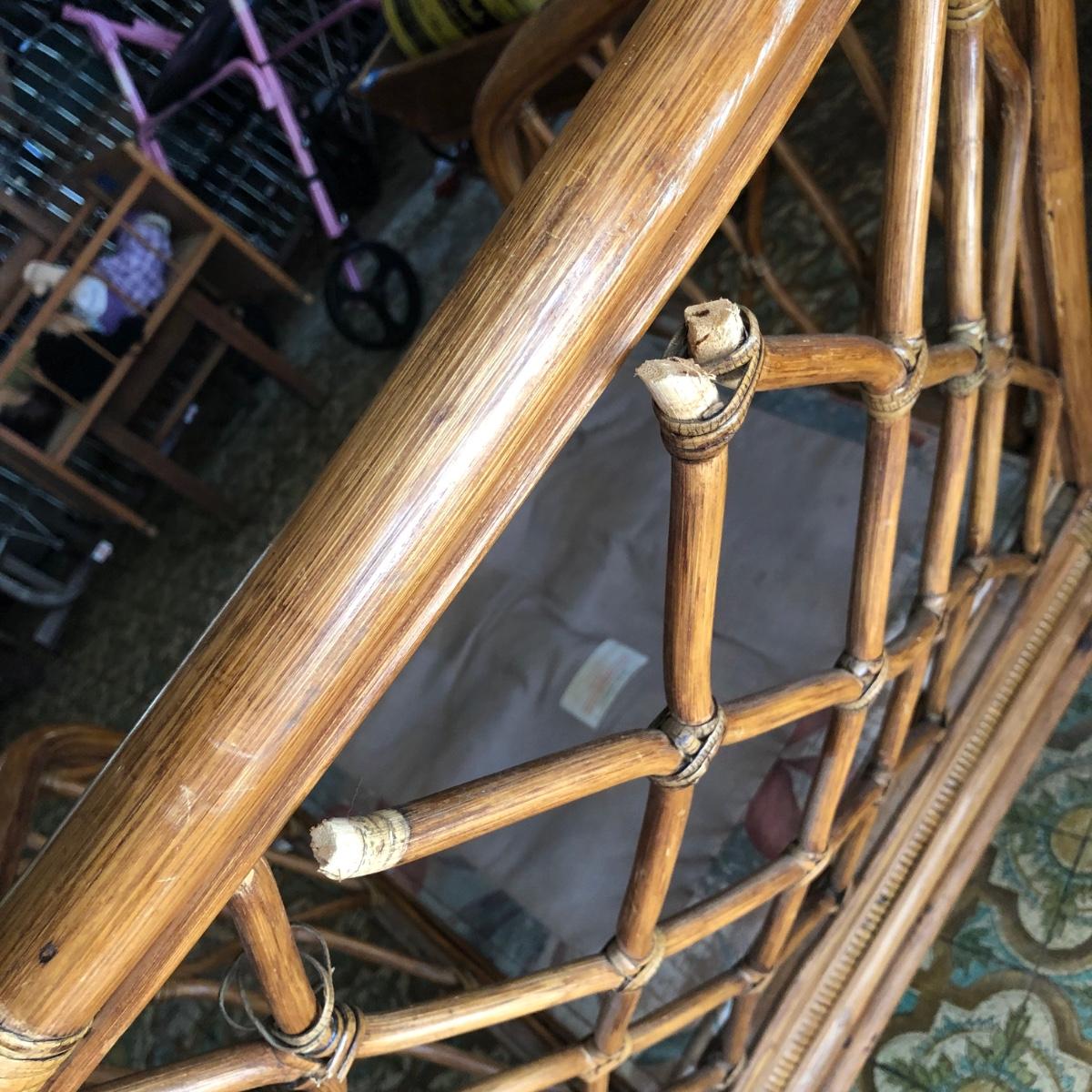 No cushion included. Condition issues - see photos. 37W x 31D x 33H.