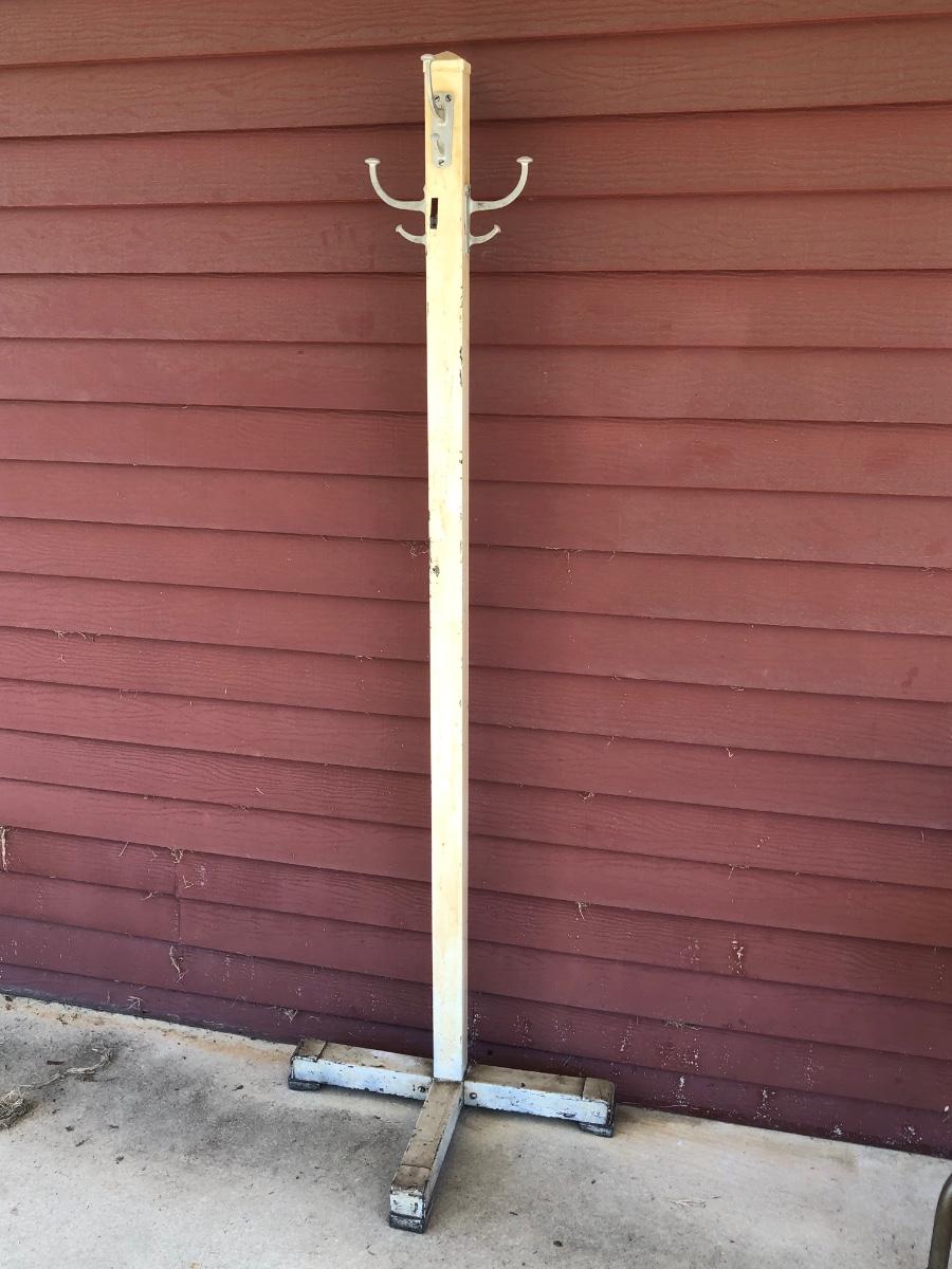 Coat rack has condition issues w/ only 3 legs. Measures 22W x 12D x 66H.