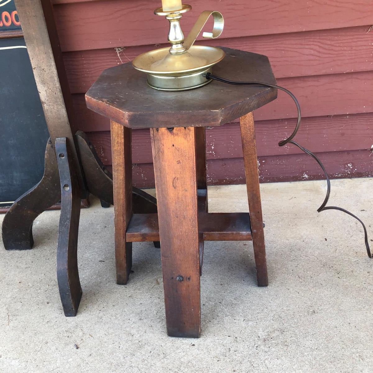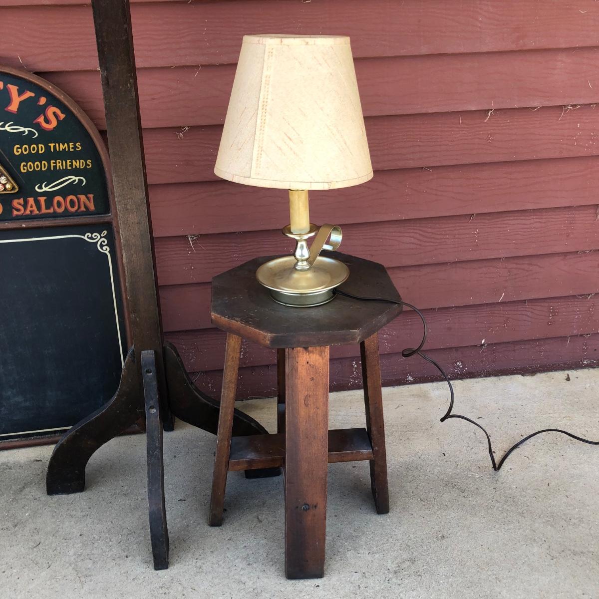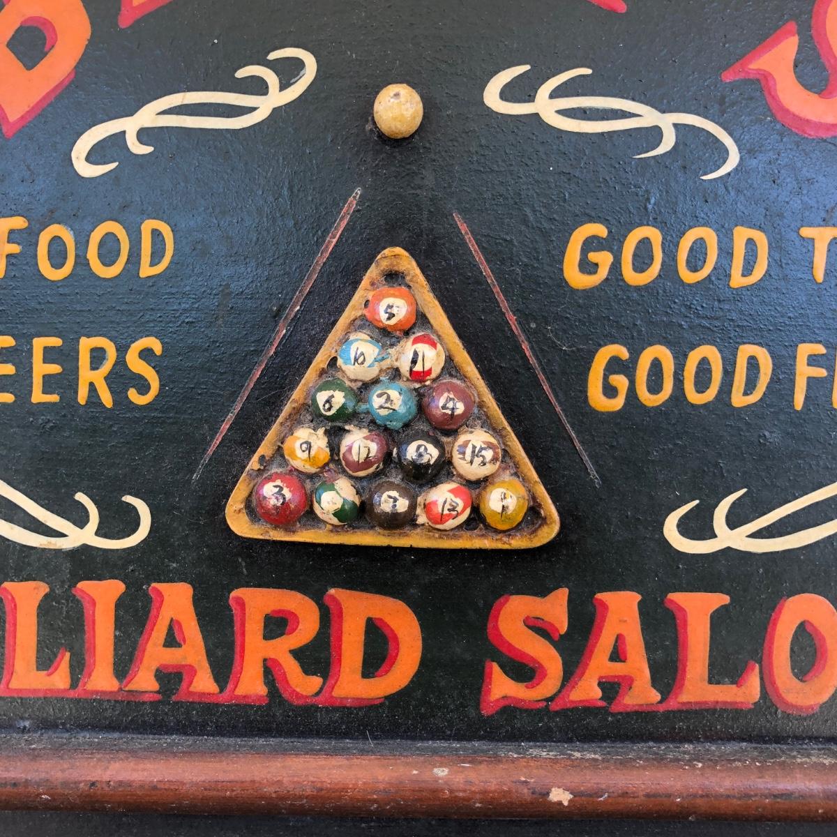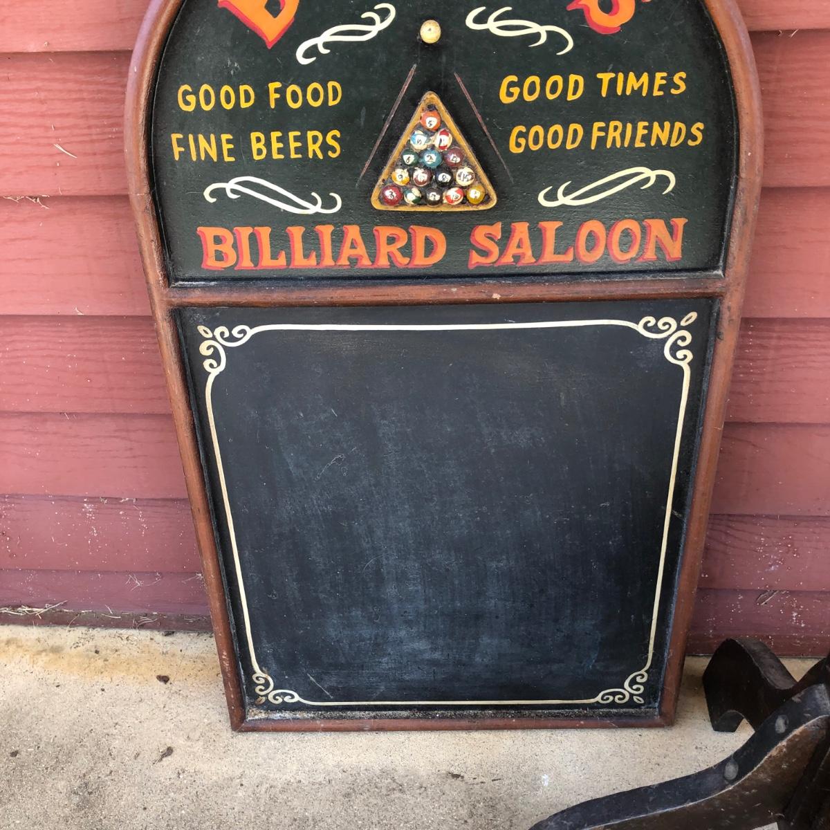 LOT 12M: Vintage Coat Rack, Stool, Betty's Billiard Saloon Chalkboard Sign & Lamp