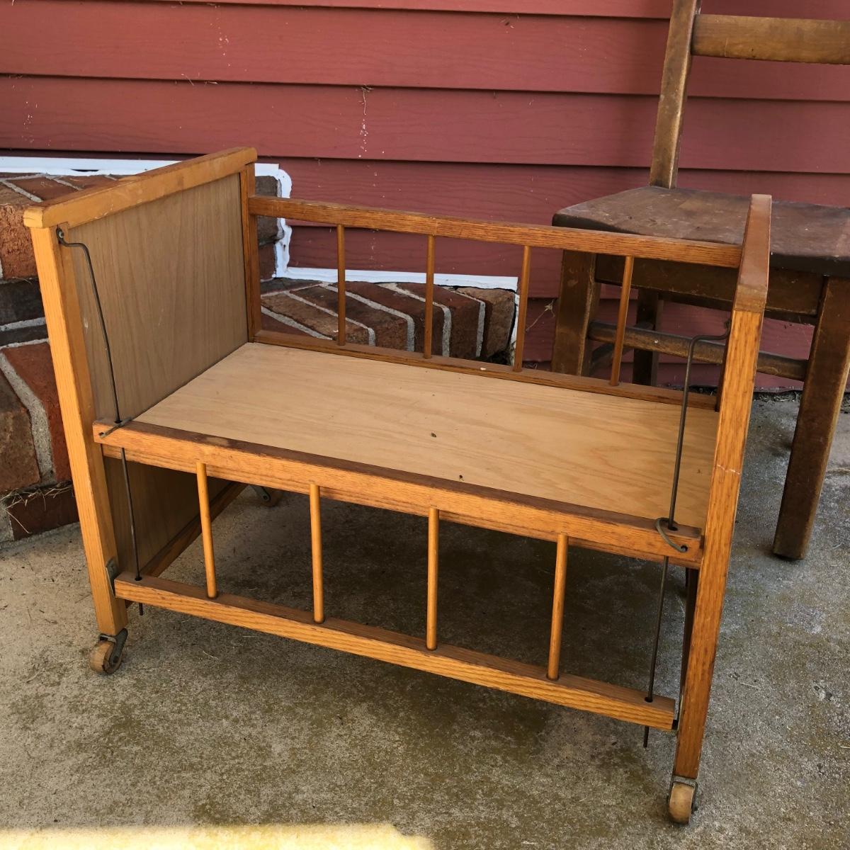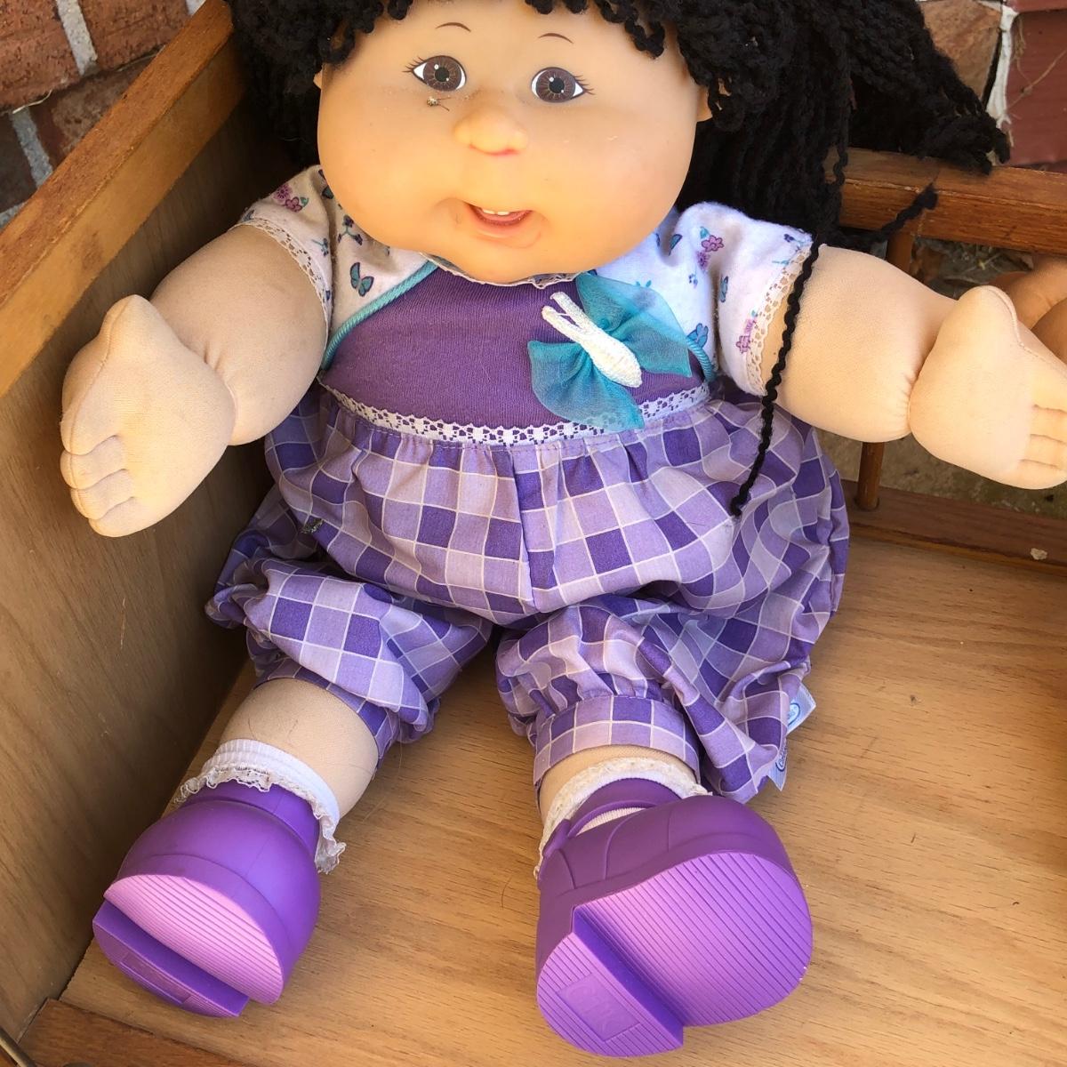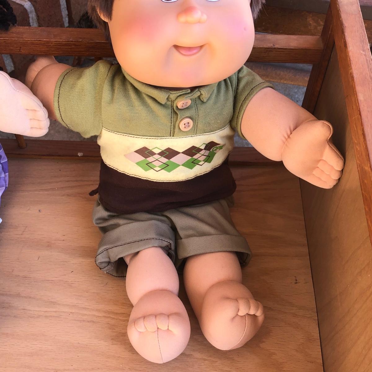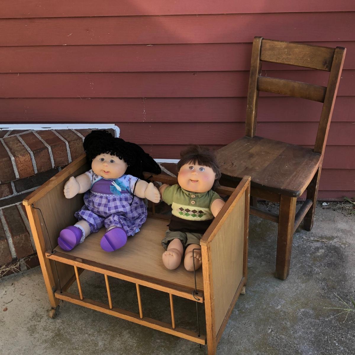 LOT 15M: Two Vintage Cabbage Patch Kids Dolls w/ Doll Crib & Child's Chair
