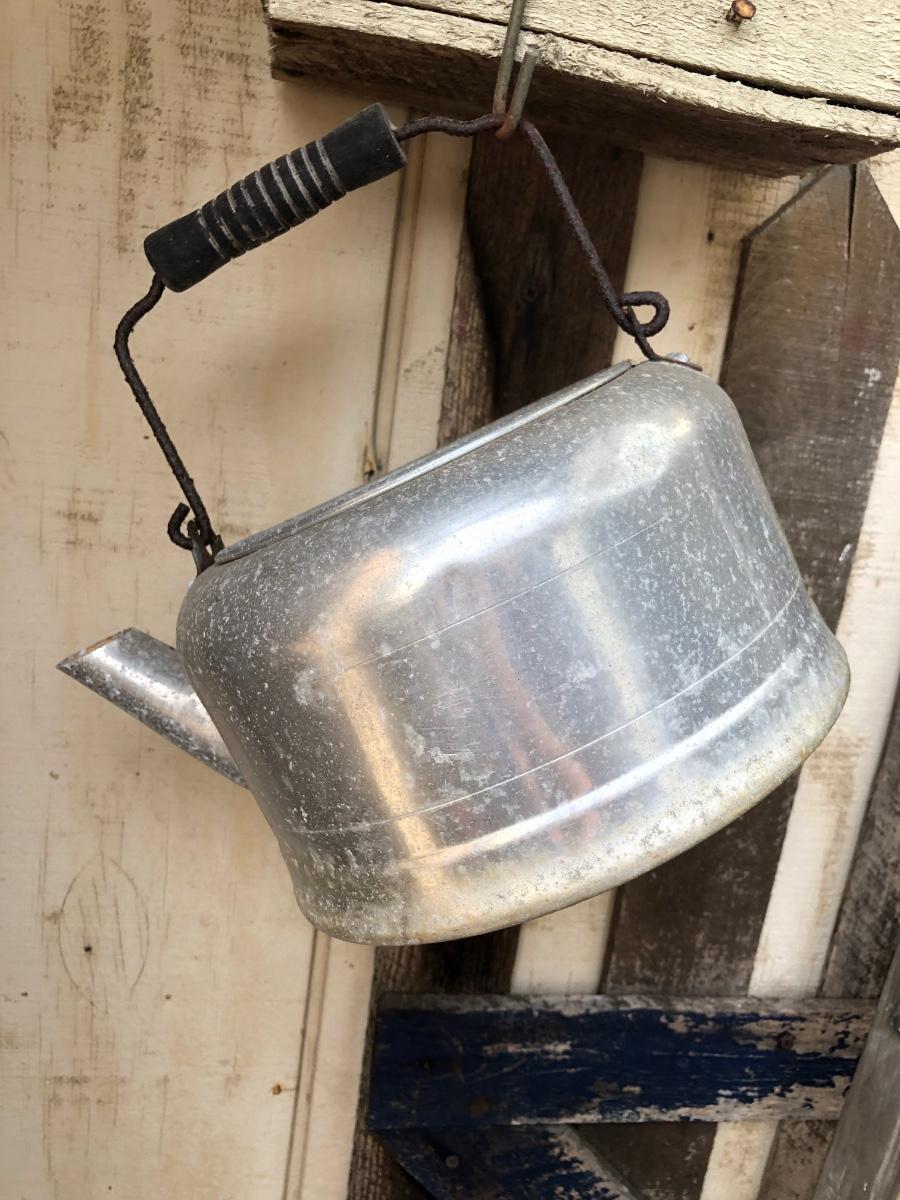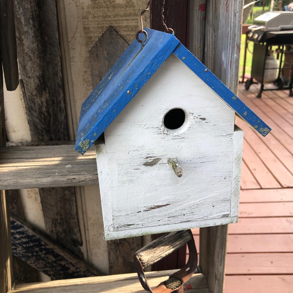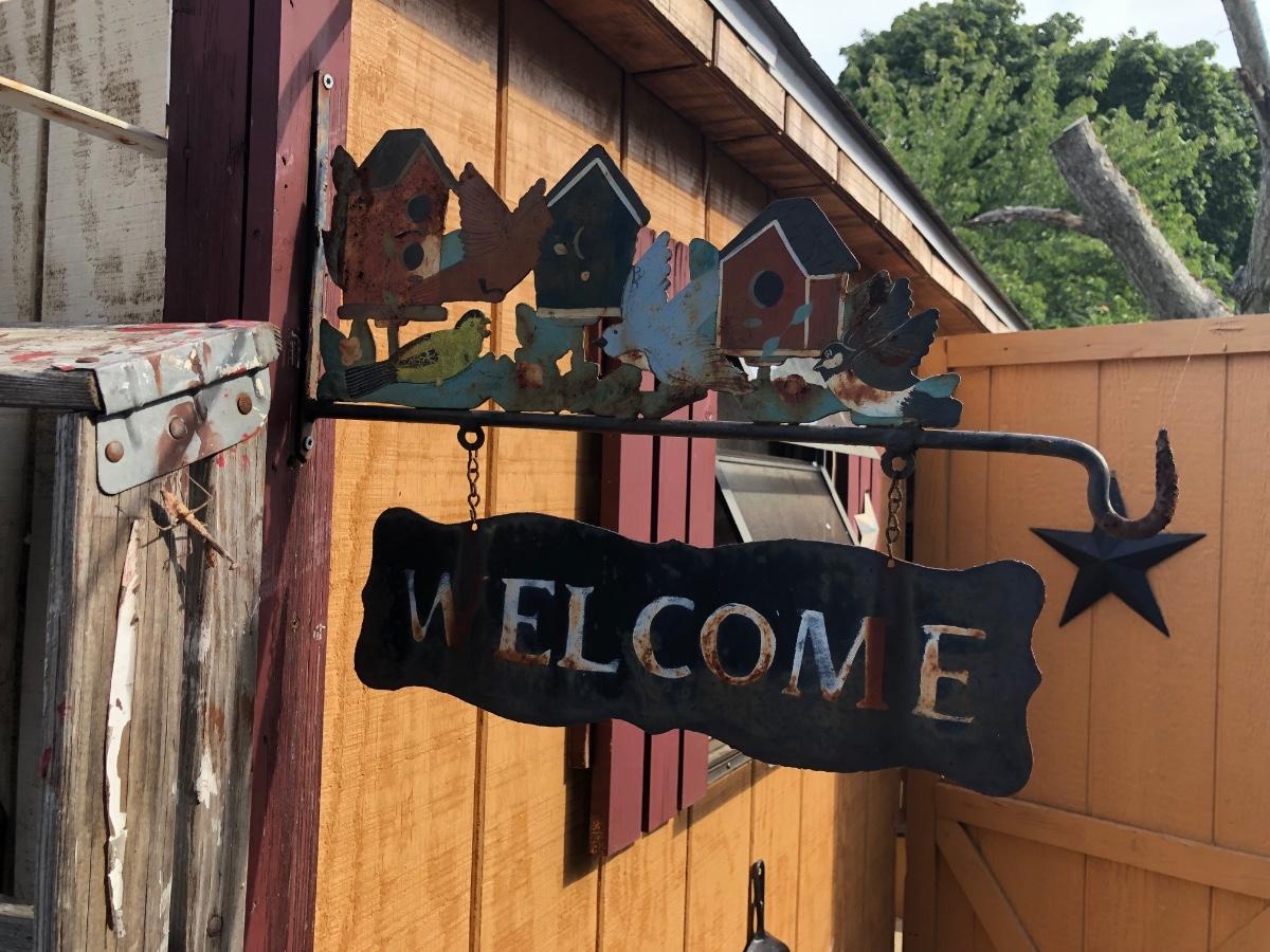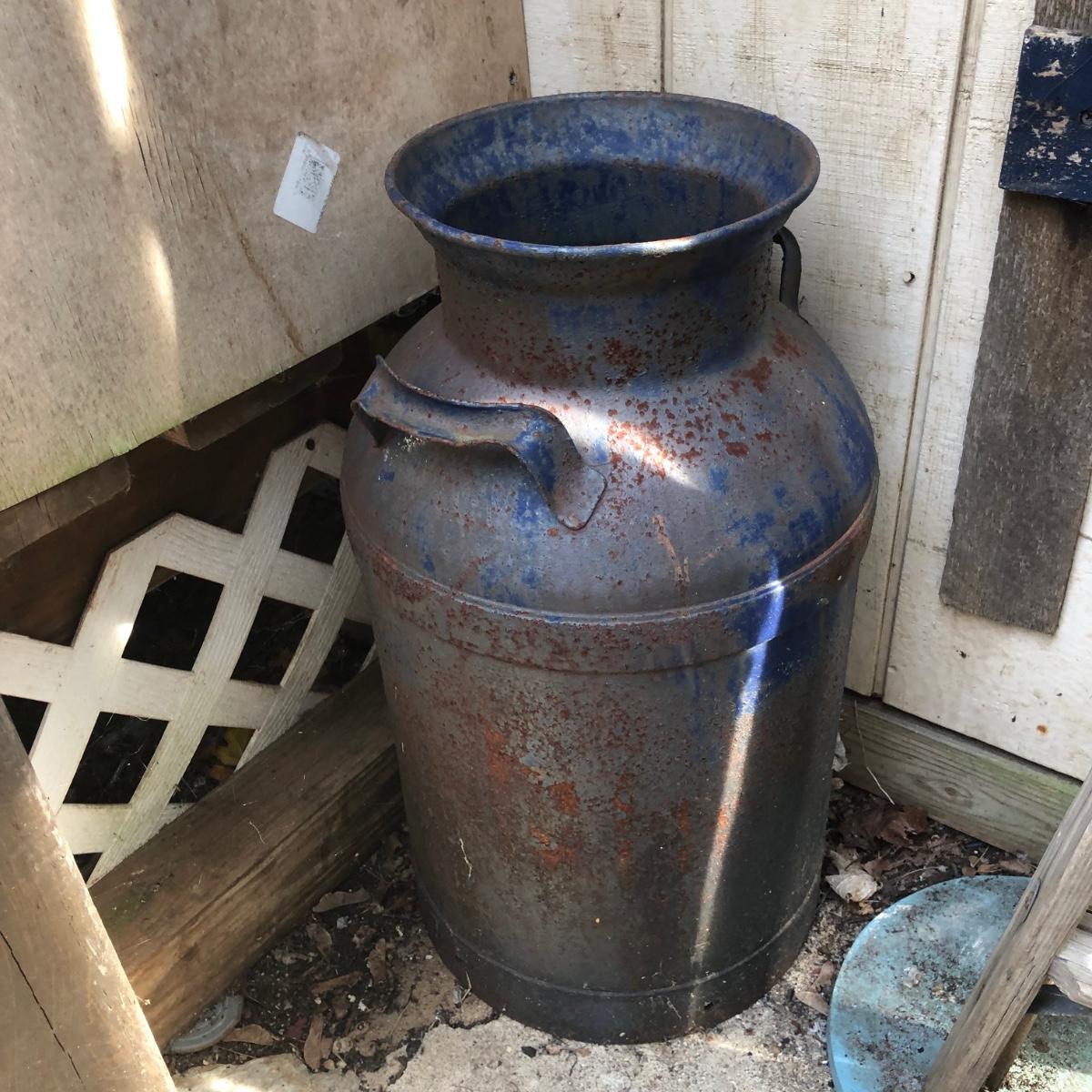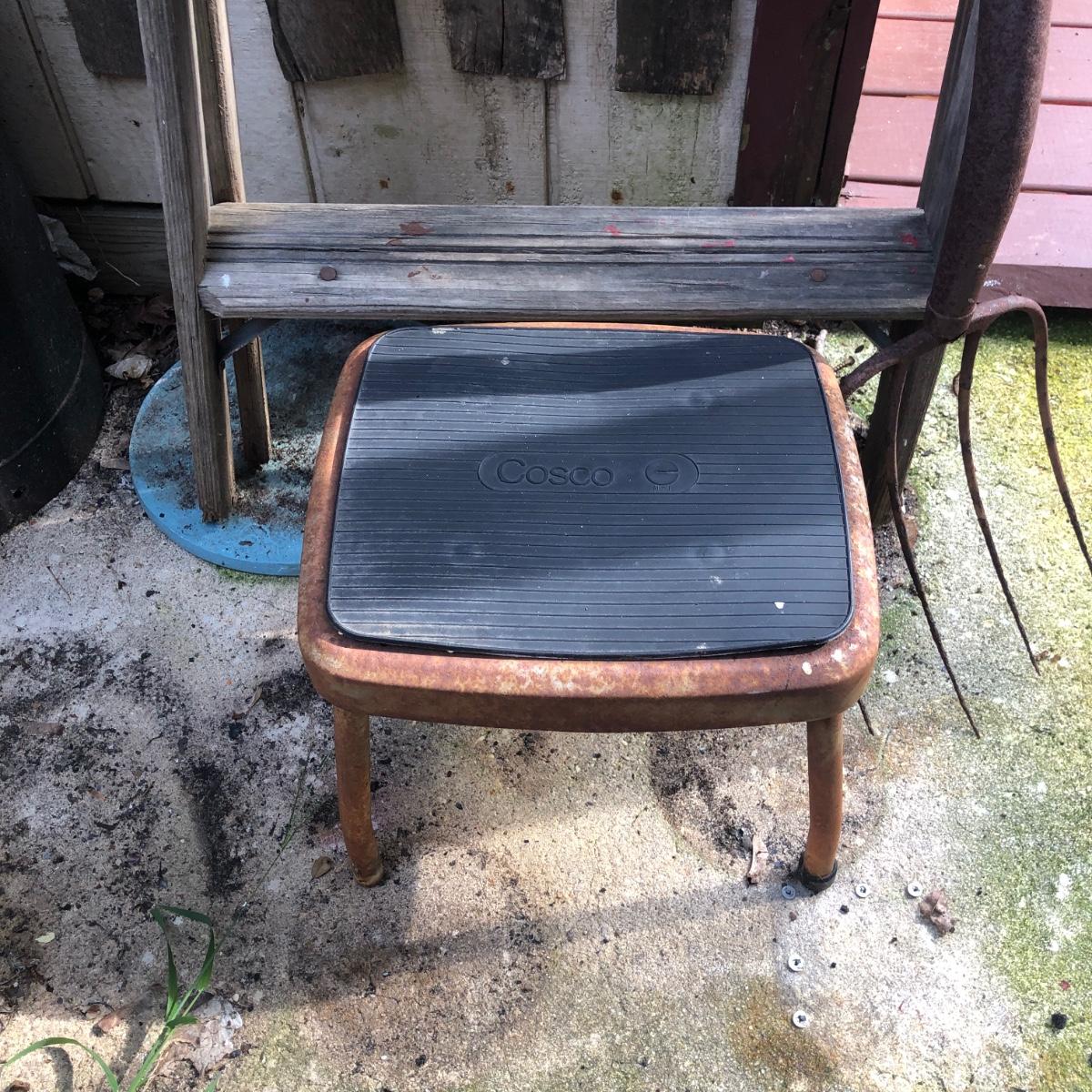 LOT 30M: Vintage Wooden Ladder, Milk Canisters, Cosco Stool, Pitchfork, Cast Iron & Bird Houses