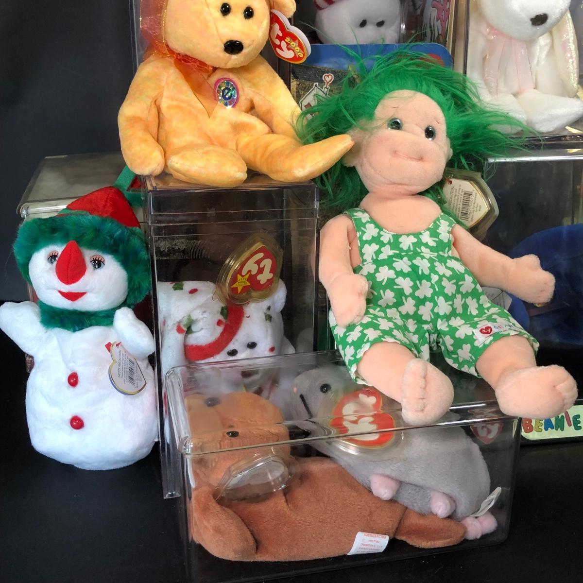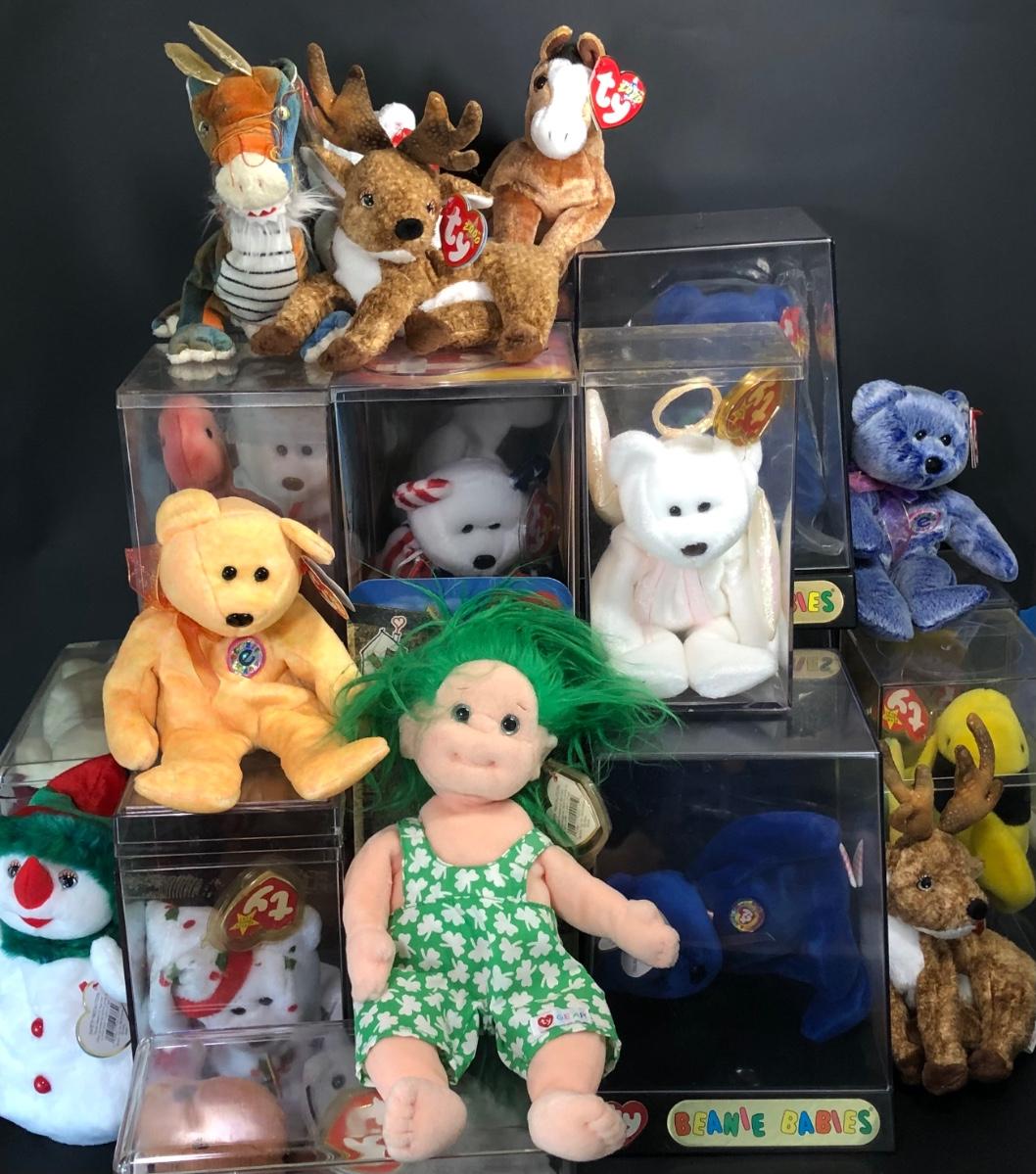 LOT 46M: Assorted TY Beanie Babies & Display Cases