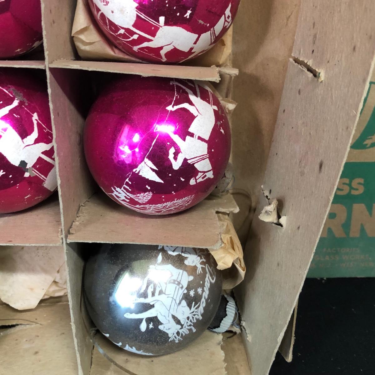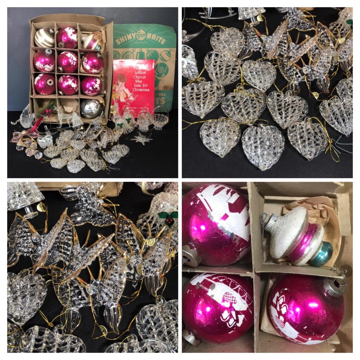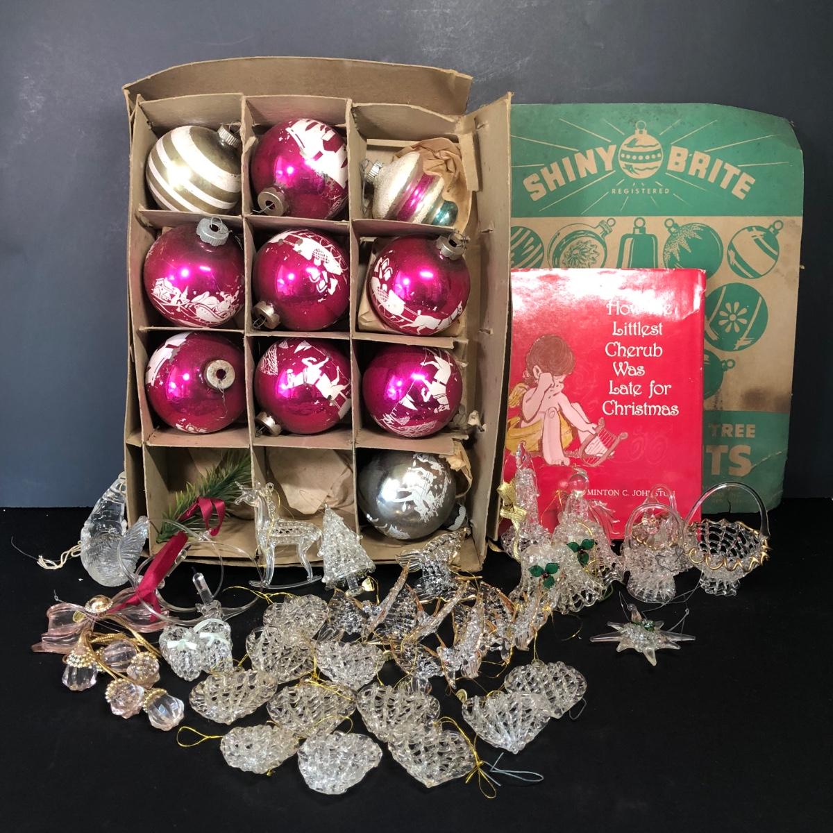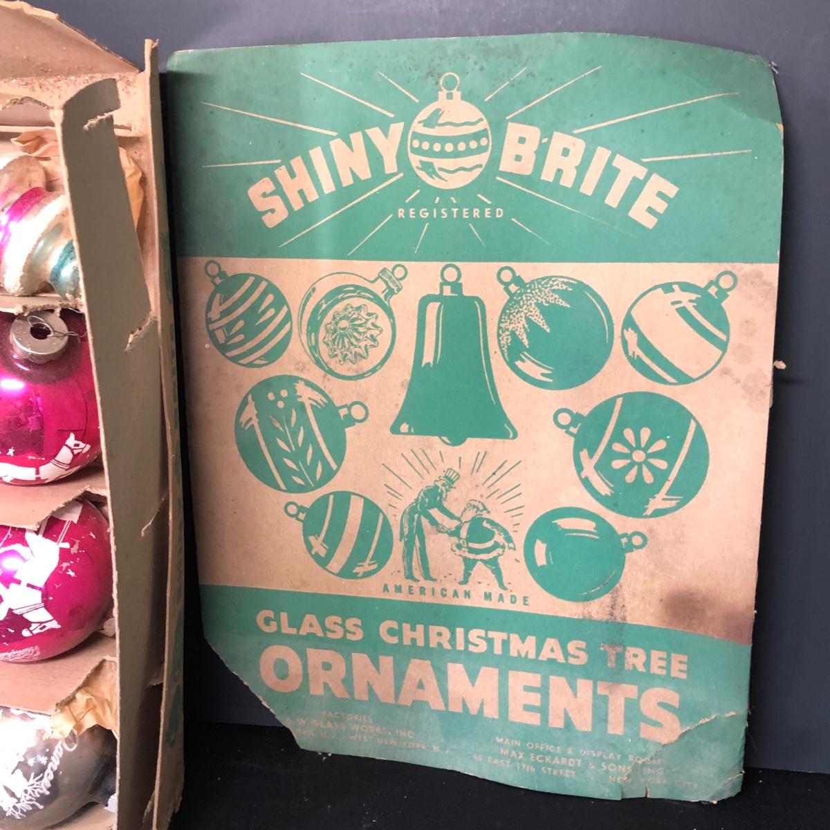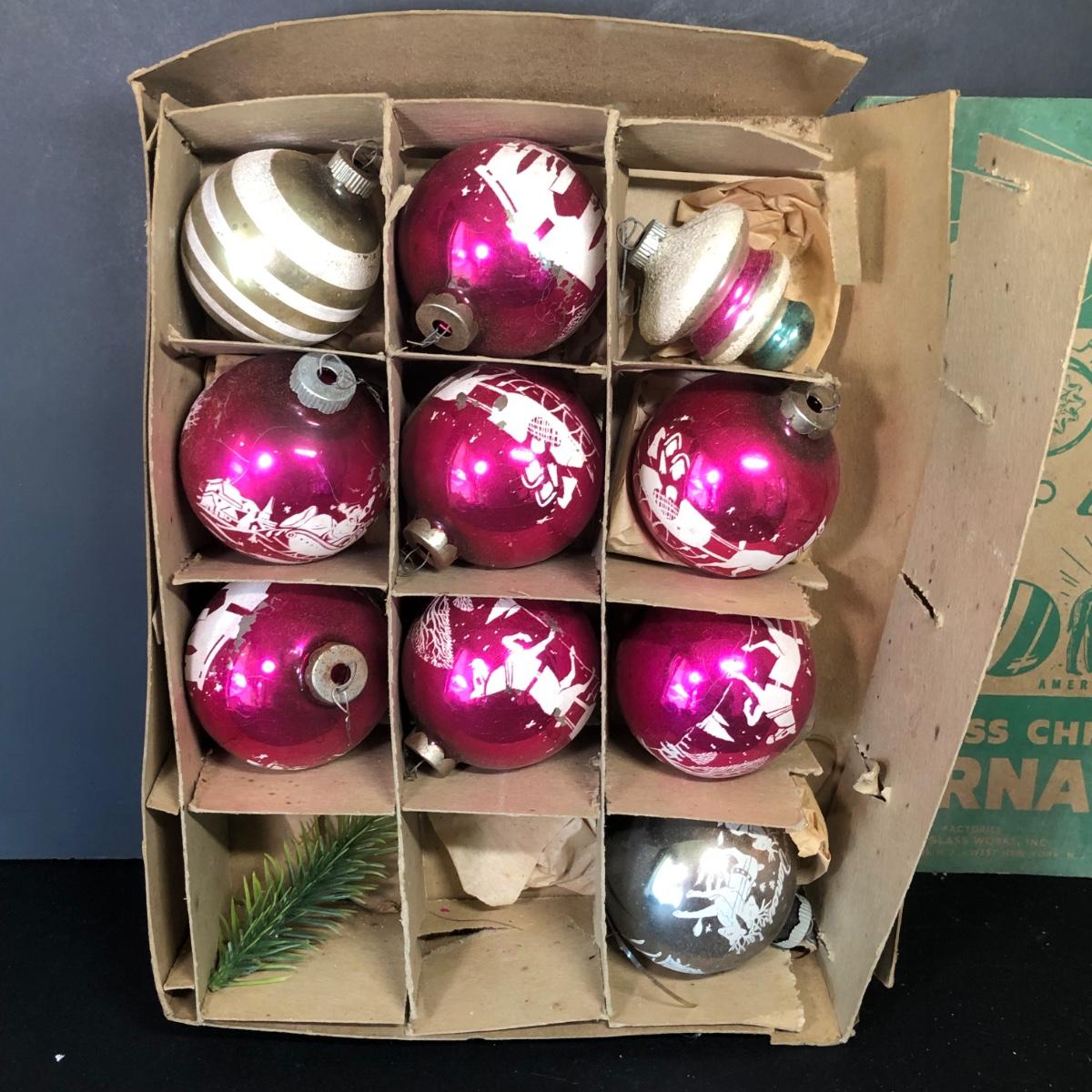 LOT 48M: Vintage Shiny Brite Glass Bulb Ornaments w/ Box & Assortment of Spun Glass Ornaments