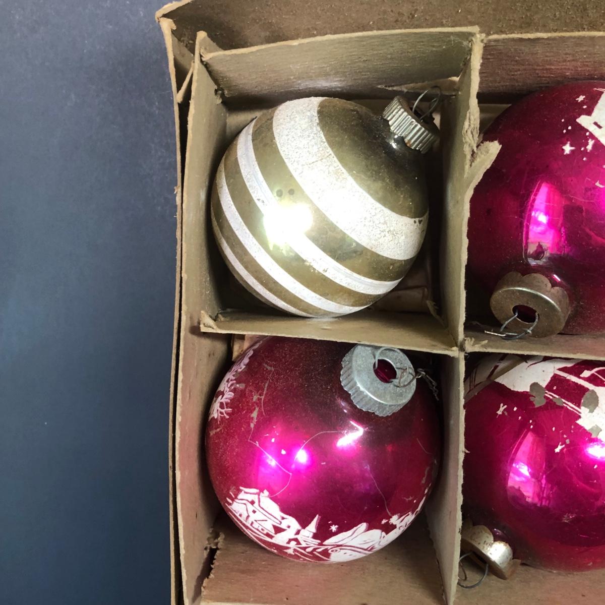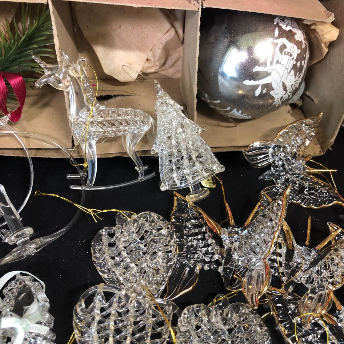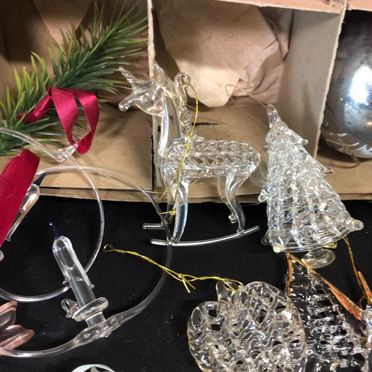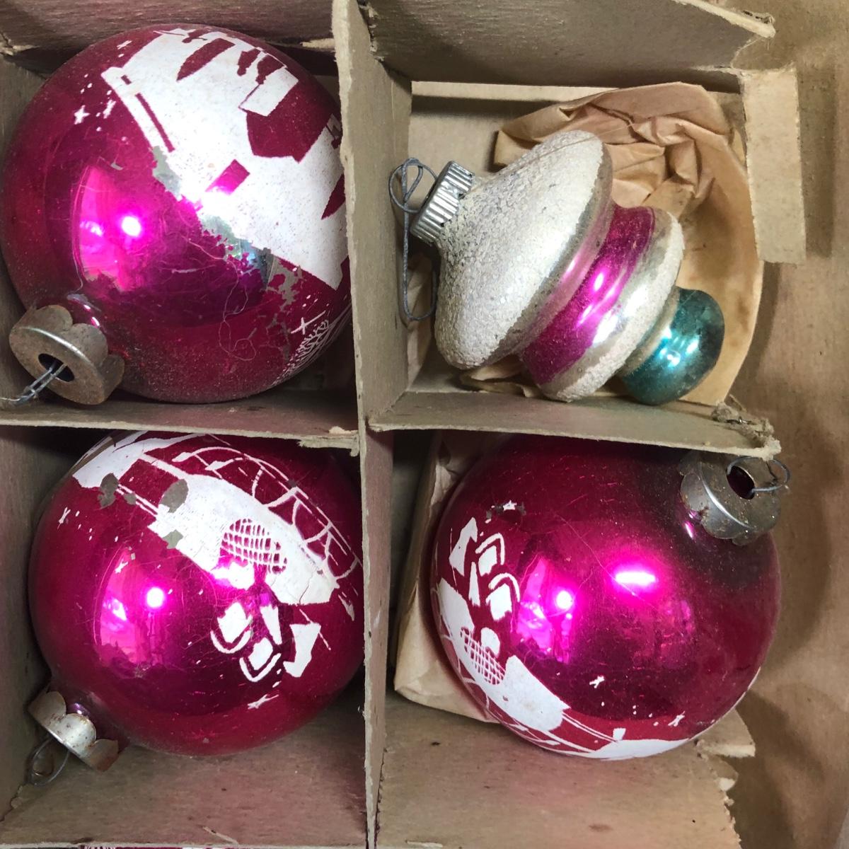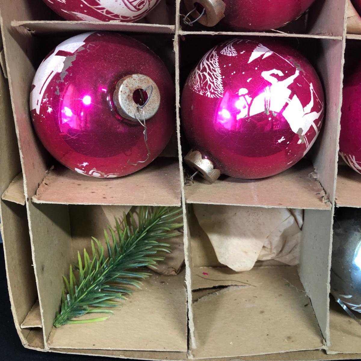 LOT 48M: Vintage Shiny Brite Glass Bulb Ornaments w/ Box & Assortment of Spun Glass Ornaments