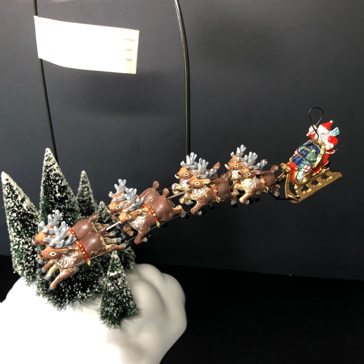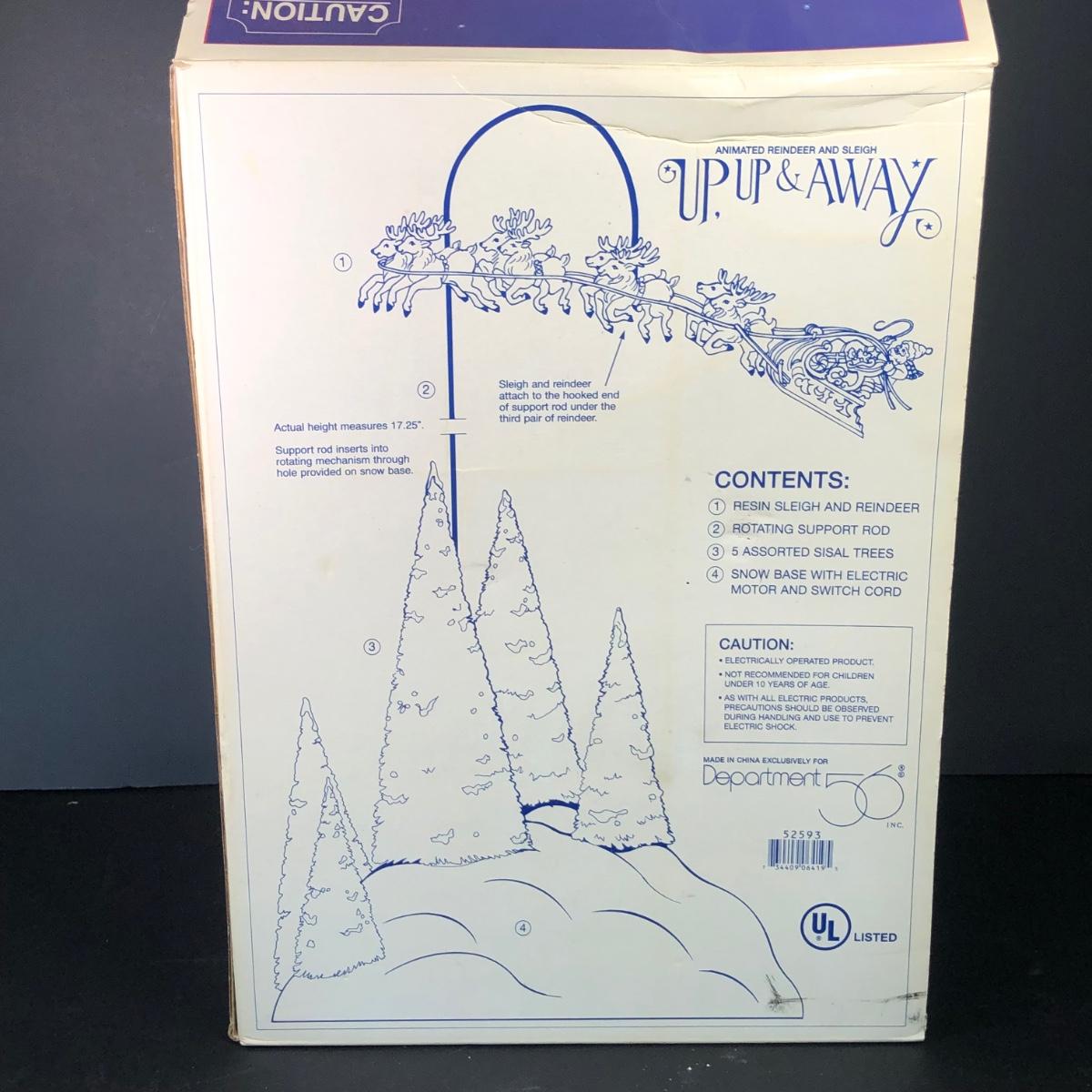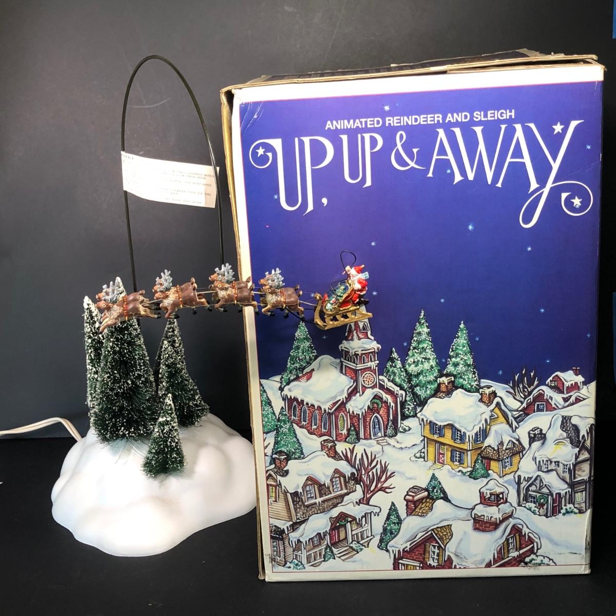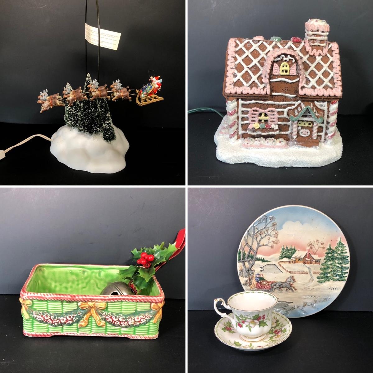 LOT 49M: Christmas Collection - Department 56 "Up, Up & Away" Animated Reindeer & Sleigh (Working), Silvestri Gingerbread House, Royal Albert Teacup/Saucer & More