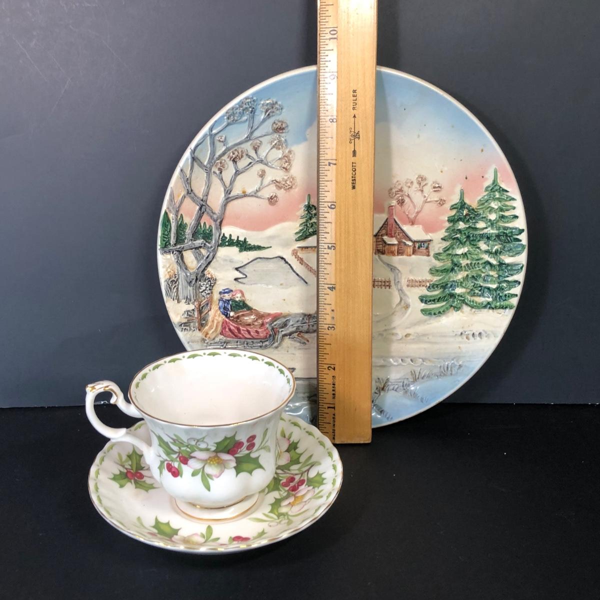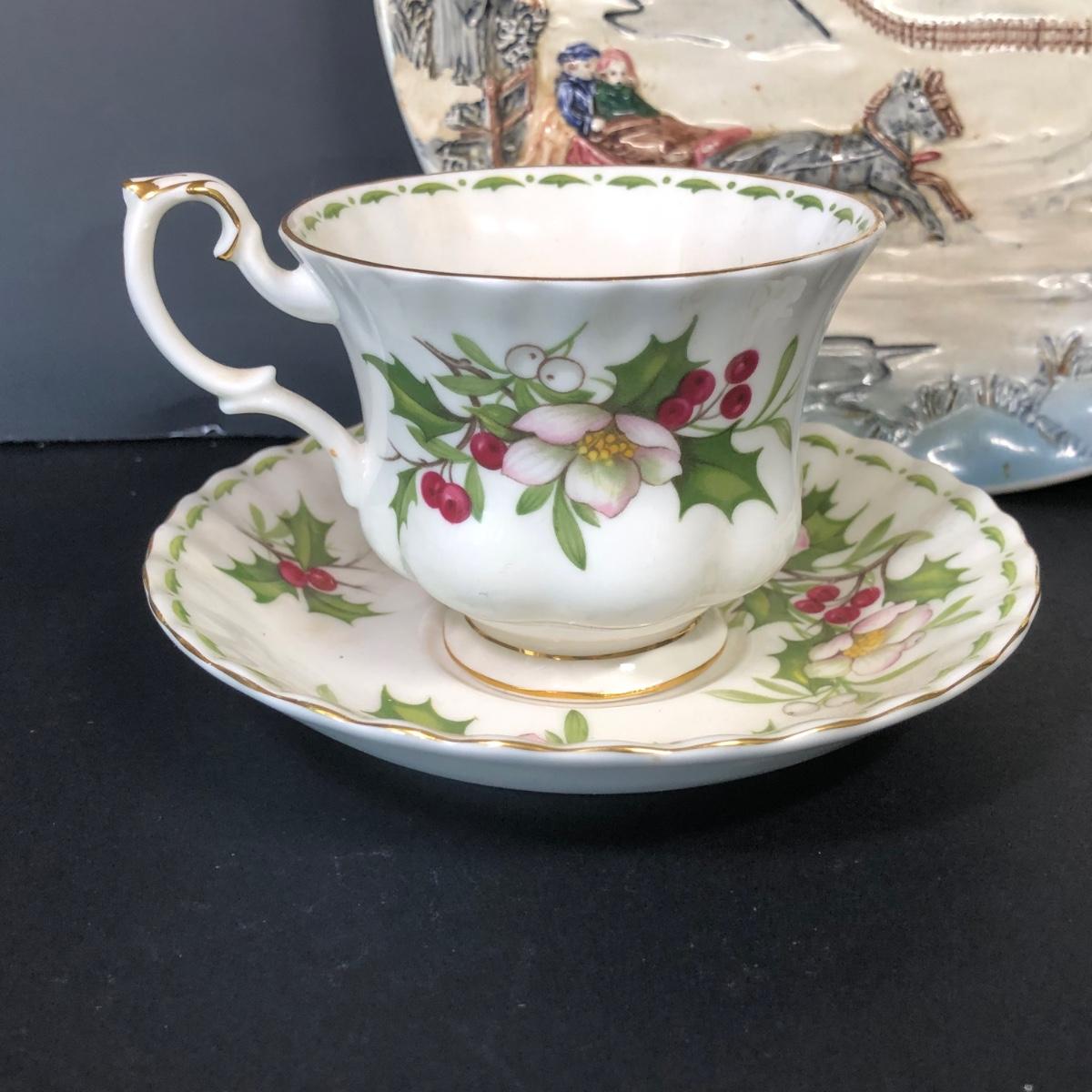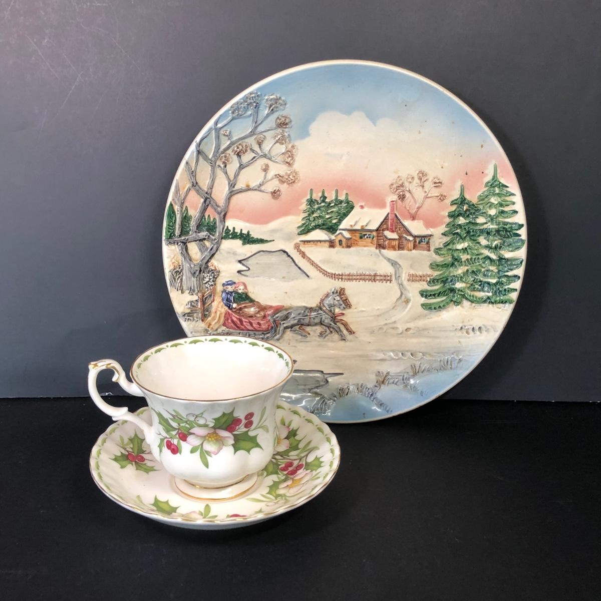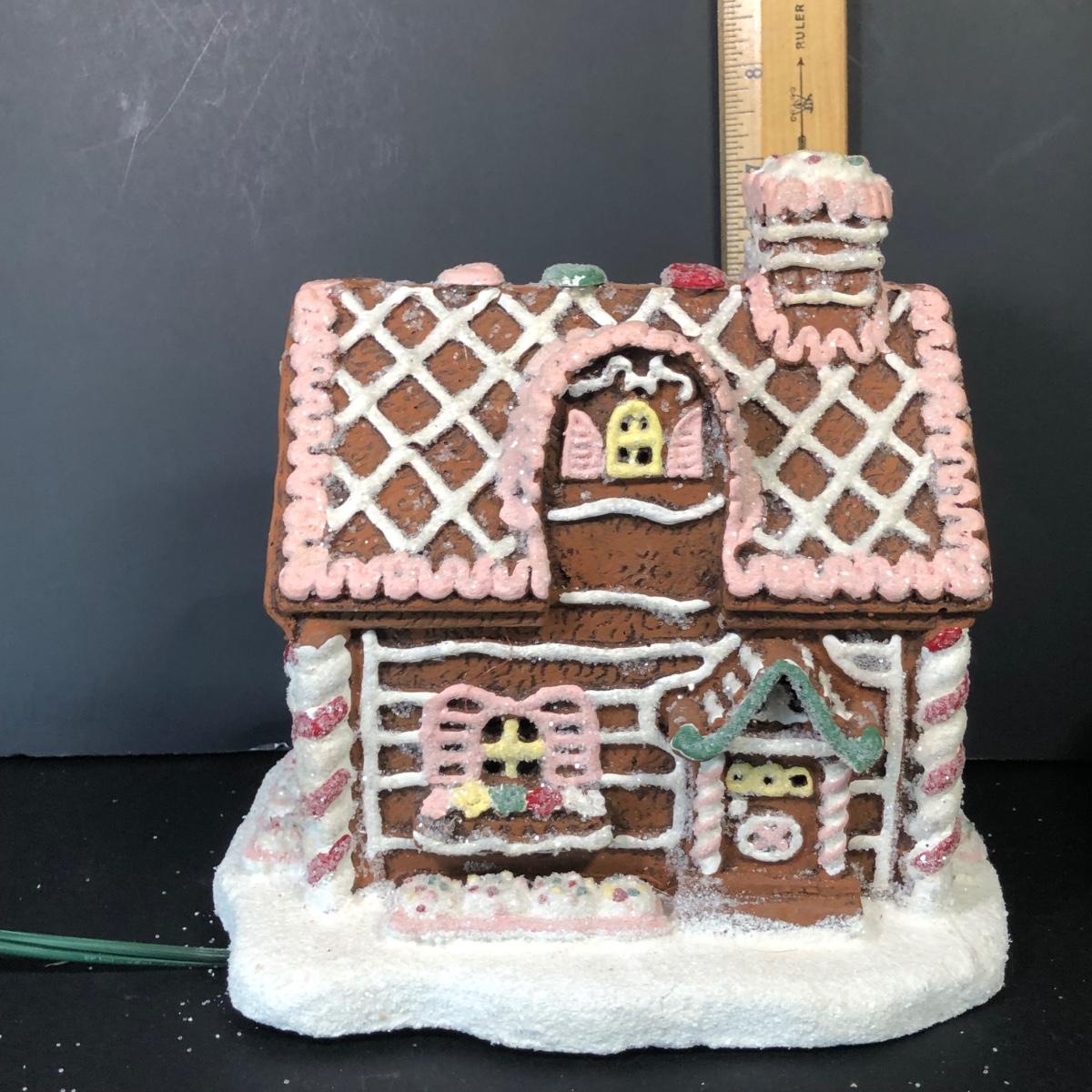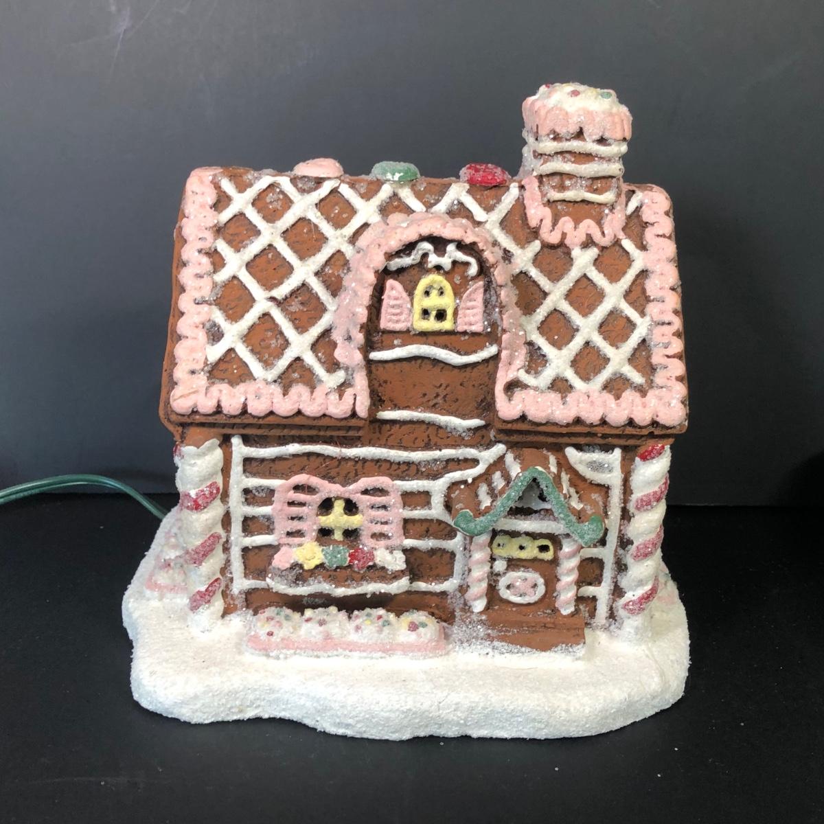 LOT 49M: Christmas Collection - Department 56 "Up, Up & Away" Animated Reindeer & Sleigh (Working), Silvestri Gingerbread House, Royal Albert Teacup/Saucer & More