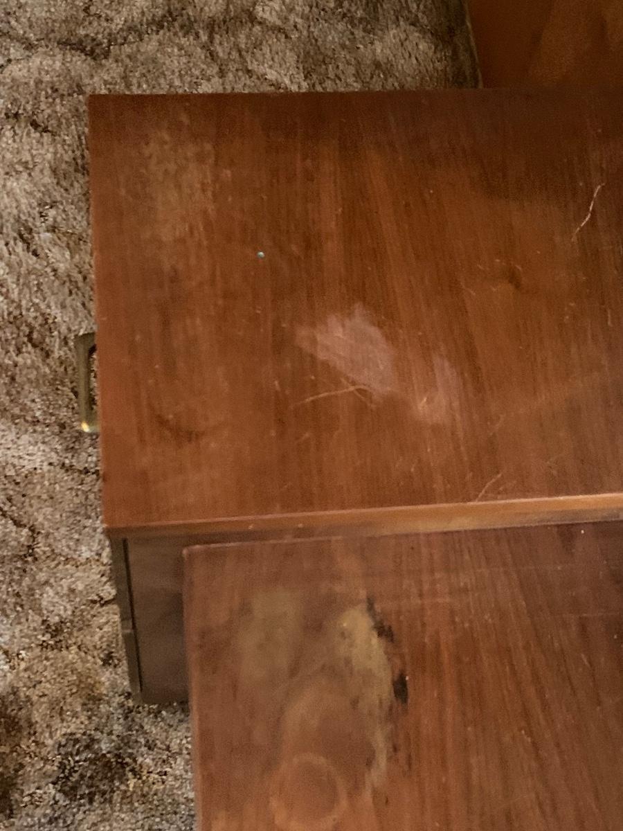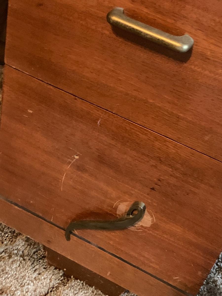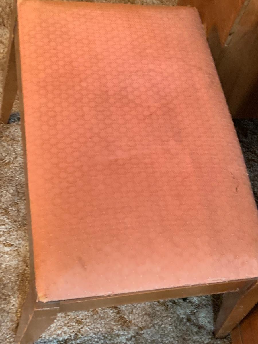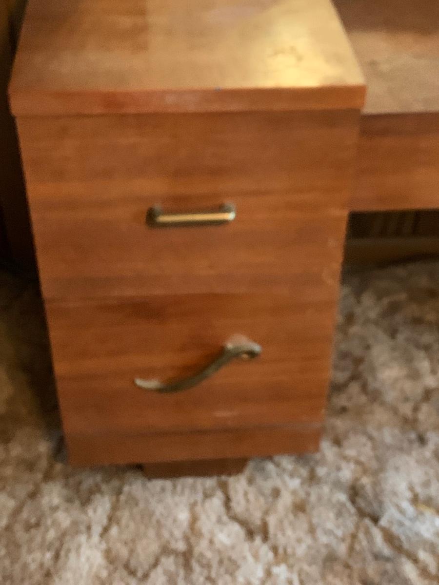 The vanity measures 46 x 19 x x 28": the Bench is 23 x 15 x 18" and the mirror is 36 x 41" The handle on the drawer is loose and the are some flaws and marks on the wood finish. Please see all pictures as they are the best representation of the items. The pictures show condition, measurements if taken, and what is included in the lot. Due to the large amount that we photograph and the time frame, we are not always able to take measurements. All items unless noted, are pre-owned and have been used. If you purchased furniture, you must bring help. We do not allow one person to carry large furniture out on their own. Bring help, tools and a truck for the safety of our client’s homes, and your personal safety. Any damages that result to the property including walls, and floors due to moving of the furniture will be charged to the buyer. Company policy. Thank you.