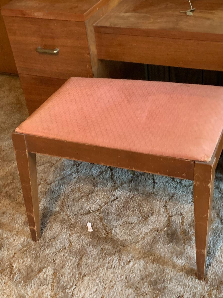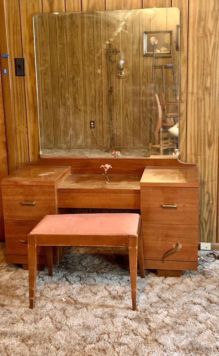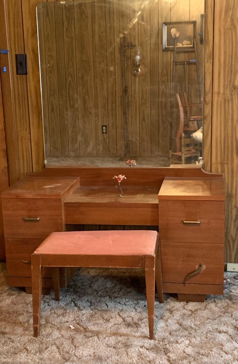 LOT:57G: Vintage Vanity with Bench and Mirror