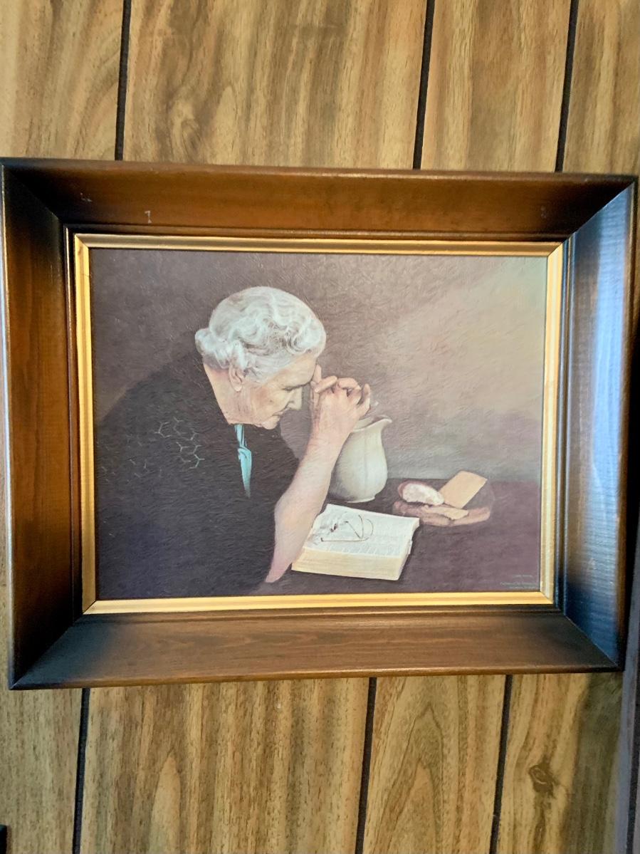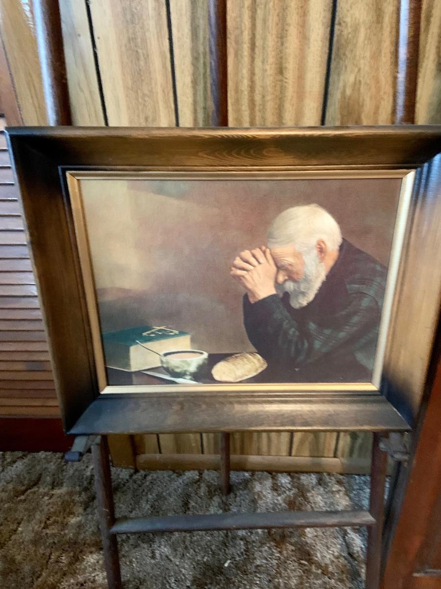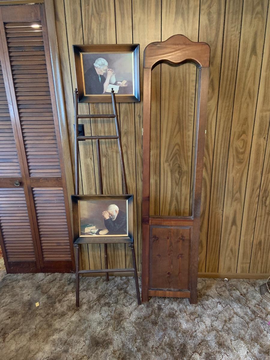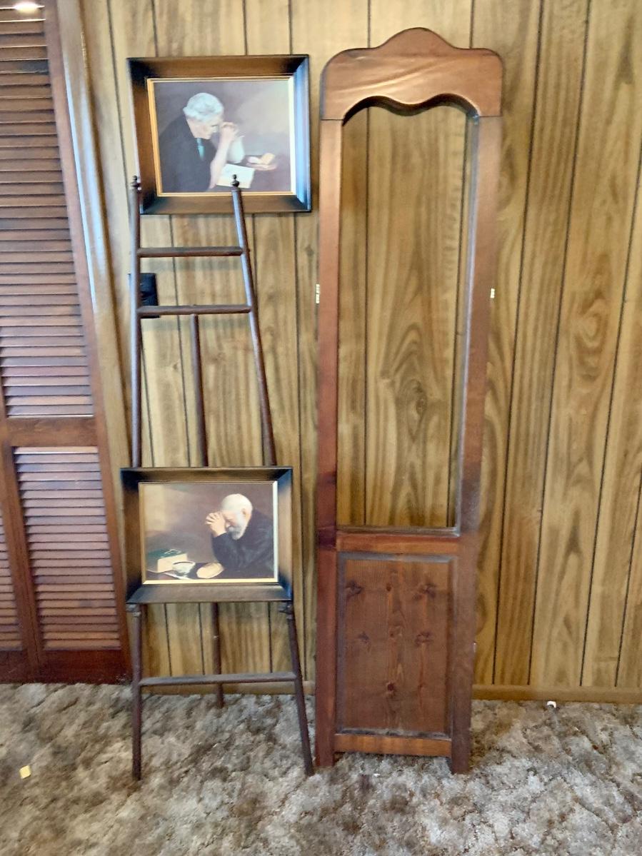 LOT:61G; Three Panel Wooden Room Divider, Easle and 2 Vintage Pieces of Wall Art "Grace & Gratitude" by Jack Gerren