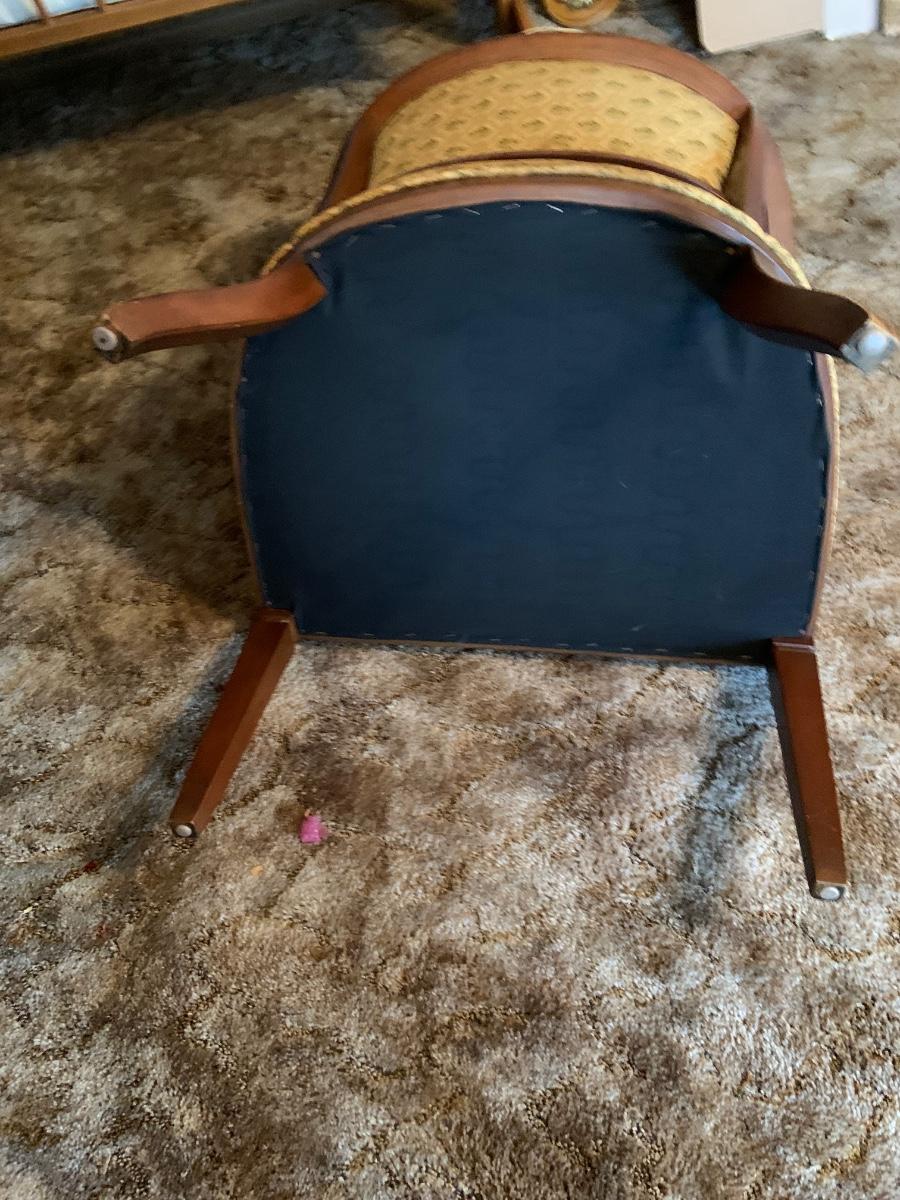 The barrel Chair is 26x 28 x 29 " Please see all pictures as they are the best representation of the items. The pictures show condition, measurements if taken, and what is included in the lot. Due to the large amount that we photograph and the time frame, we are not always able to take measurements. All items unless noted, are pre-owned and have been used. If you purchased furniture, you must bring help. We do not allow one person to carry large furniture out on their own. Bring help, tools and a truck for the safety of our client’s homes, and your personal safety. Any damages that result to the property including walls, and floors due to moving of the furniture will be charged to the buyer. Company policy. Thank you.