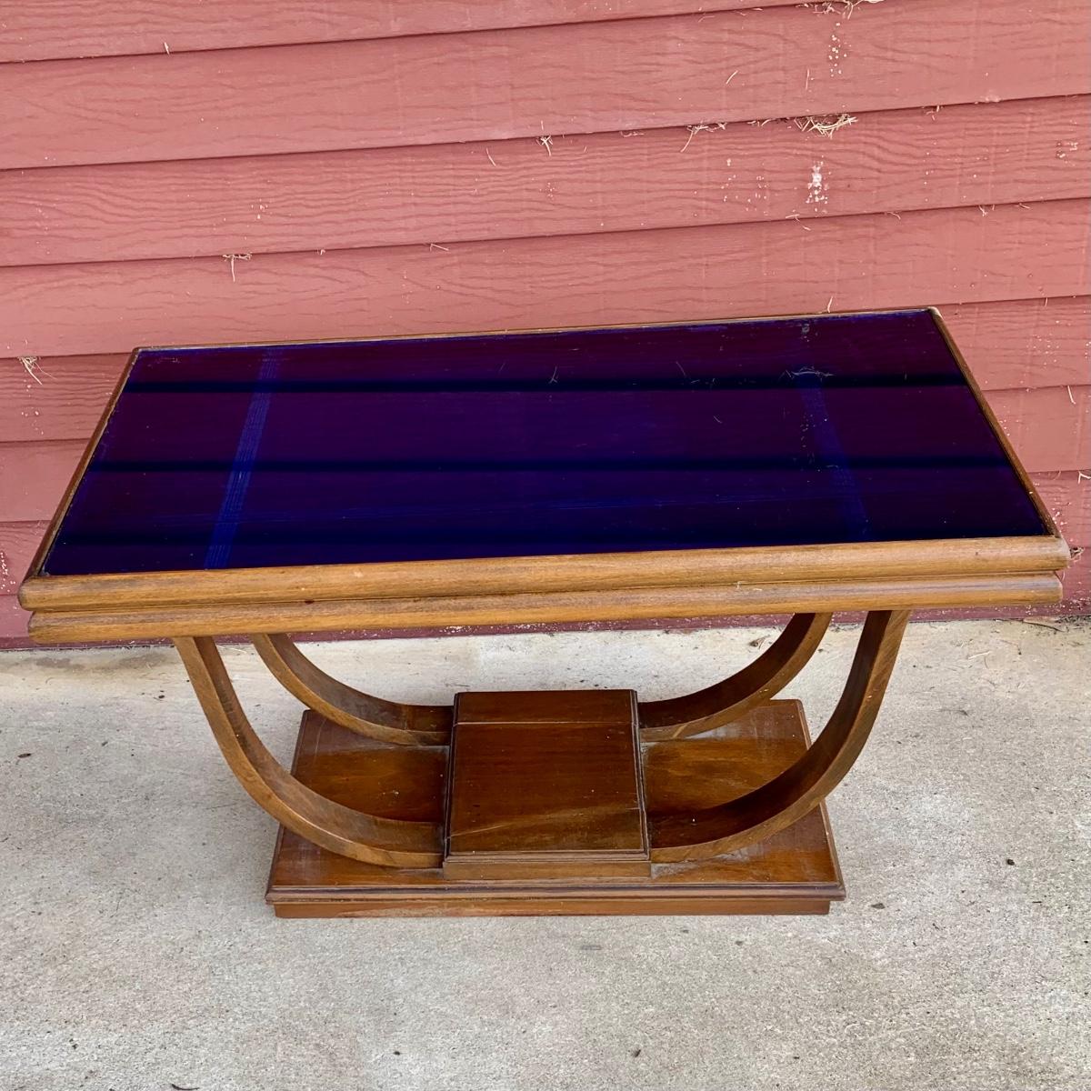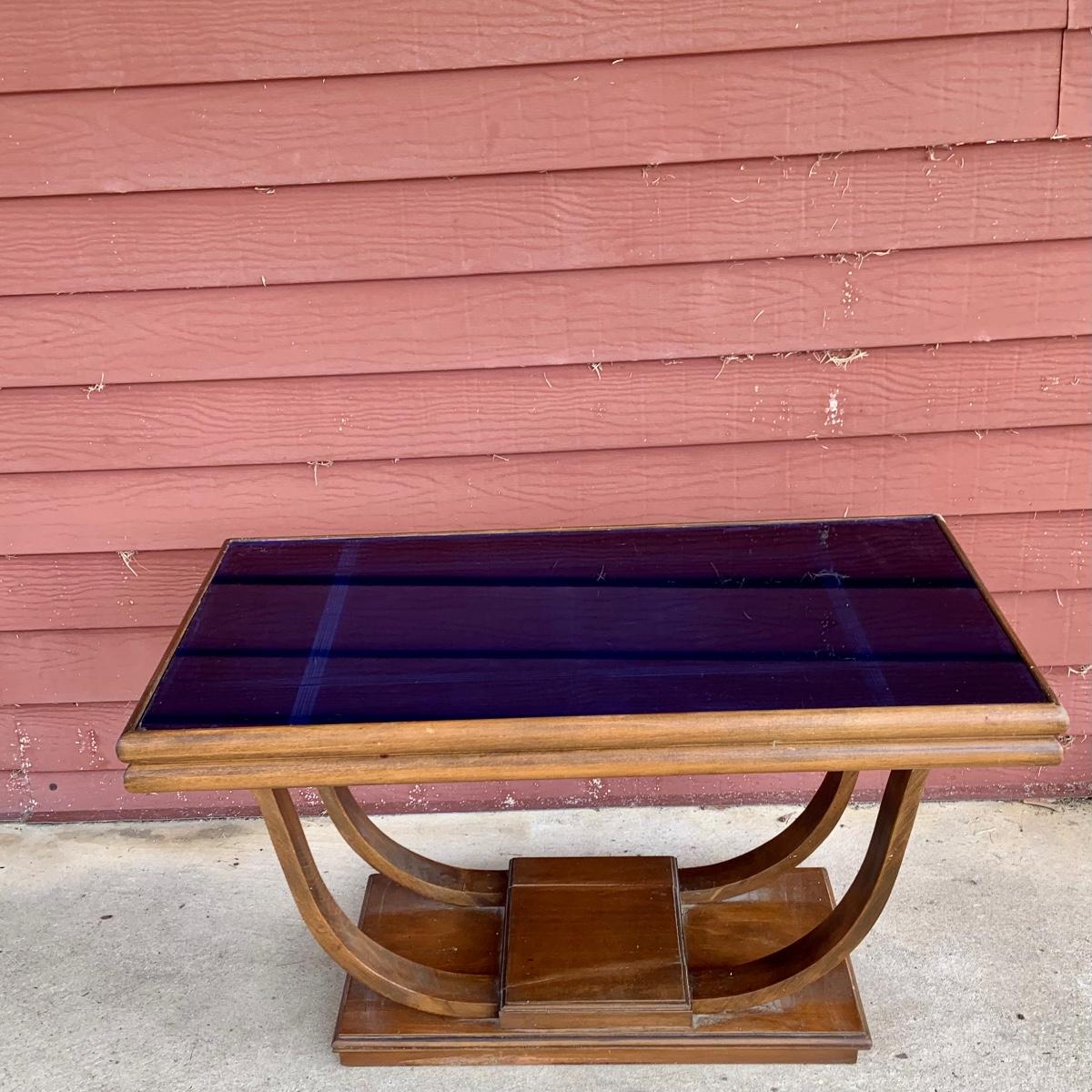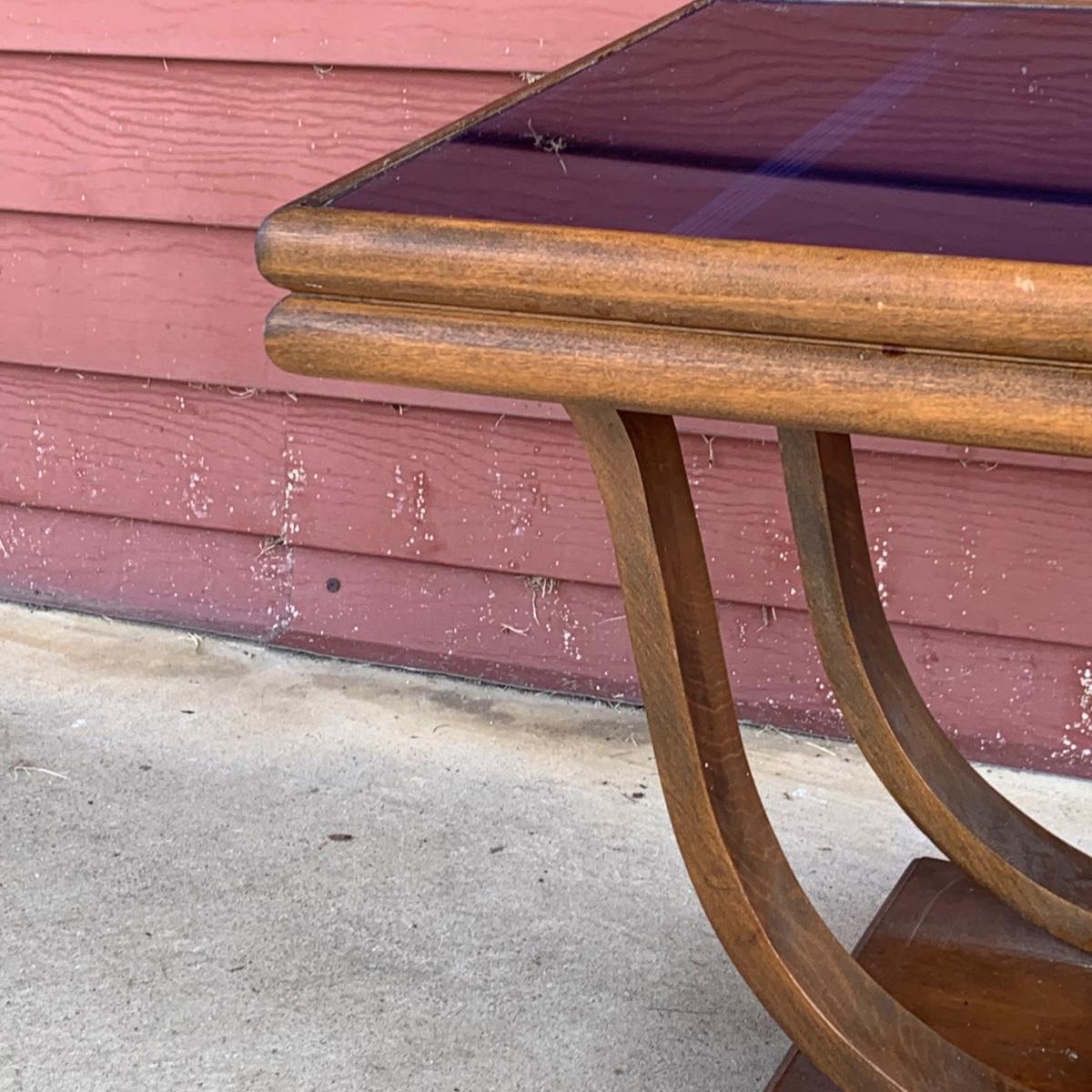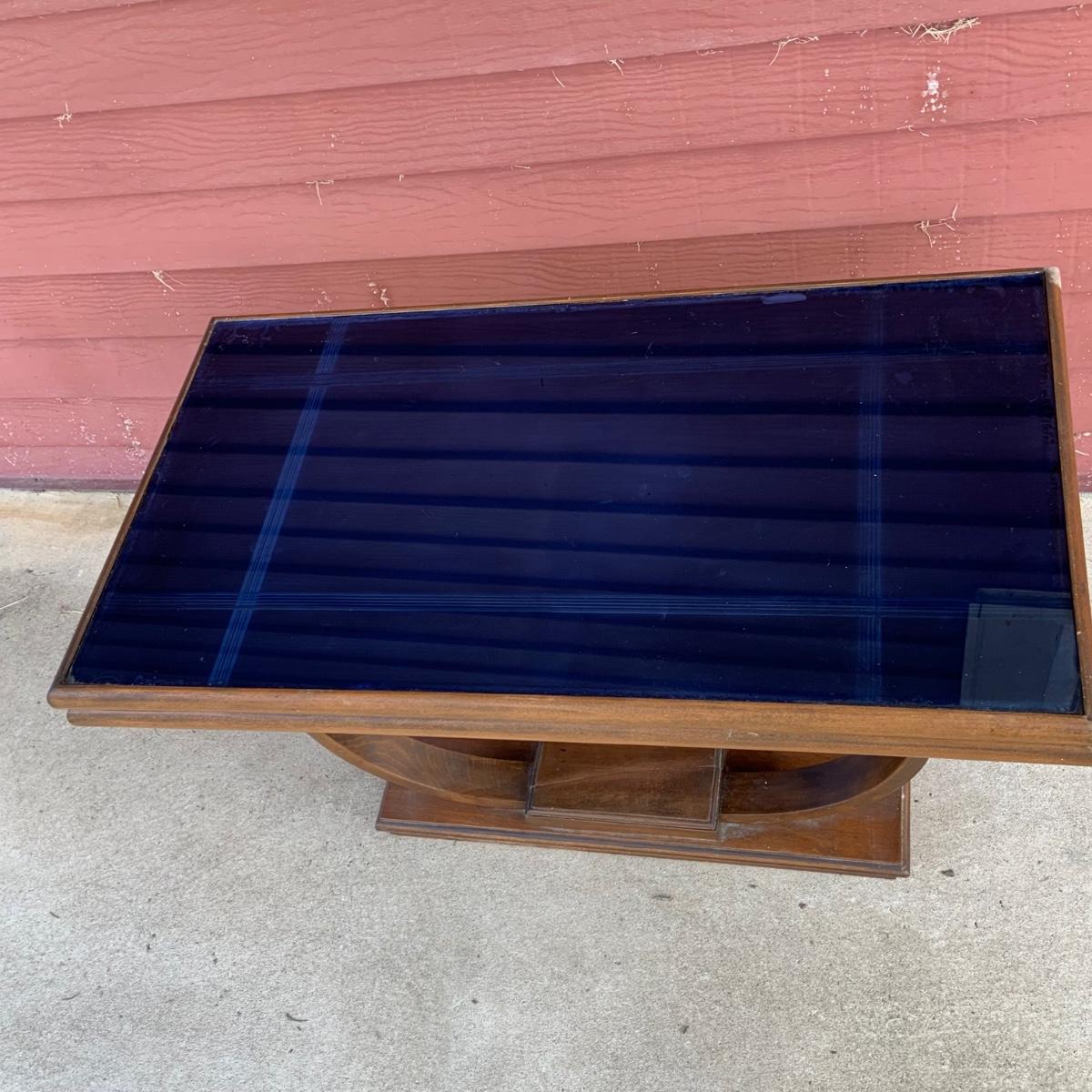 LOT:66G; Wood Coffee Table with Blue Glass Top