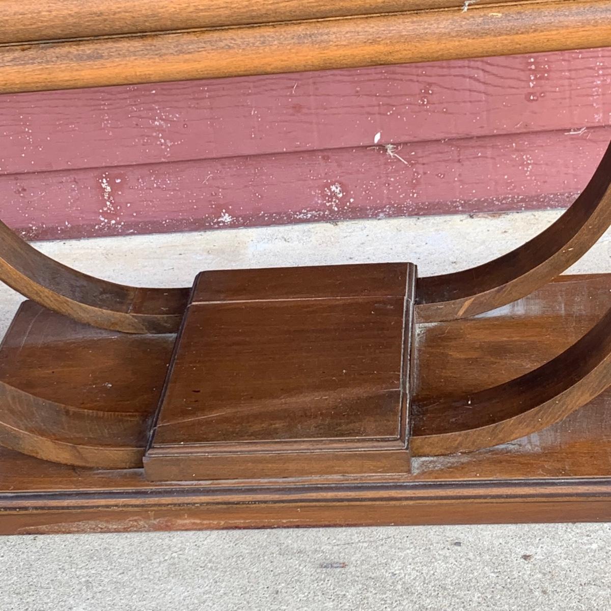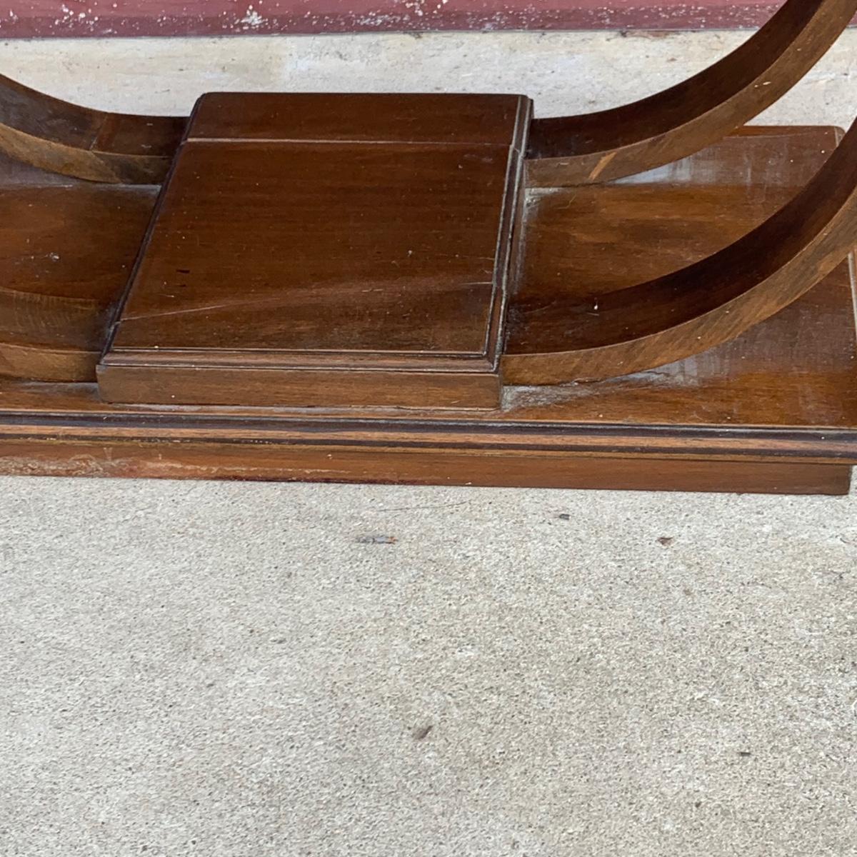The base of the table has some cracks in the wood. Please see all pictures as they are the best representation of the items. The pictures show condition, measurements if taken, and what is included in the lot. Due to the large amount that we photograph and the time frame, we are not always able to take measurements. All items unless noted, are pre-owned and have been used. If you purchased furniture, you must bring help. We do not allow one person to carry large furniture out on their own. Bring help, tools and a truck for the safety of our client’s homes, and your personal safety. Any damages that result to the property including walls, and floors due to moving of the furniture will be charged to the buyer. Company policy. Thank you.