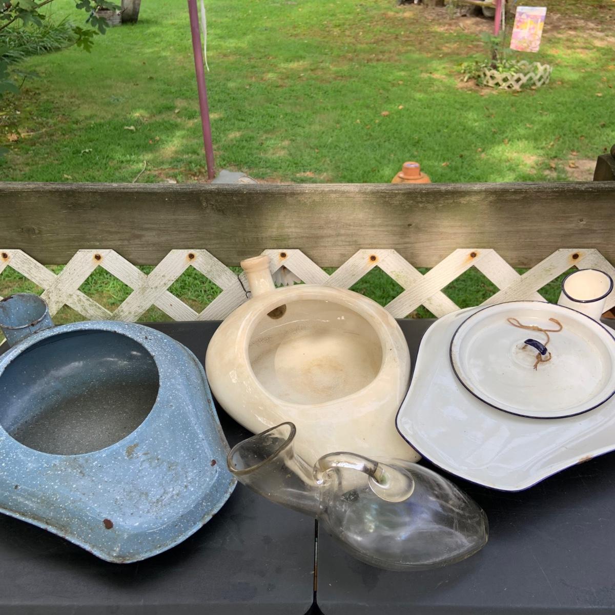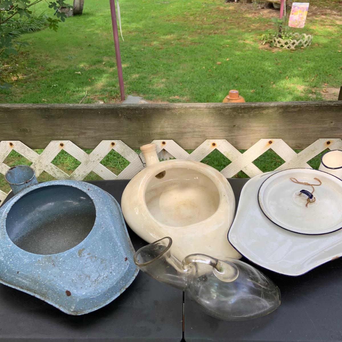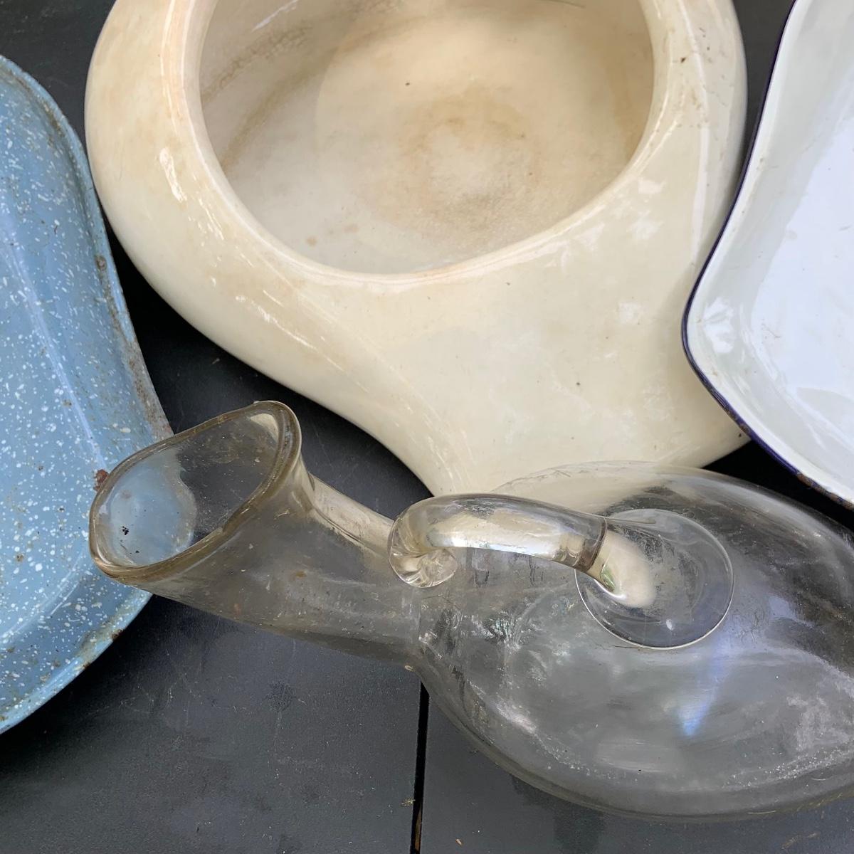 LOT:71: Collection of Bed Pans Enamel, Porcelain and Glass