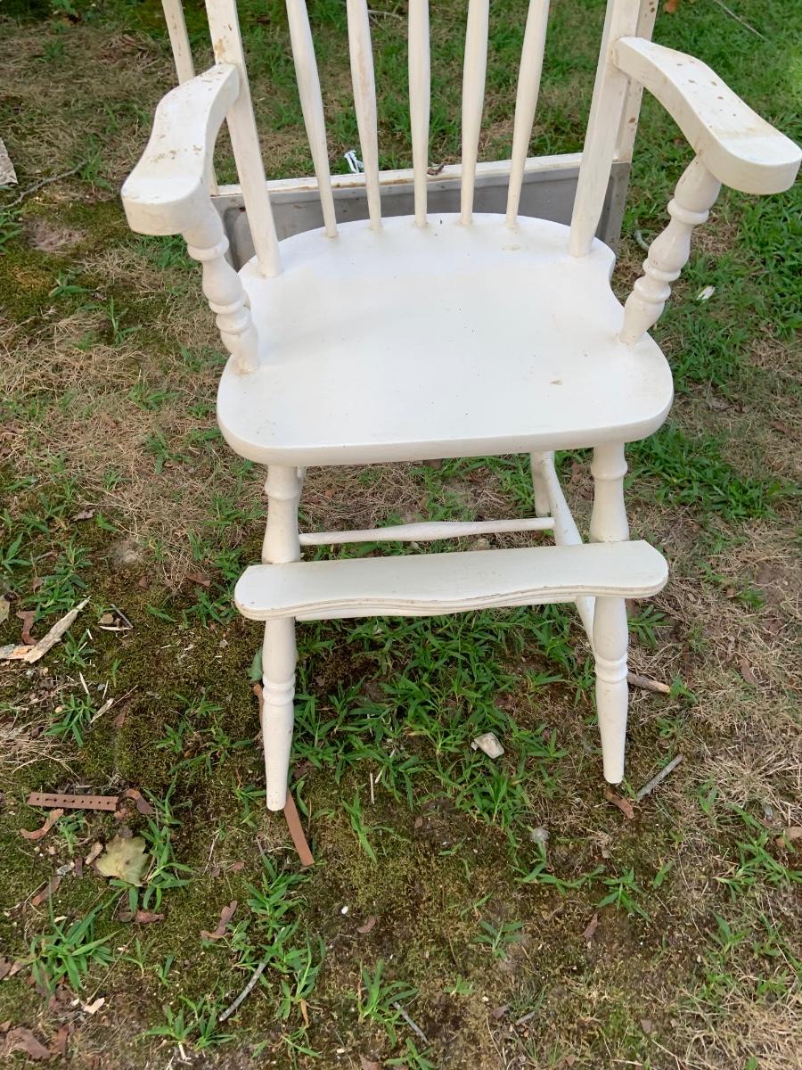 LOT:73G: Vintage White Wood Highchair with Metal Top Tray: Babydoll  and More