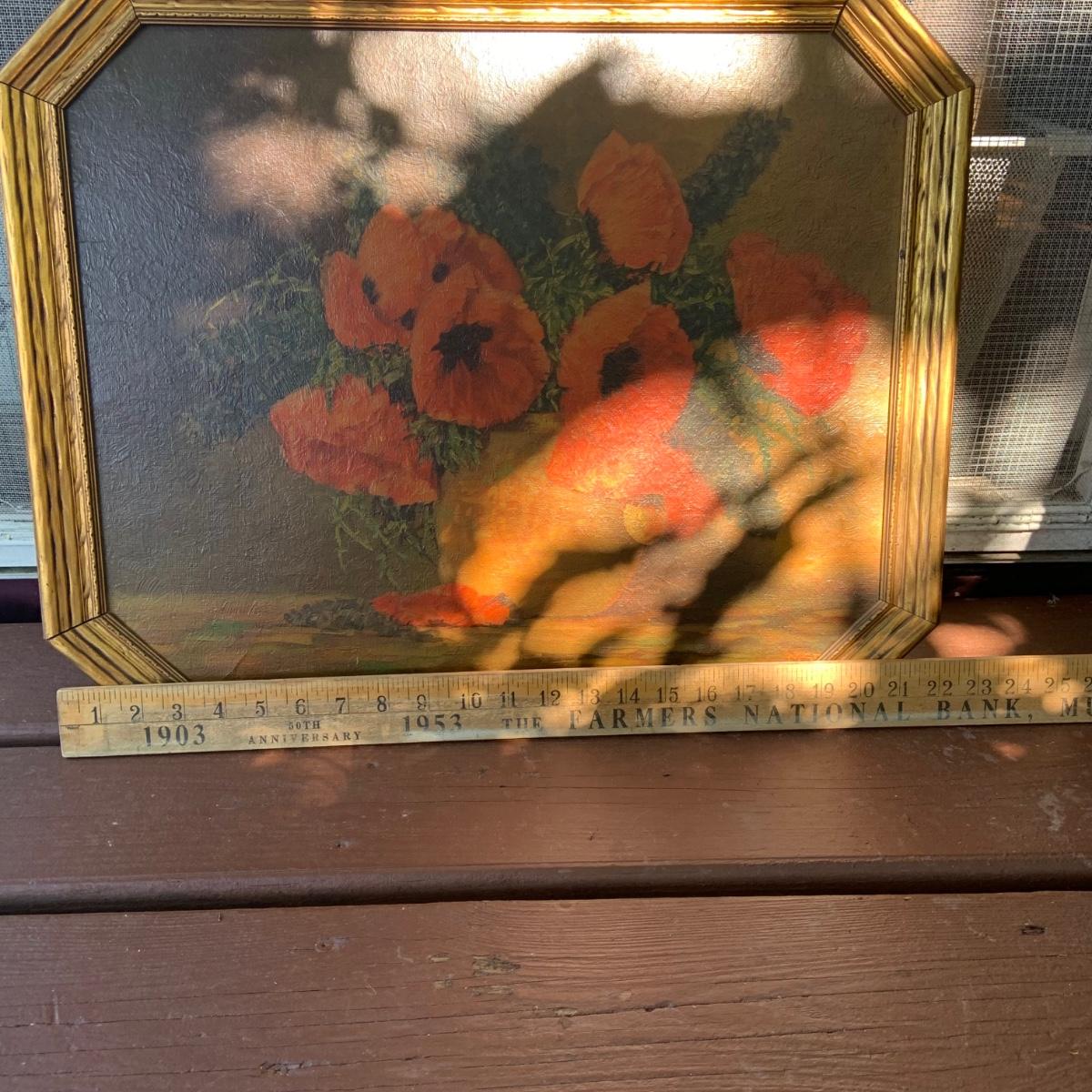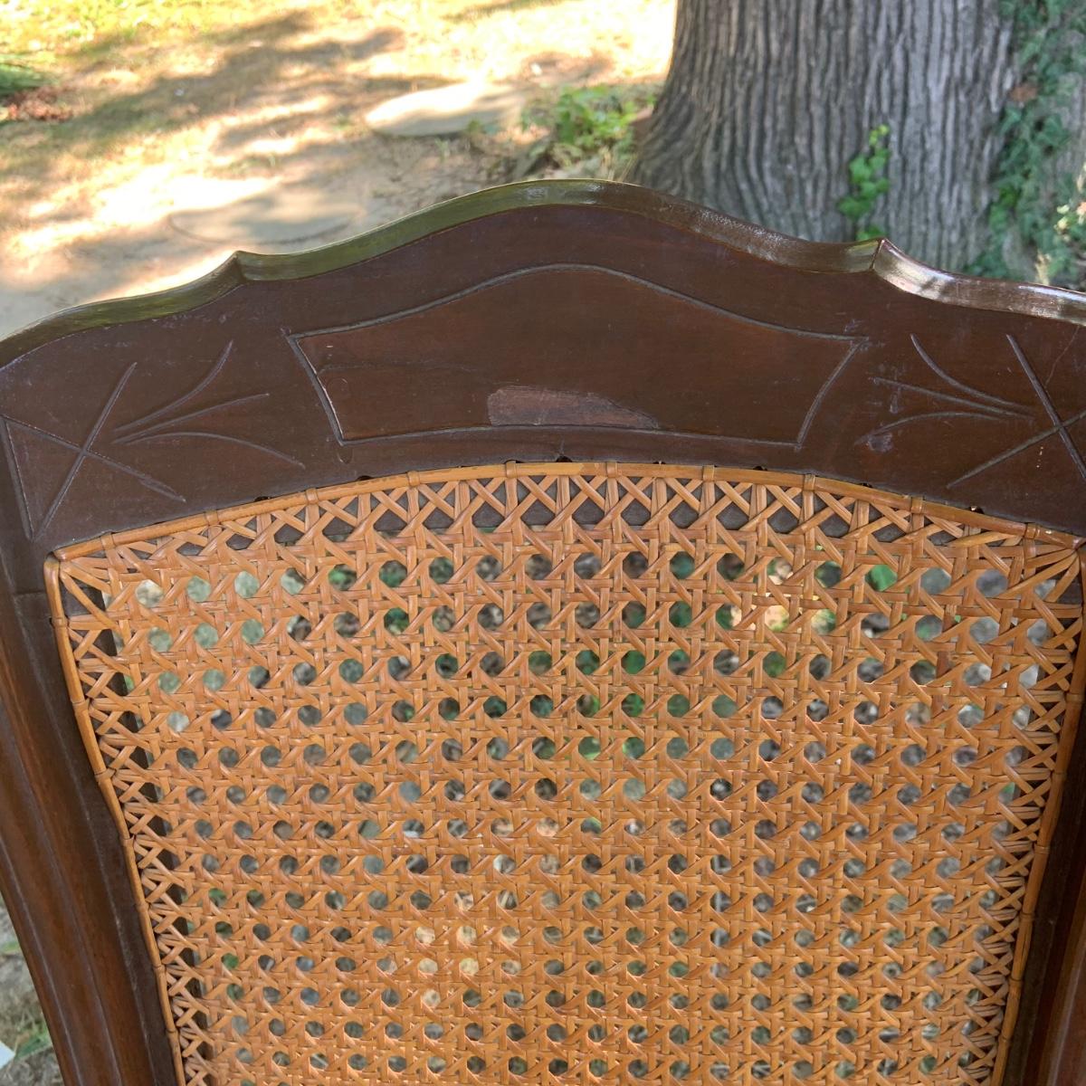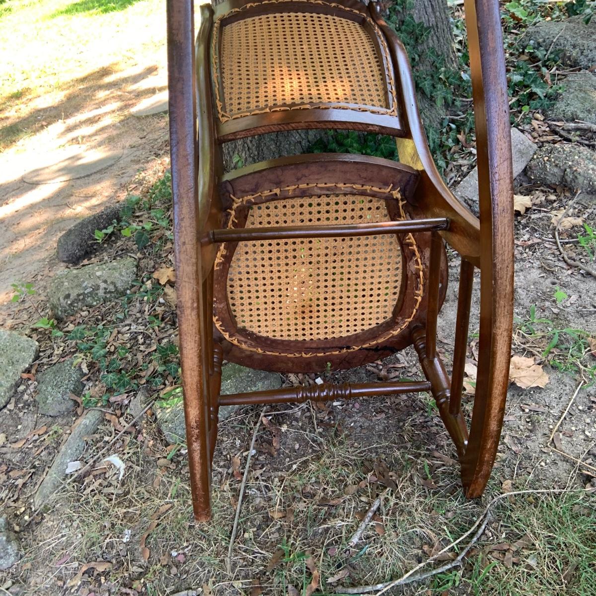 LOT:81G: Cane Rocking Chair and Vintage Framed Floral Painting