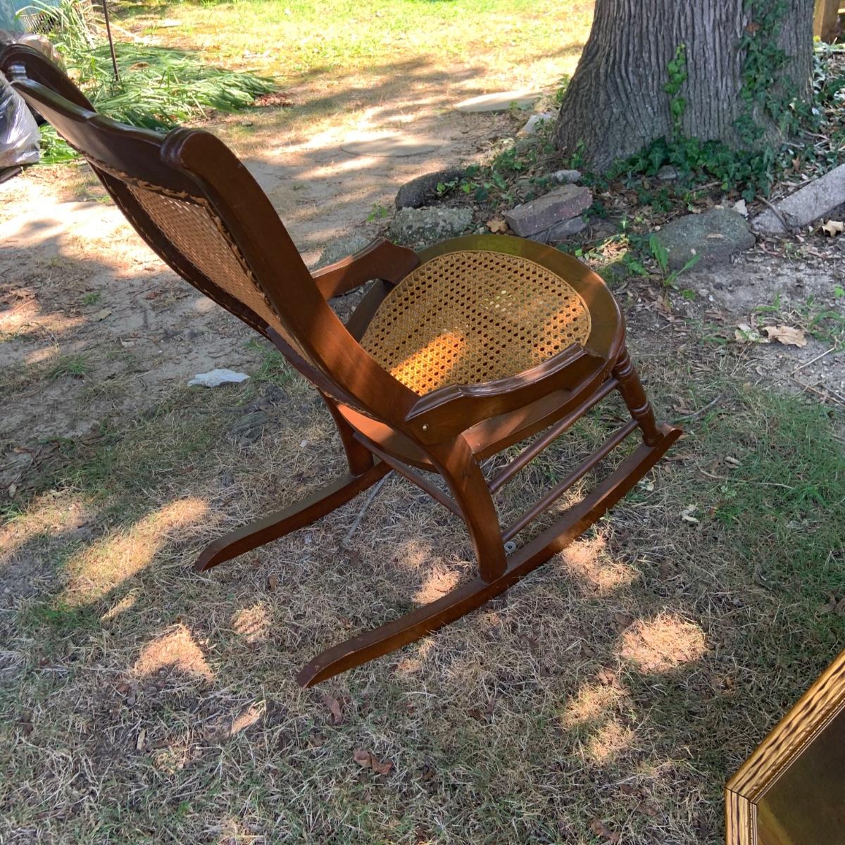 The Rocker is 18 x 21 x 35" Please see all pictures as they are the best representation of the items. The pictures show condition, measurements if taken, and what is included in the lot. Due to the large amount that we photograph and the time frame, we are not always able to take measurements. All items unless noted, are pre-owned and have been used. If you purchased furniture, you must bring help. We do not allow one person to carry large furniture out on their own. Bring help, tools and a truck for the safety of our client’s homes, and your personal safety. Any damages that result to the property including walls, and floors due to moving of the furniture will be charged to the buyer. Company policy. Thank you.
