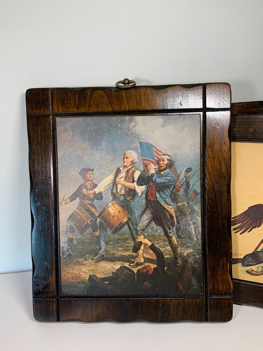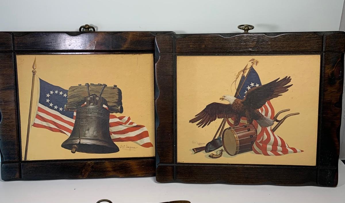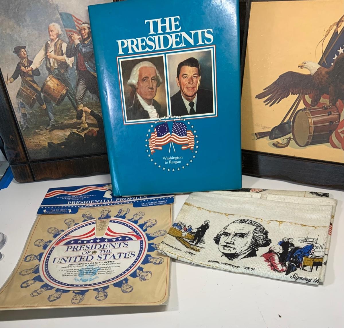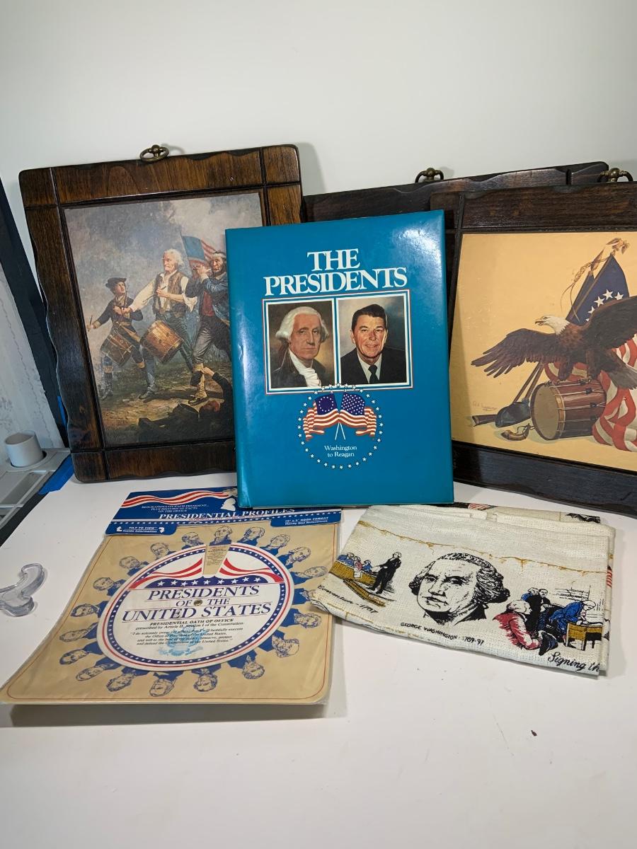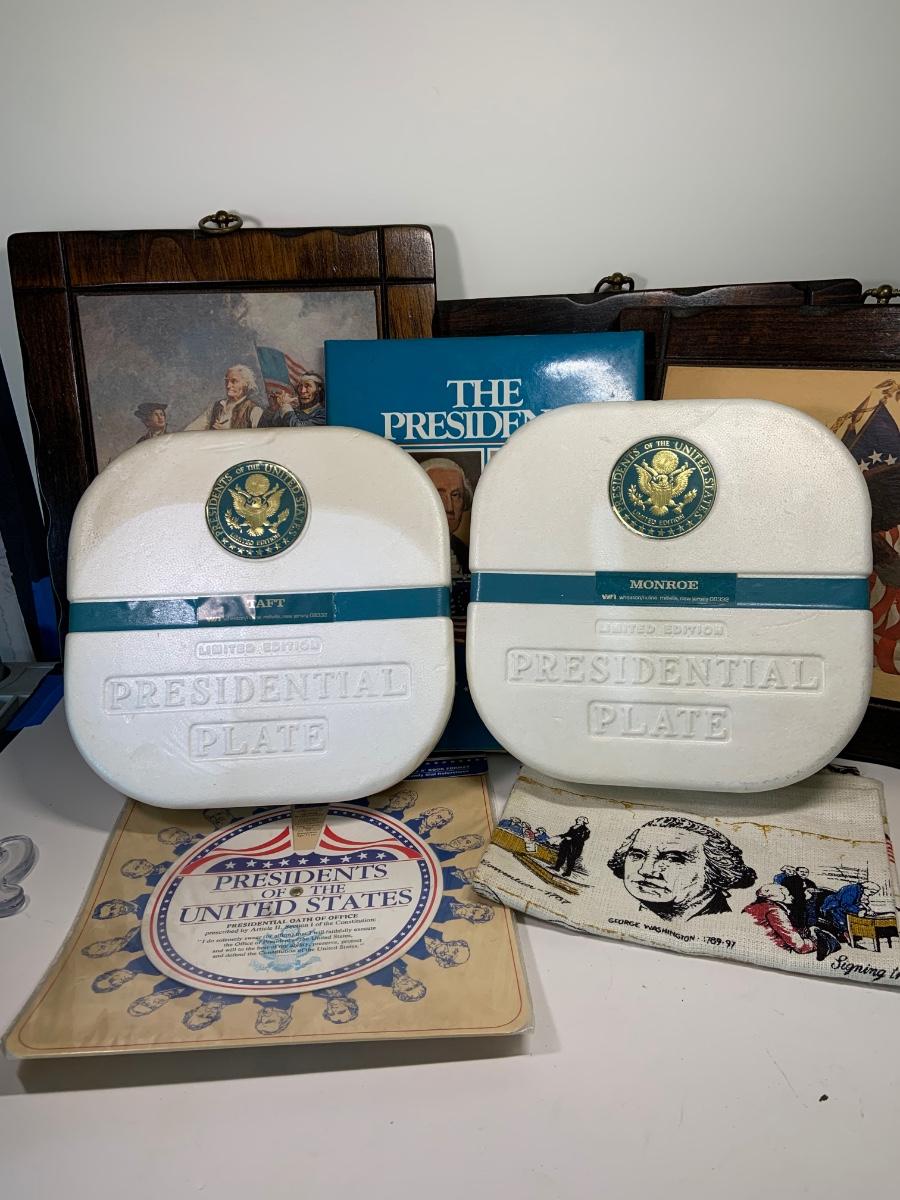 LOT:84G: Wheaton Blue Glass Presidential Plates and Americana Decor and More