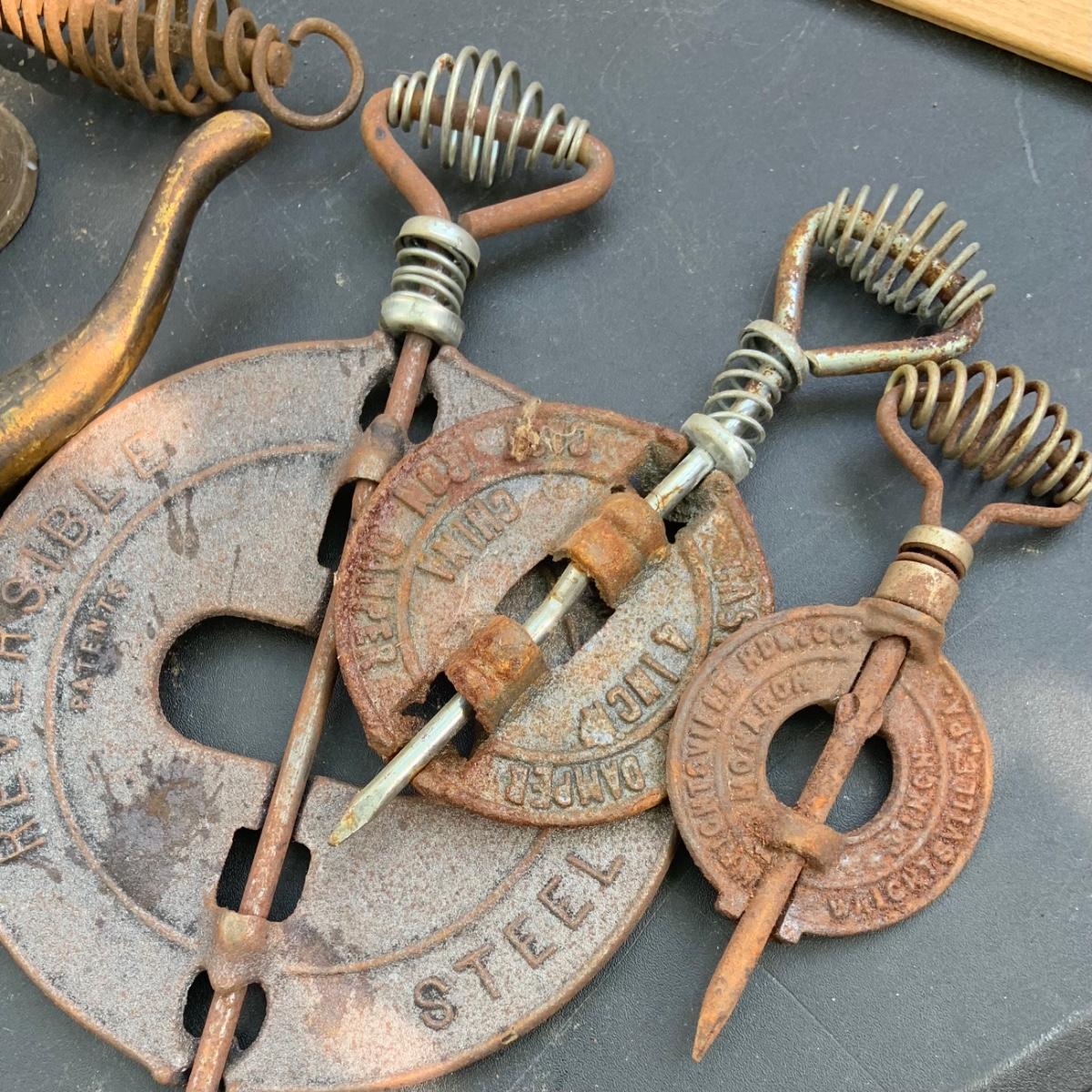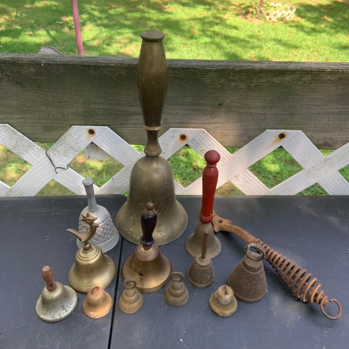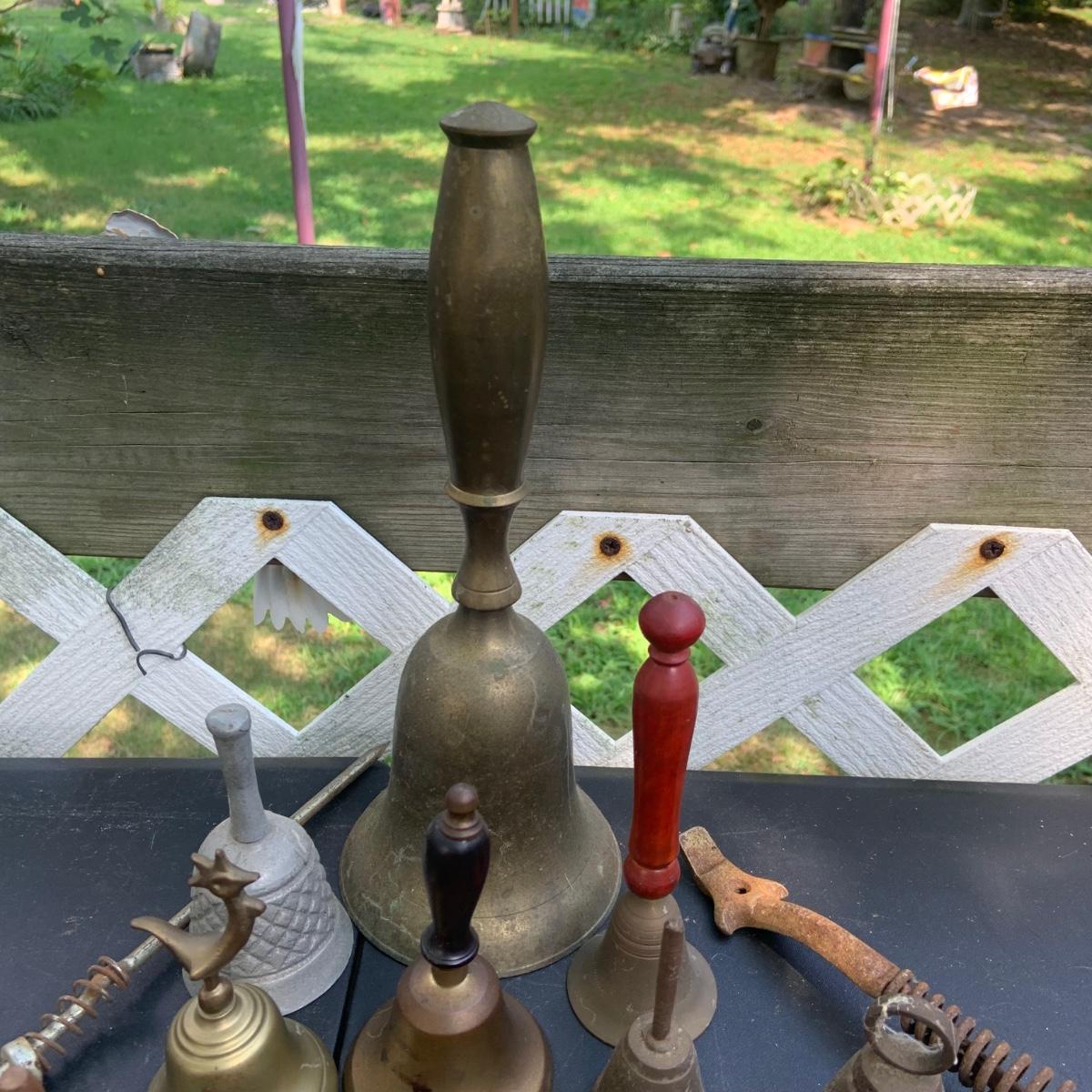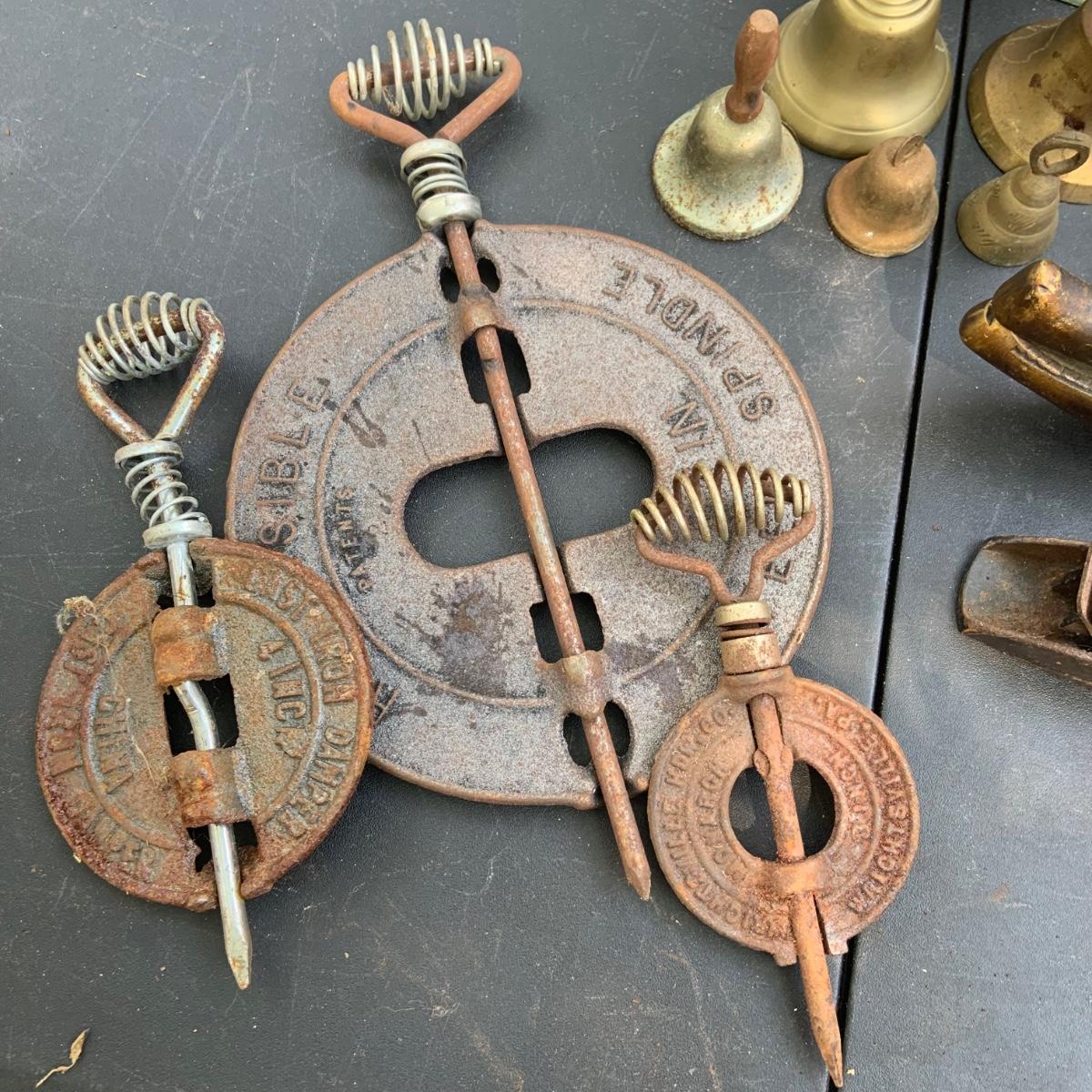 LOT:86: Brass and Other Bells, Stove Dampers, and Alligator Nutcracker More
