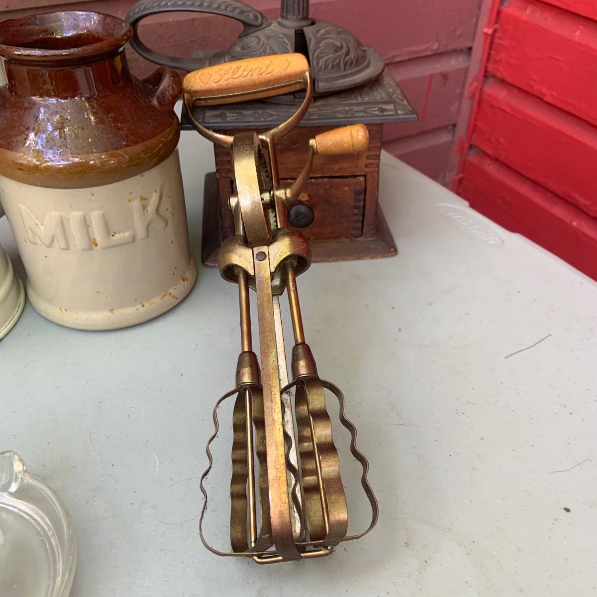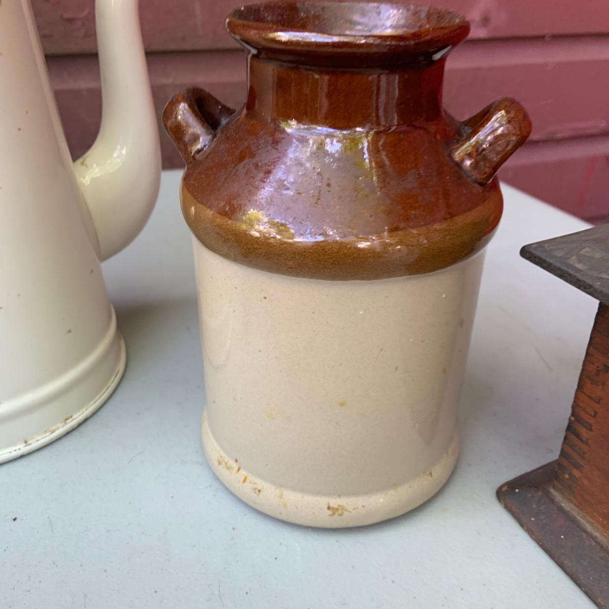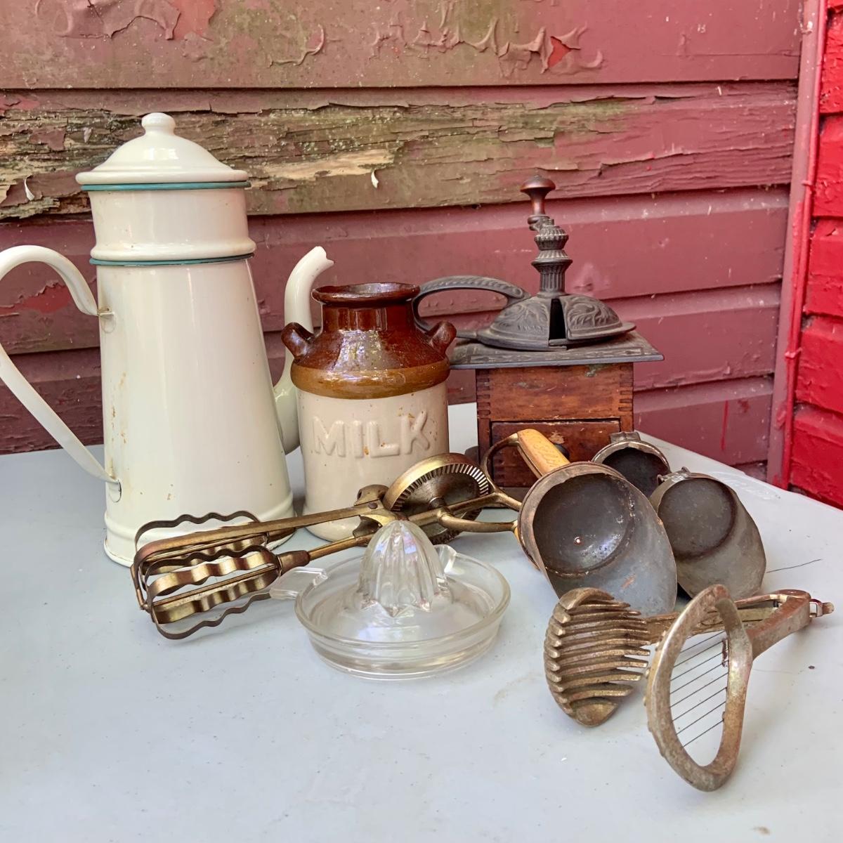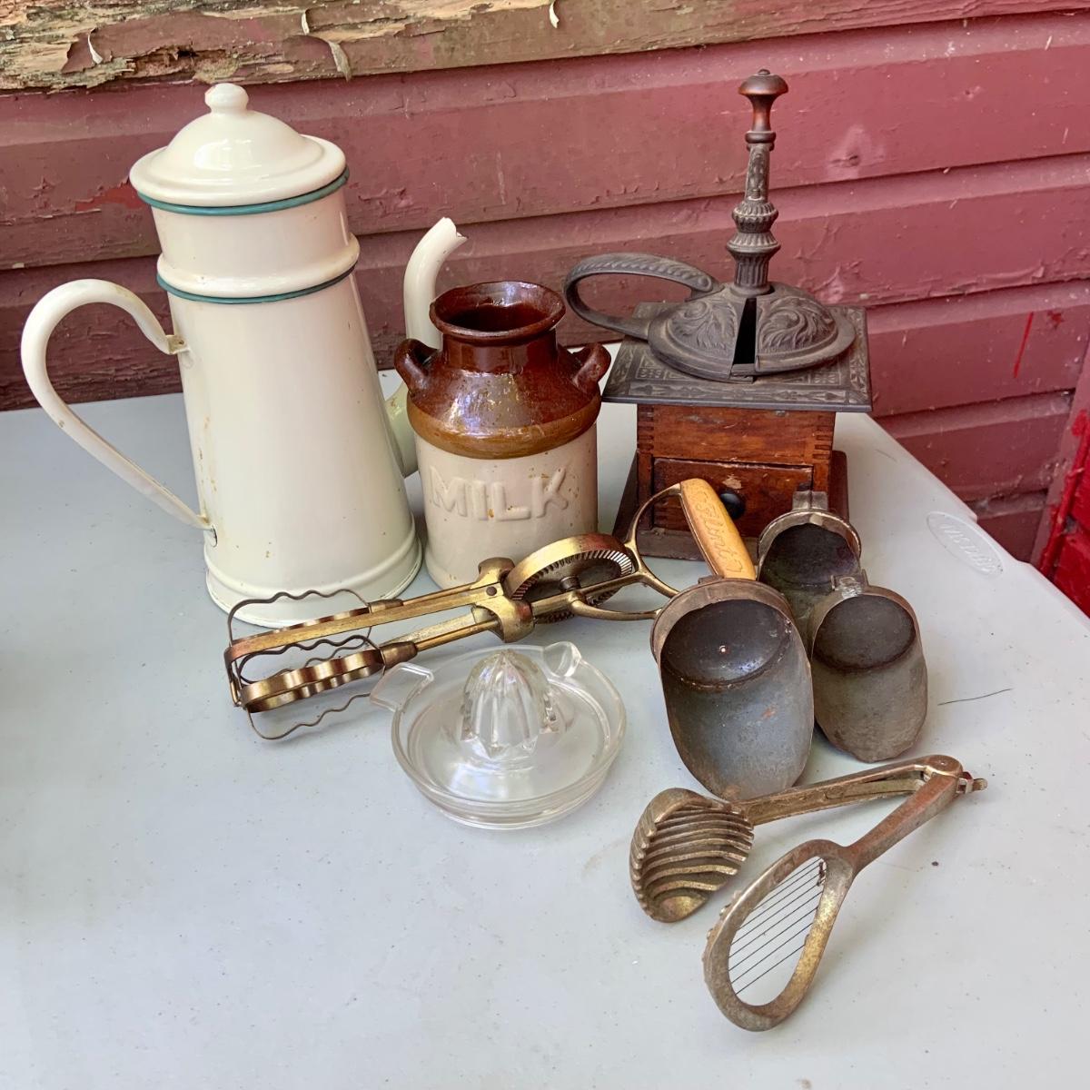 LOT:88G : Vintage Kitchen - Coffee Mill, Coffee Pot, Ceramic Milk Can, Juicer, Mixer and More