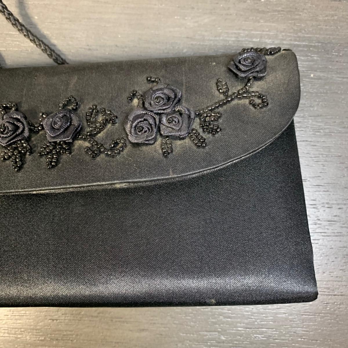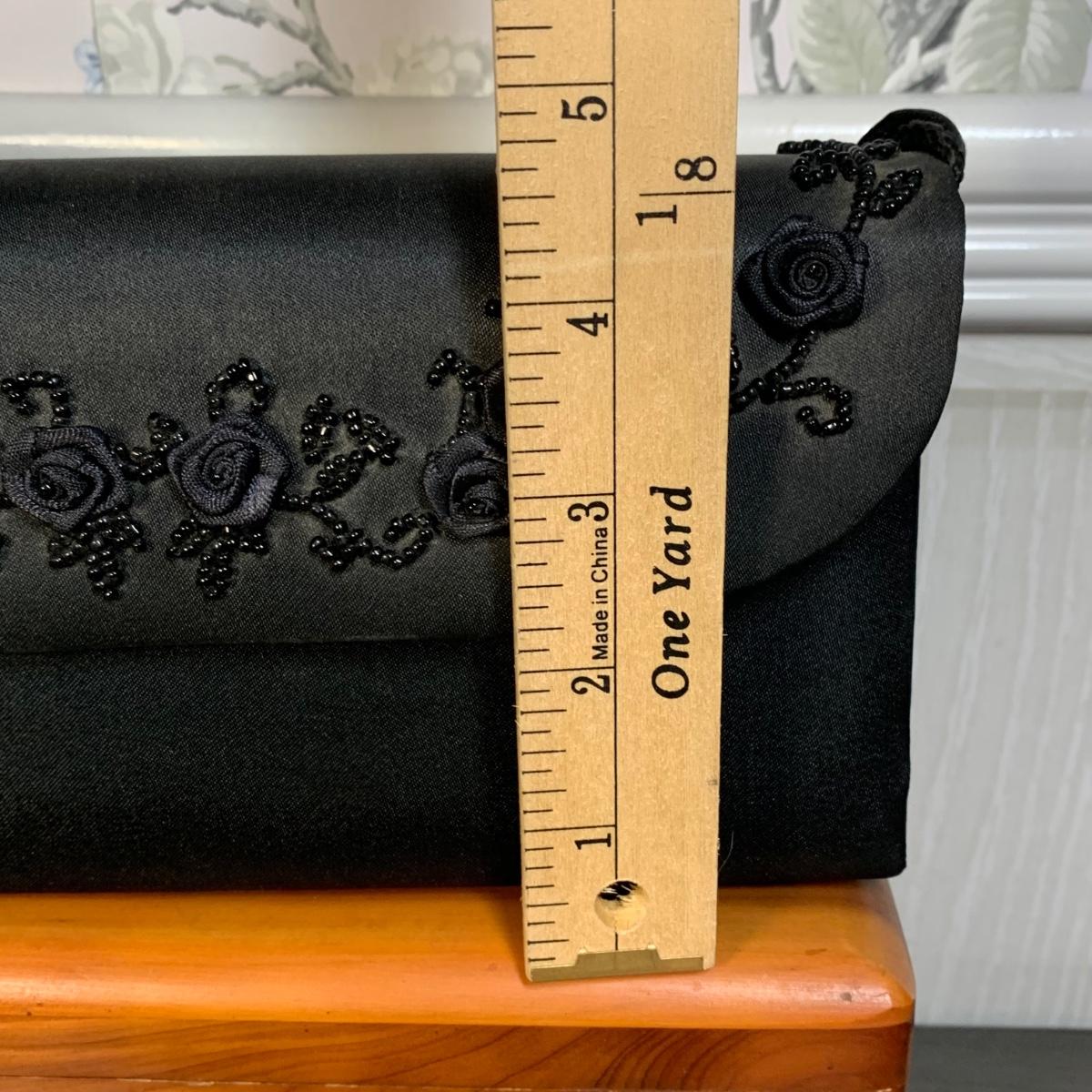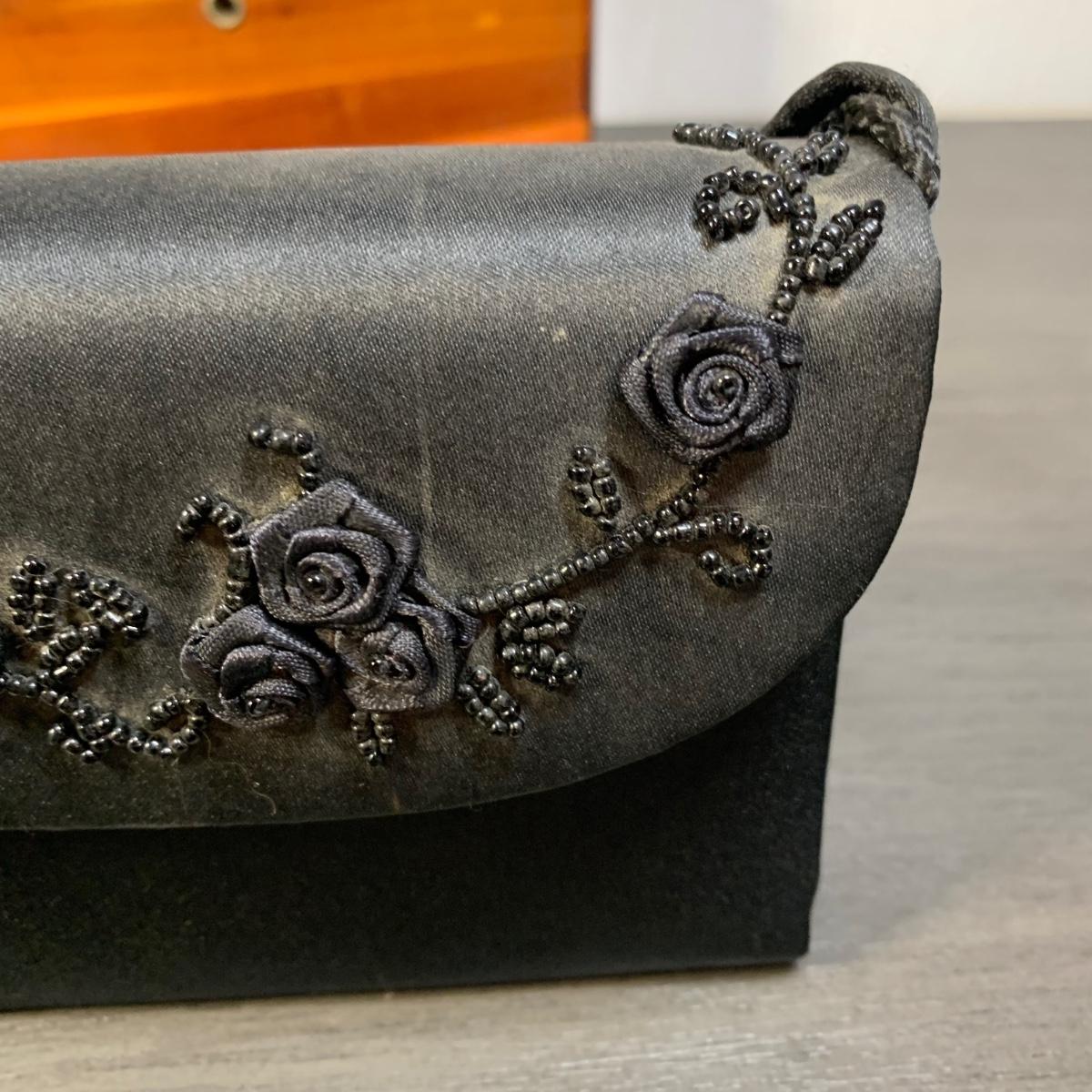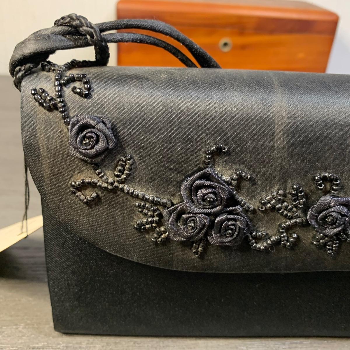 Lane jewelry box, collection of three change purses and a black beaded handbag.
