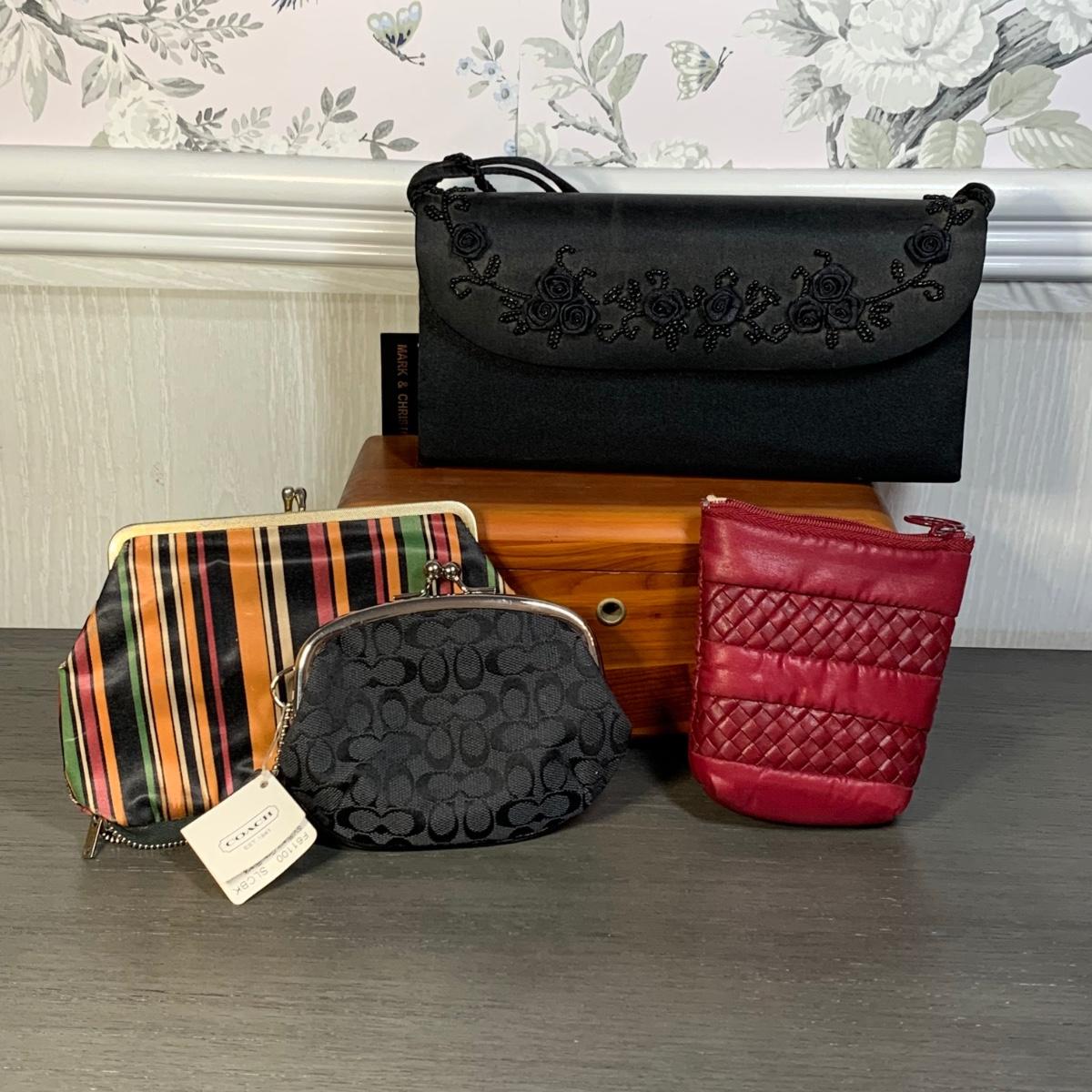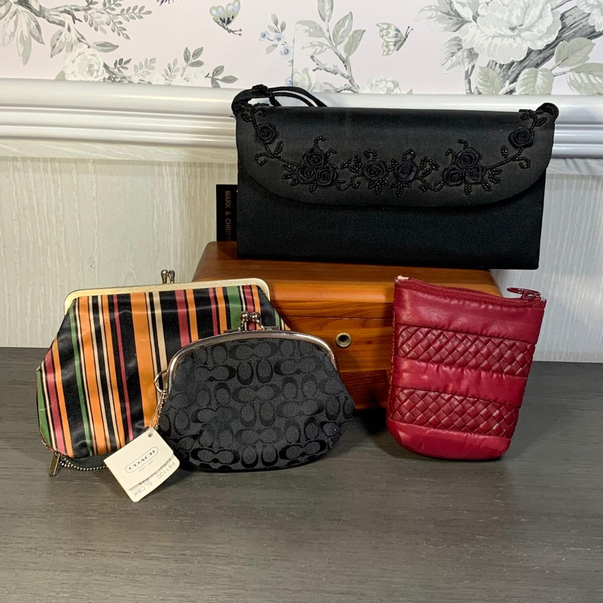 LOT 104: Coach Change Purse, Vintage Hand Bag, Lane Jewlry Box And More