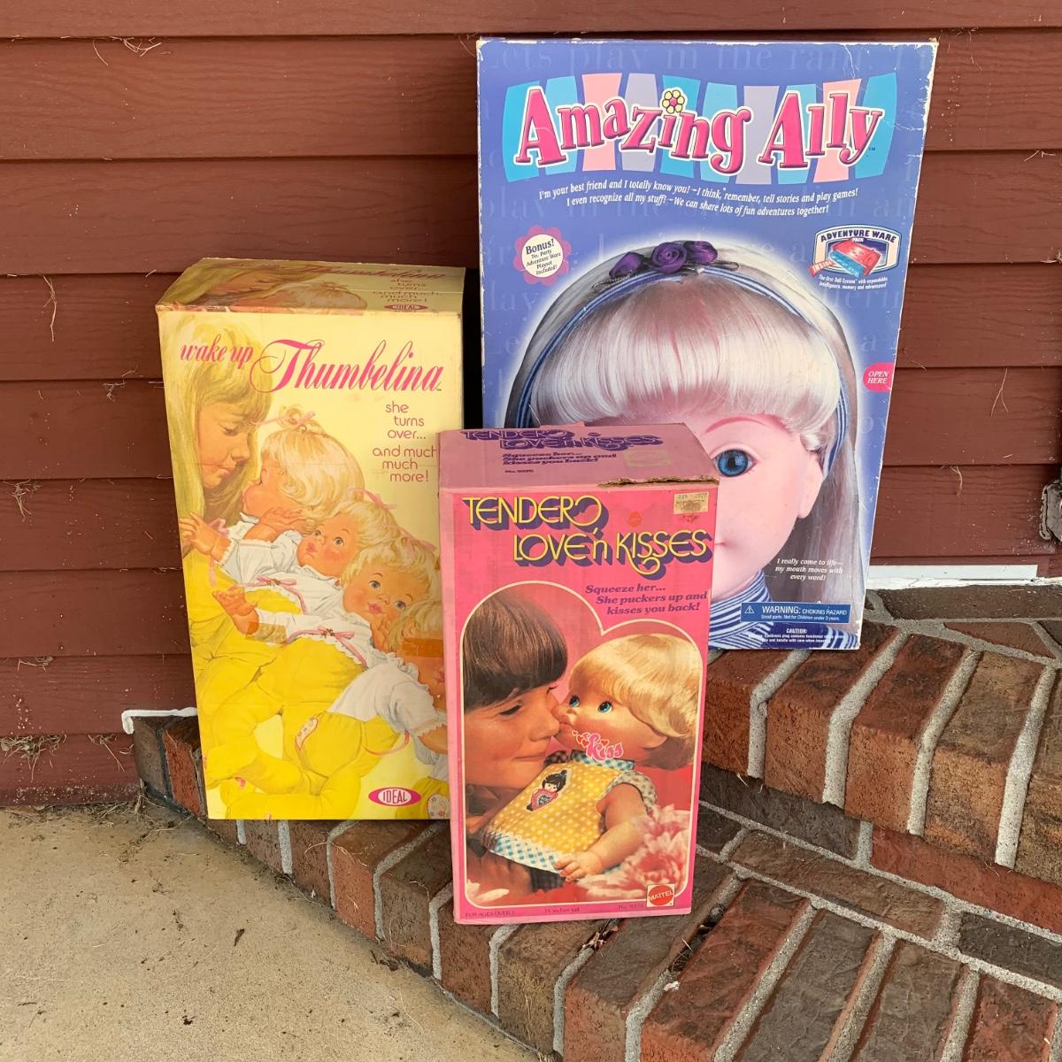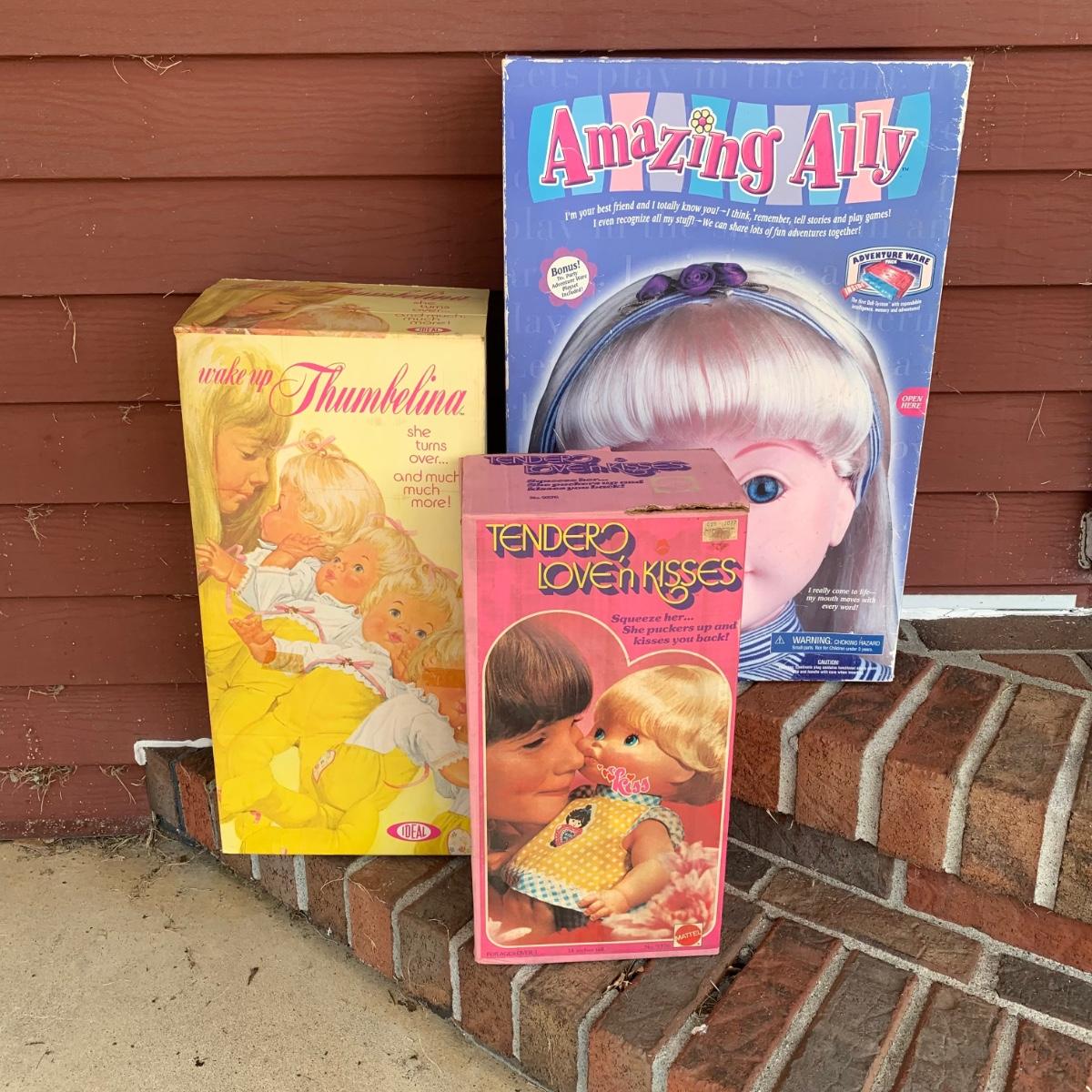 LOT 122R: Vintage Thumbelina Doll, Tender Loven' Kisses Doll & New in Box Amazing Ally