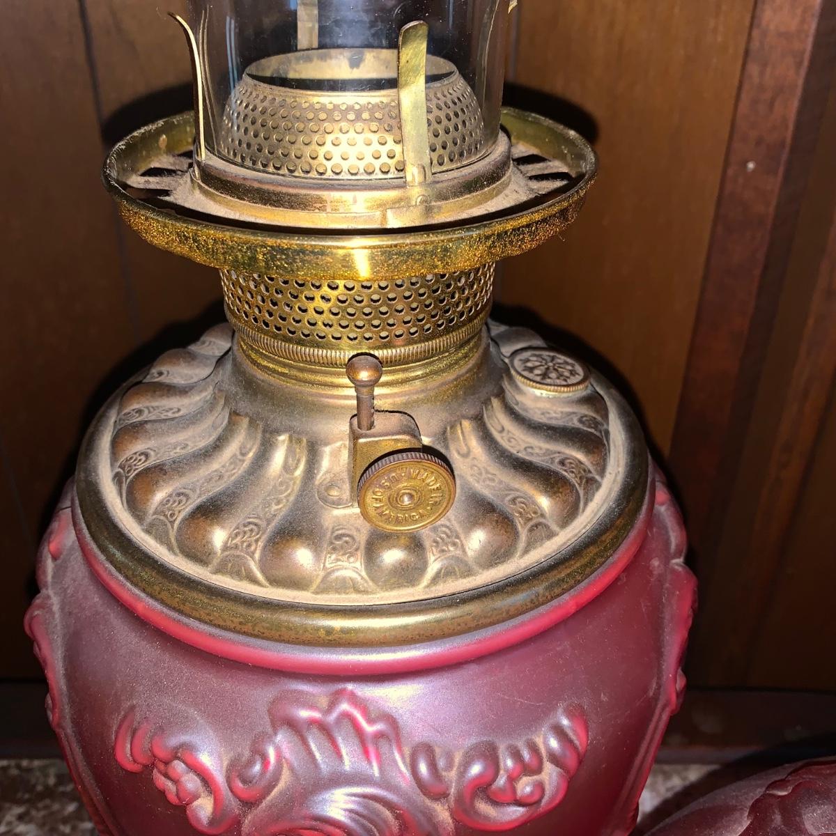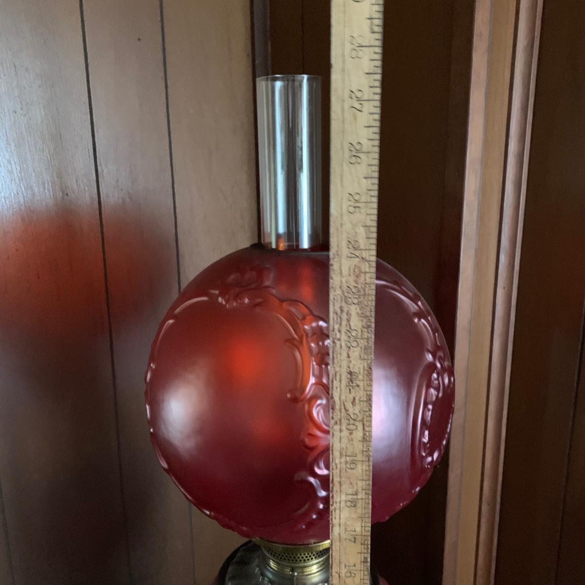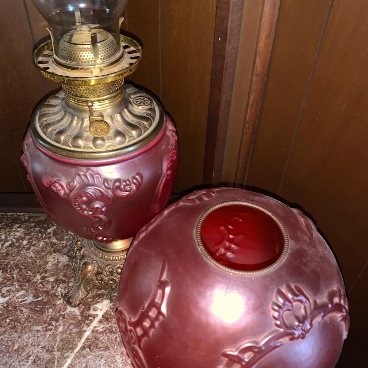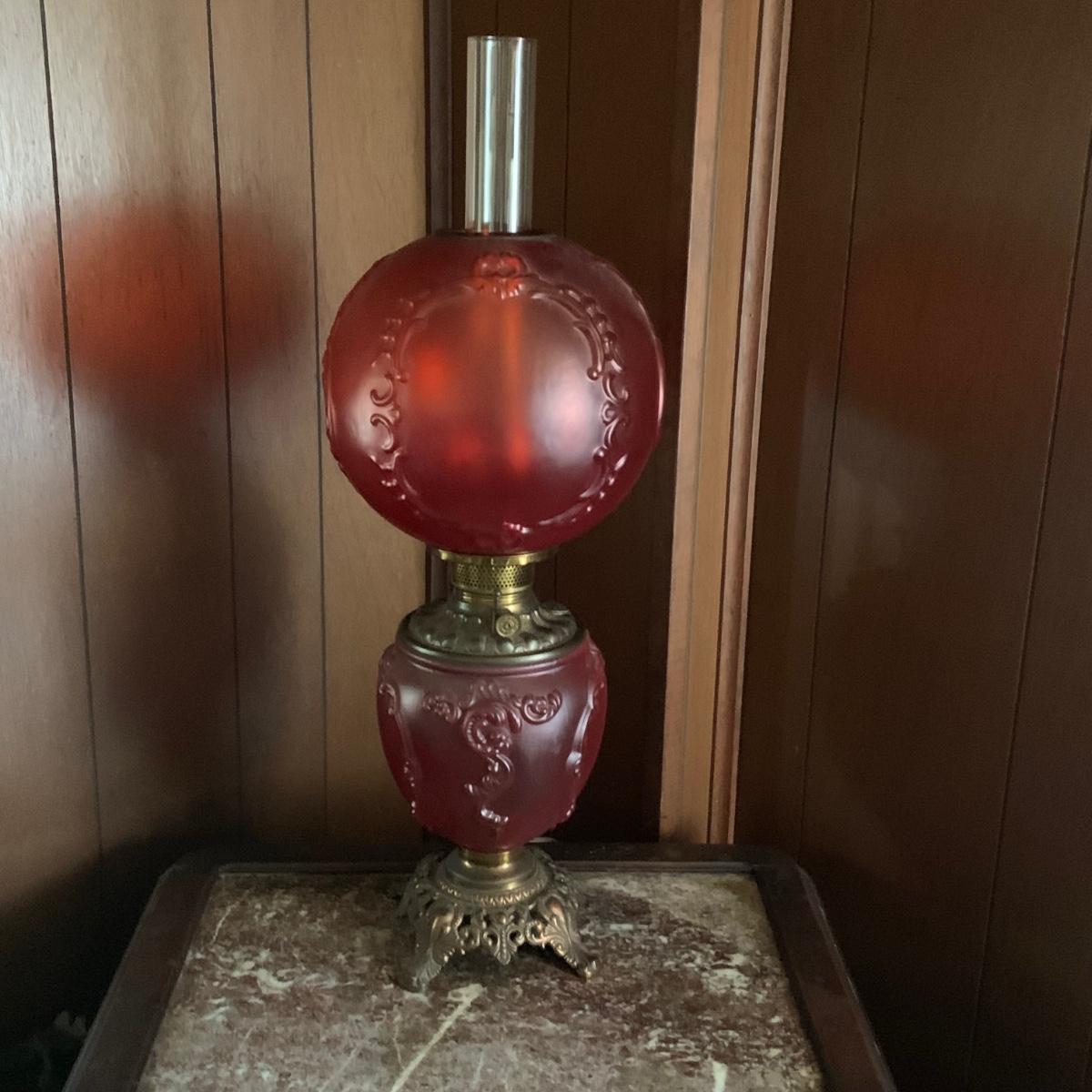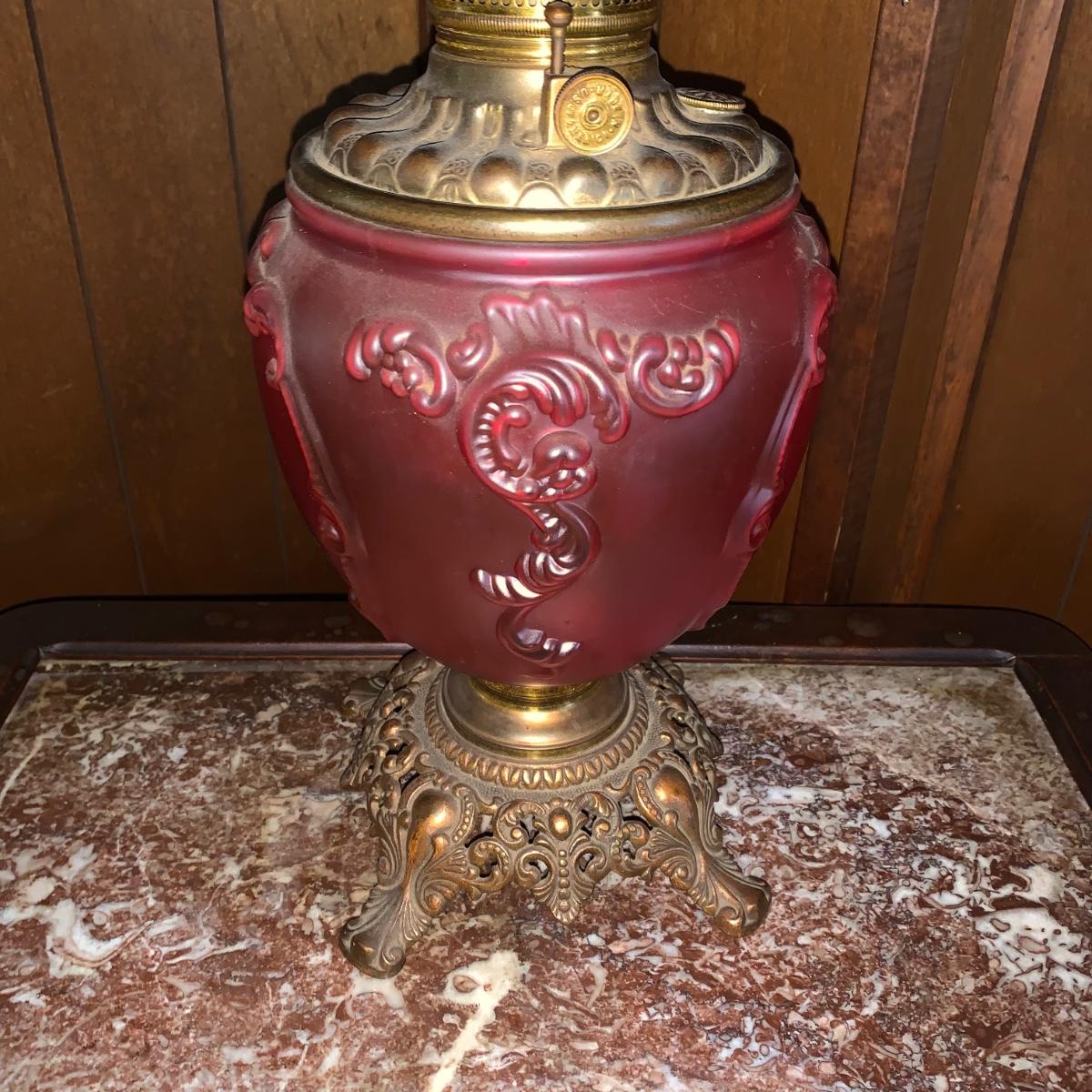 LOT 129R: Antique Victorian Red Glass Parlor Lamp - Electrified