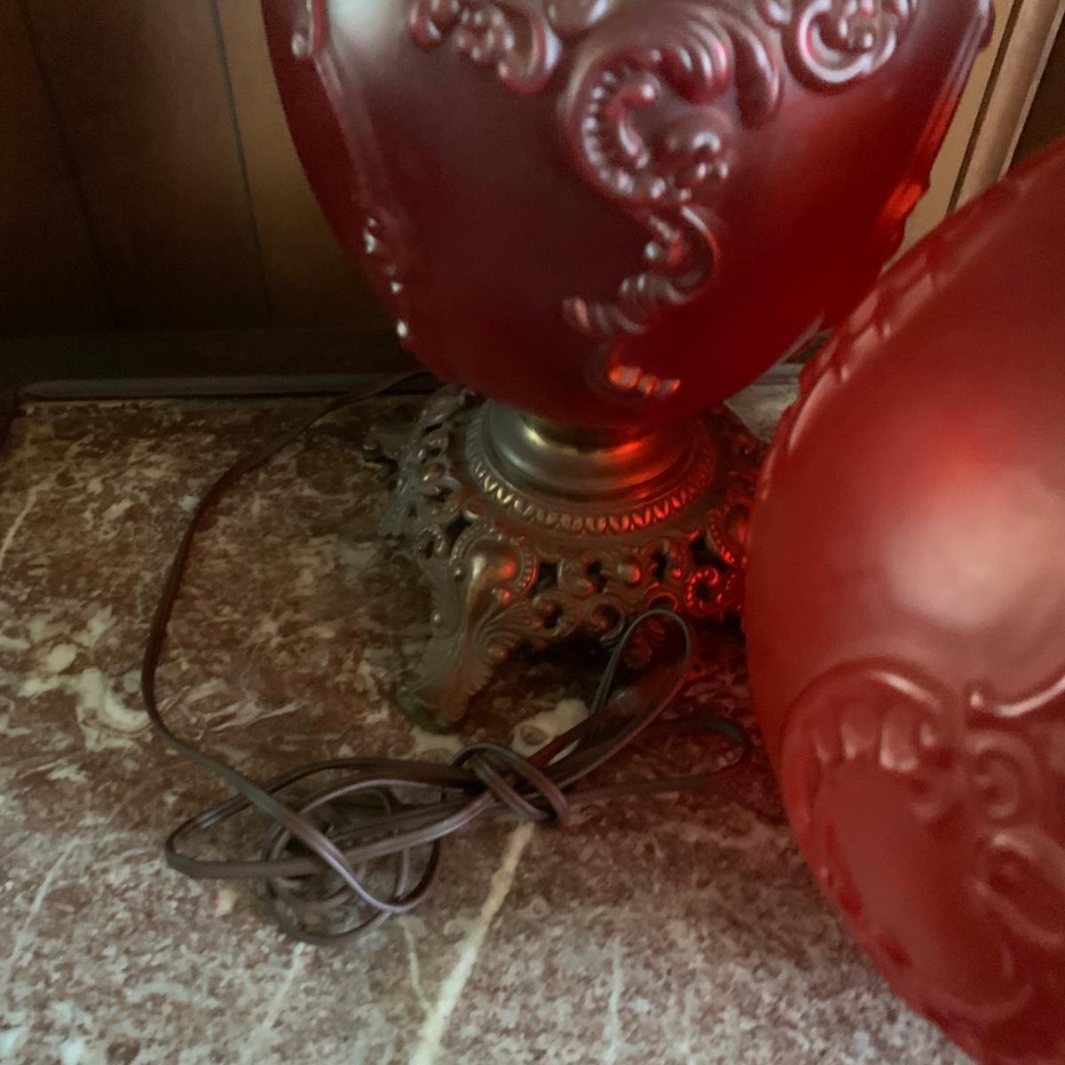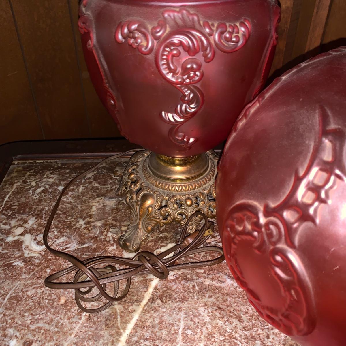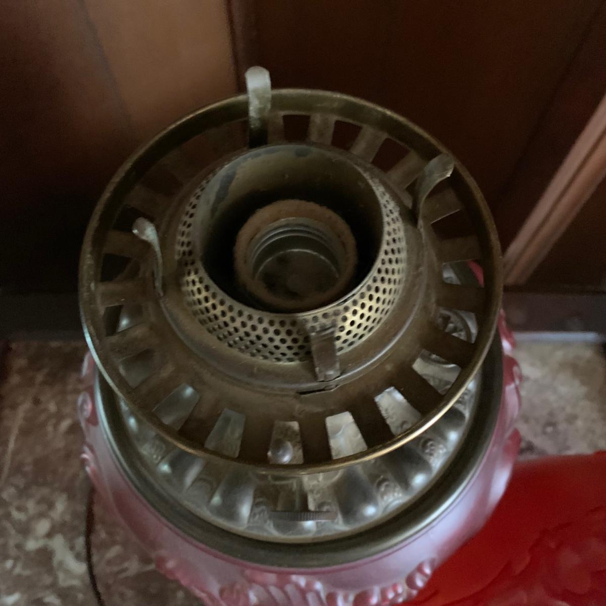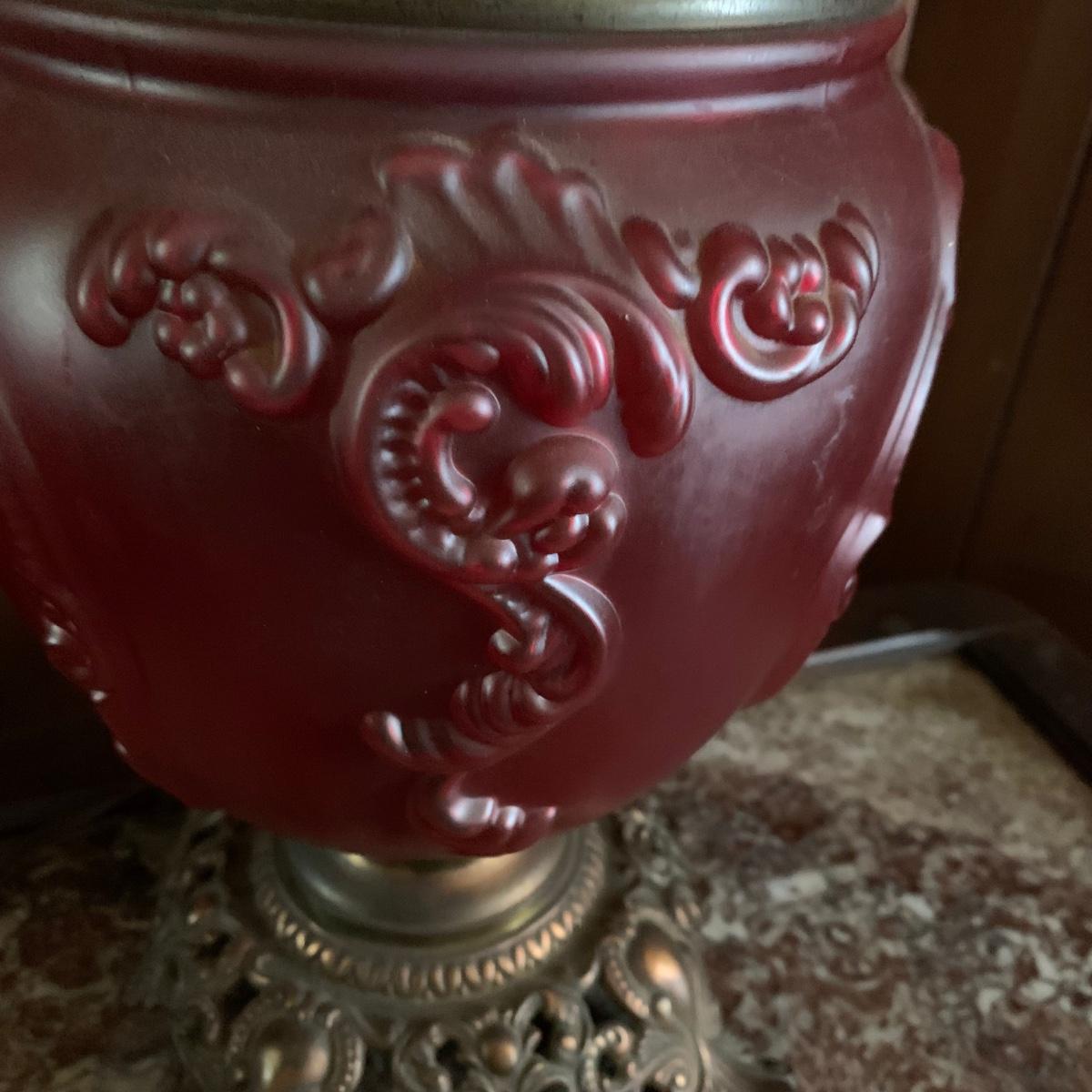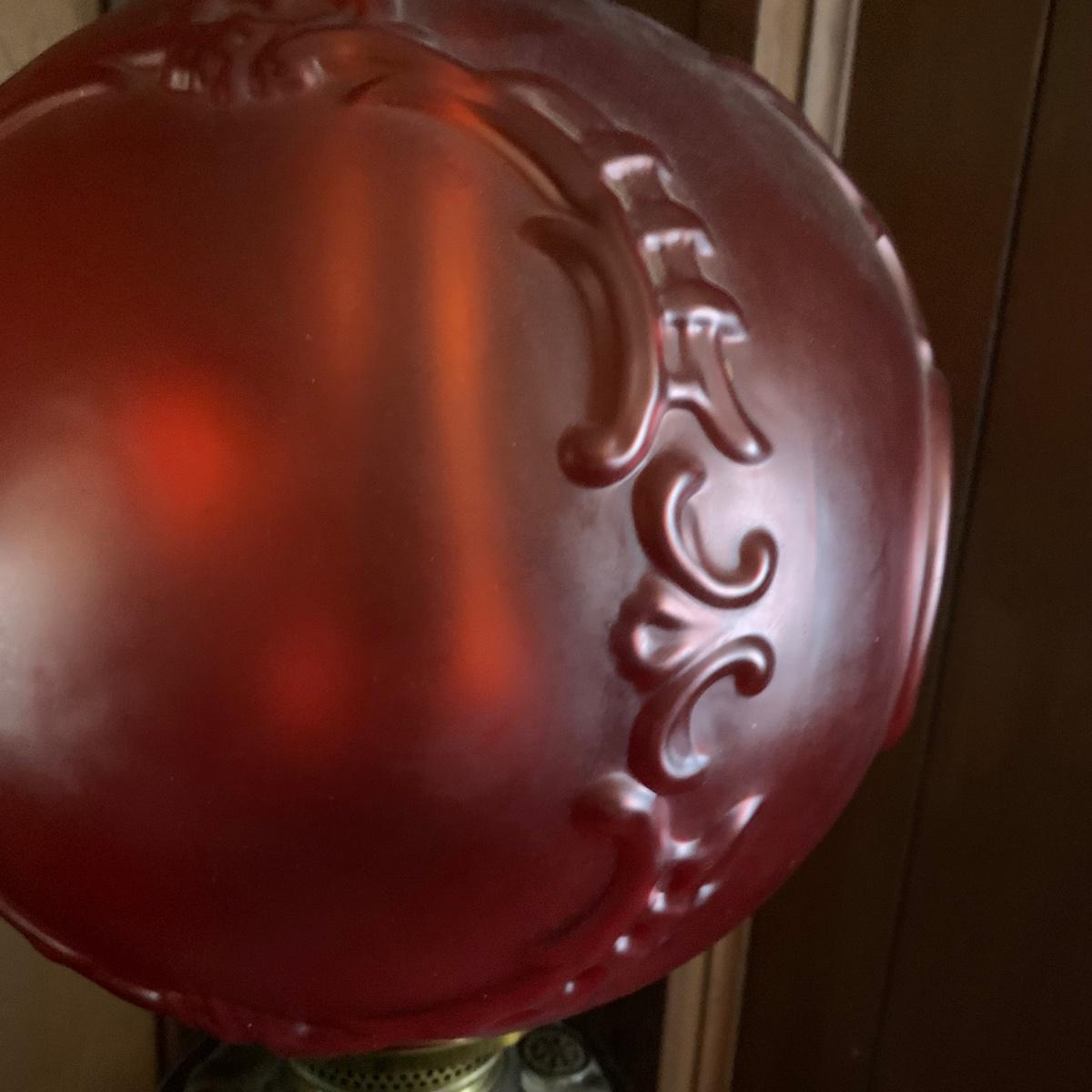 LOT 129R: Antique Victorian Red Glass Parlor Lamp - Electrified