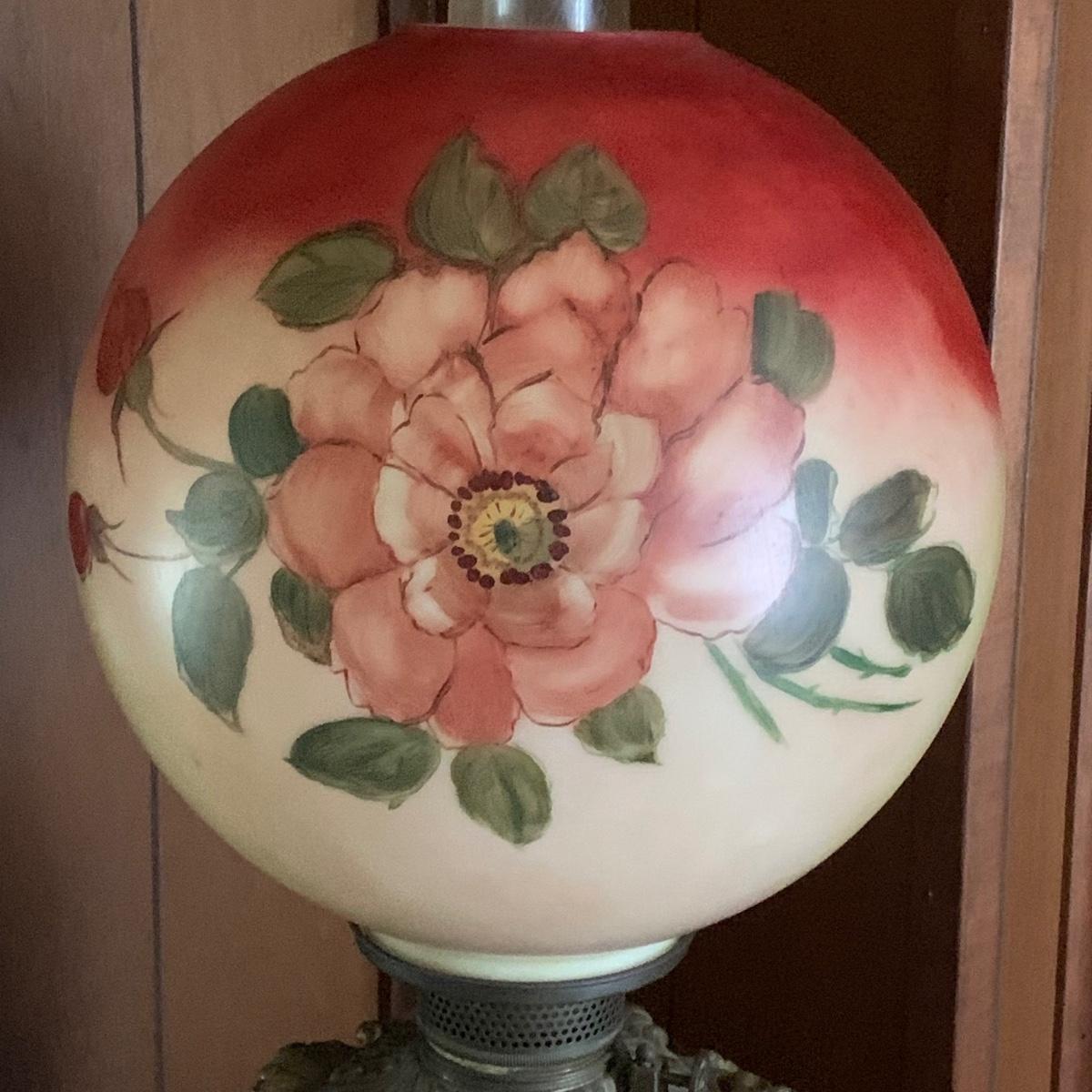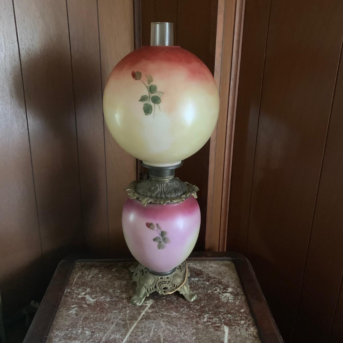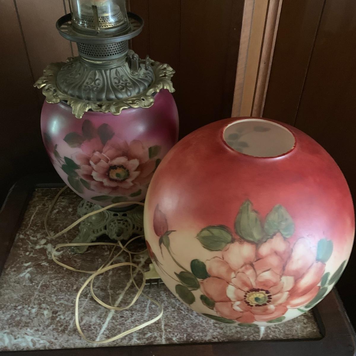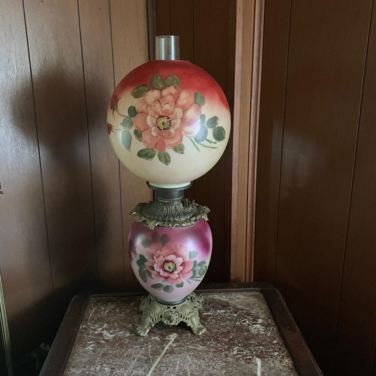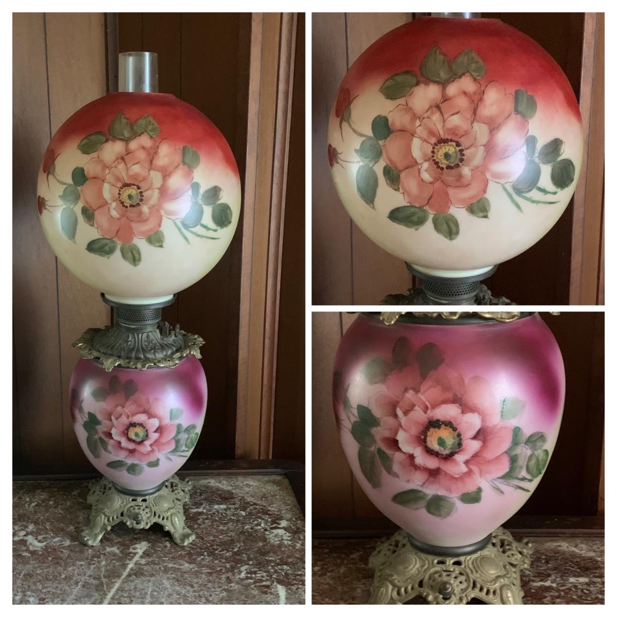LOT 130R: Antique Floral Parlor Lamp - Electrified