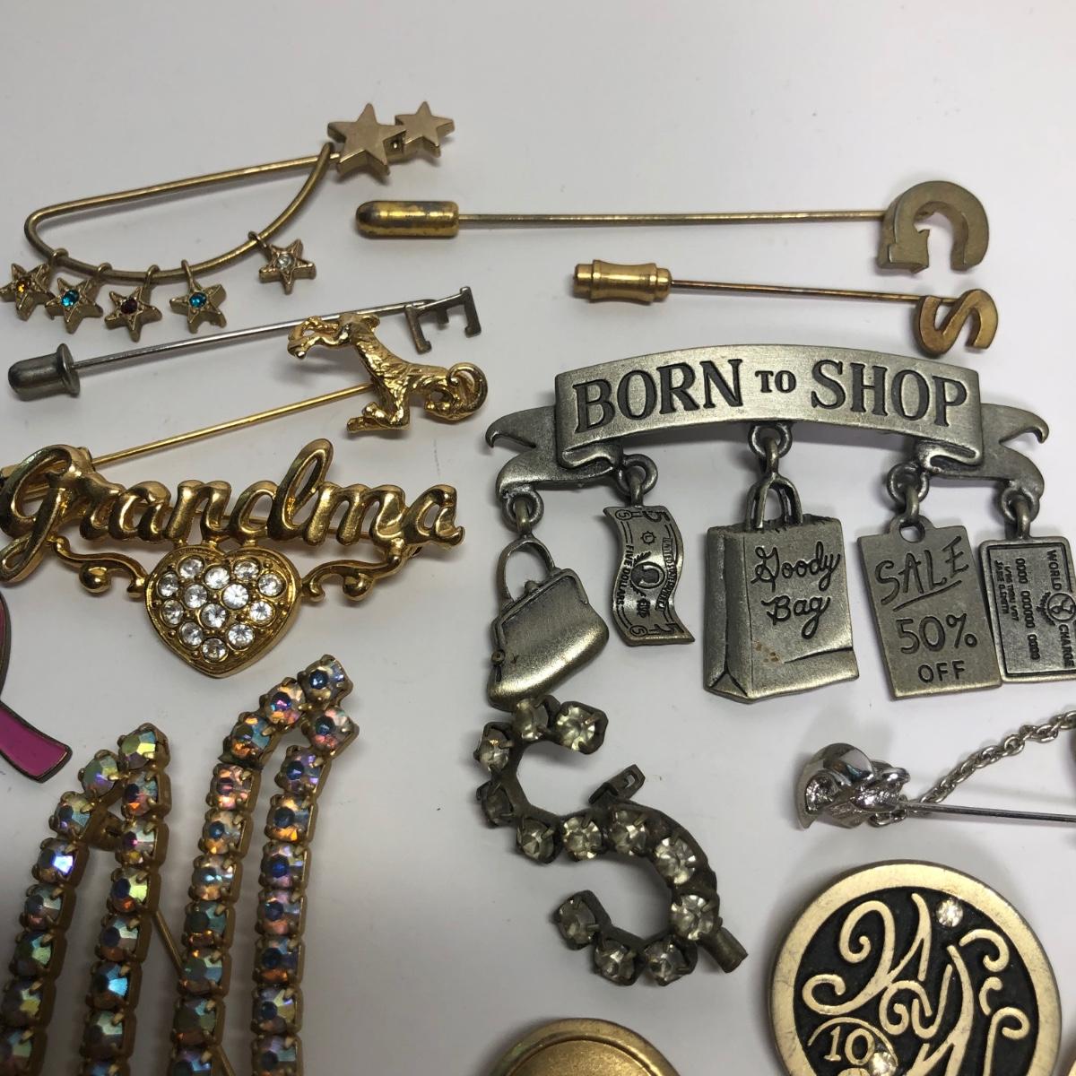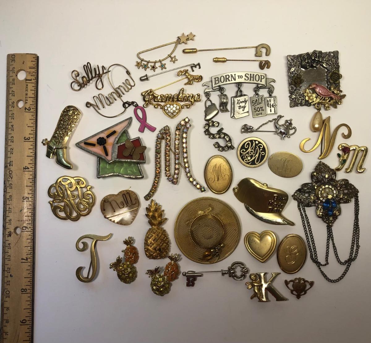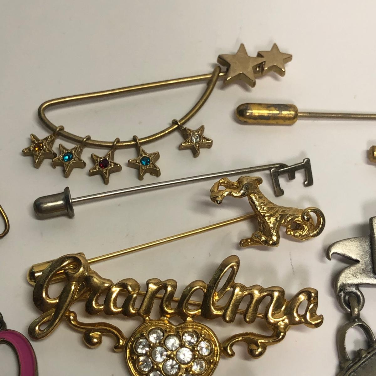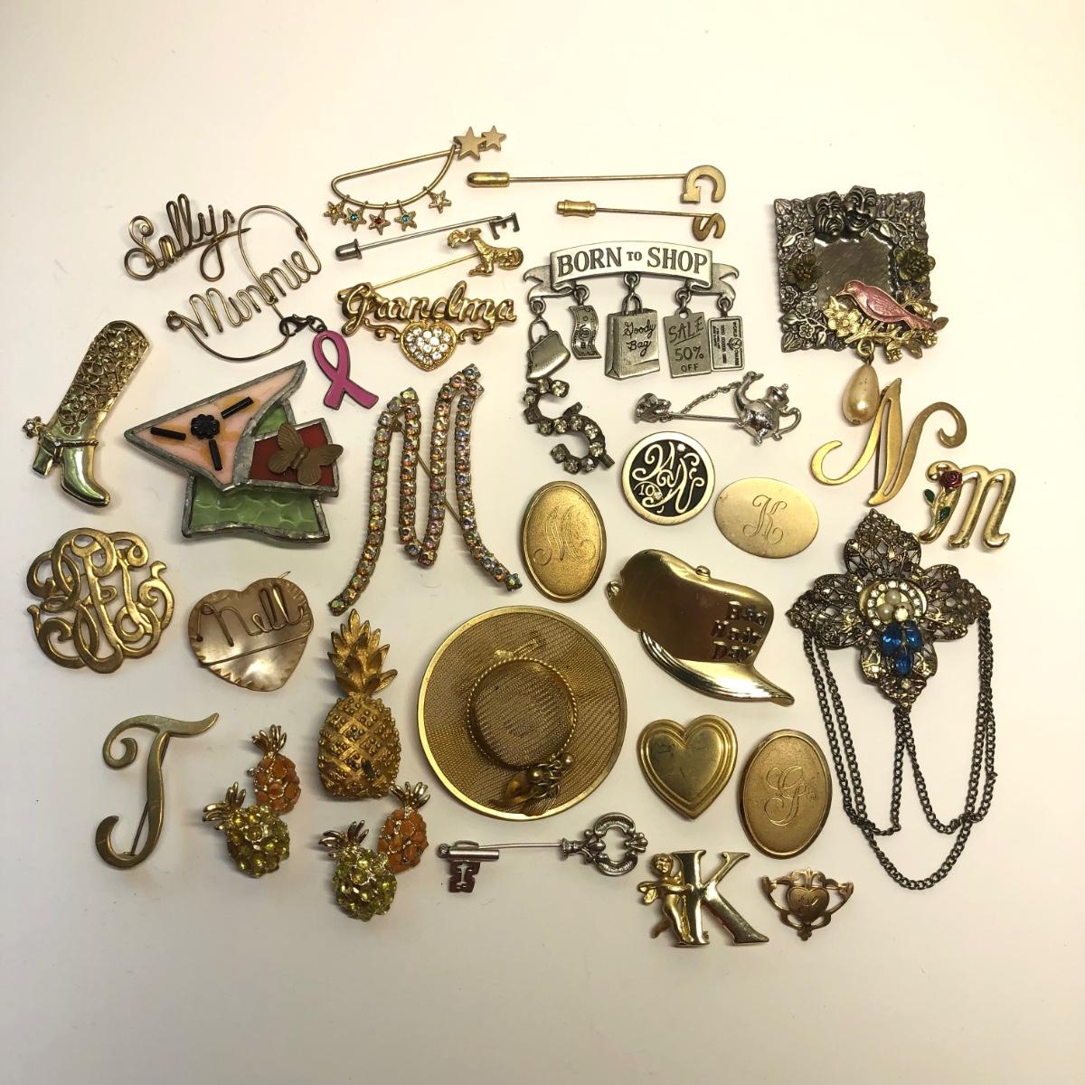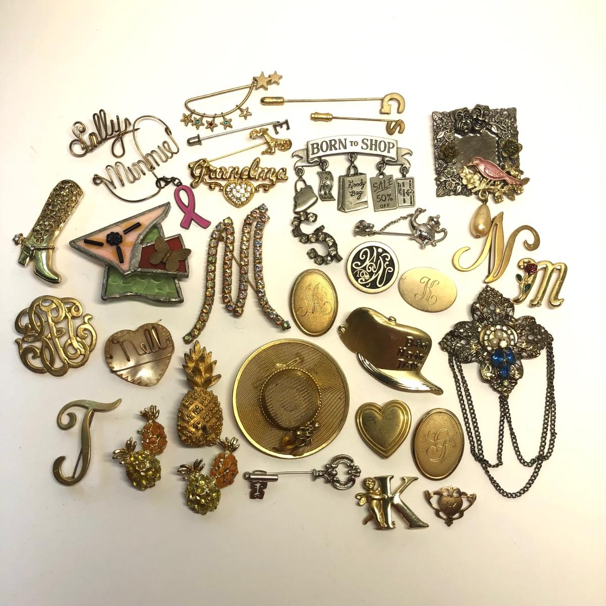Brand marked broaches, Fun pins, stick pin and more.