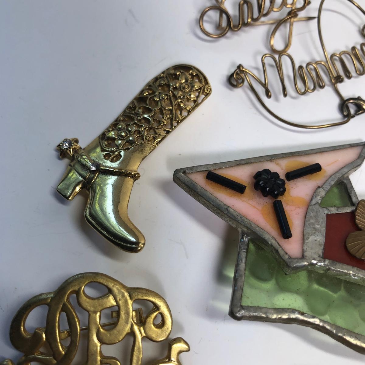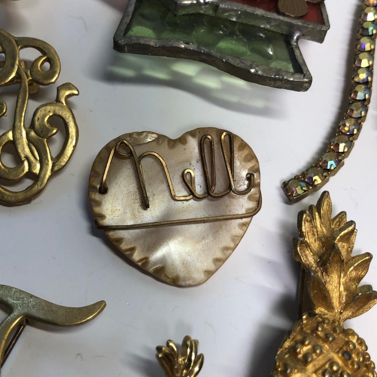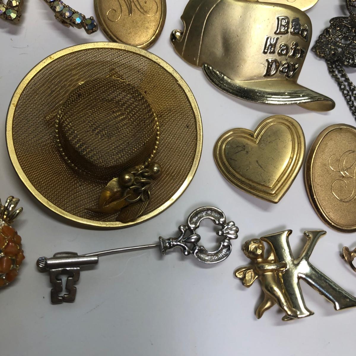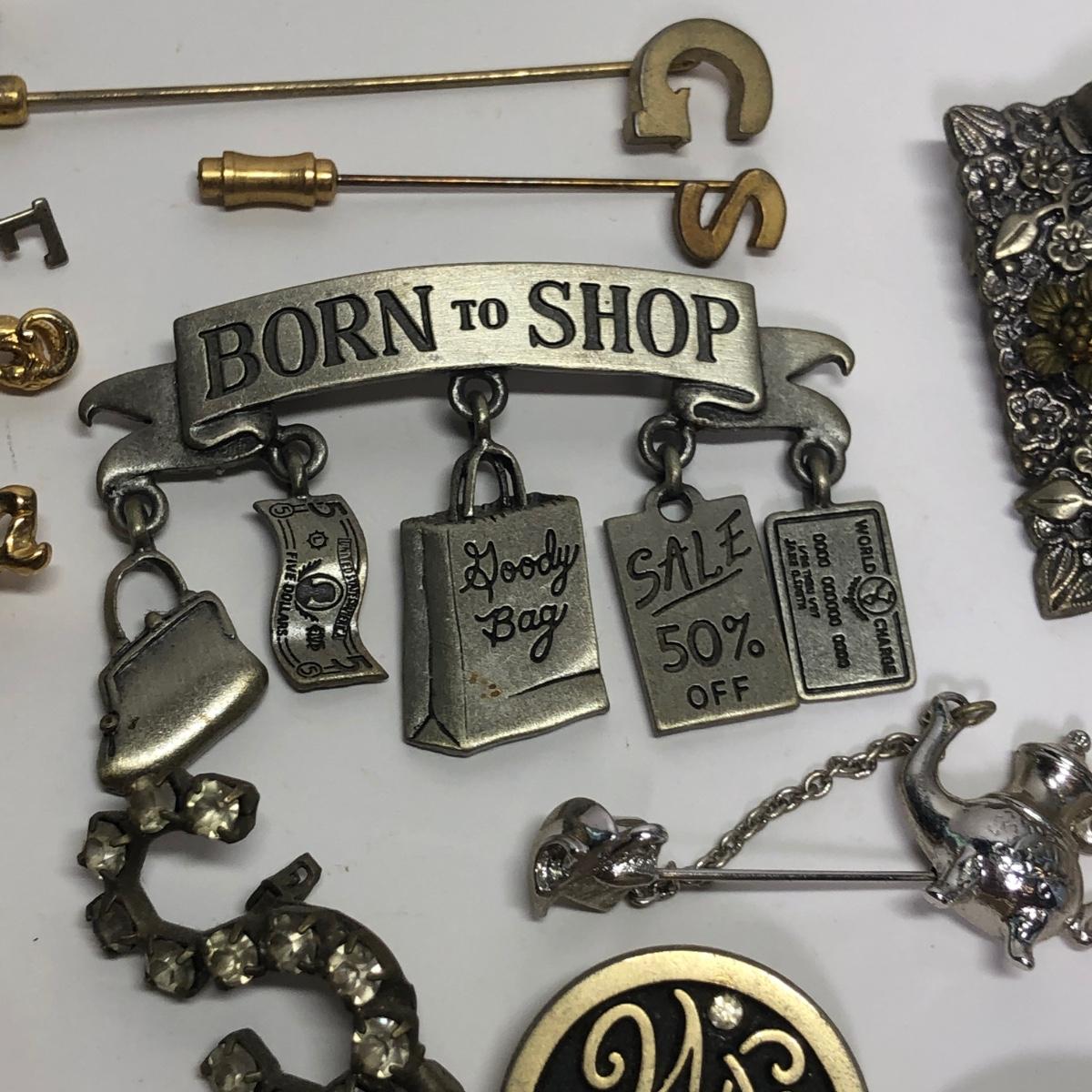 Brand marked broaches, Fun pins, stick pin and more.