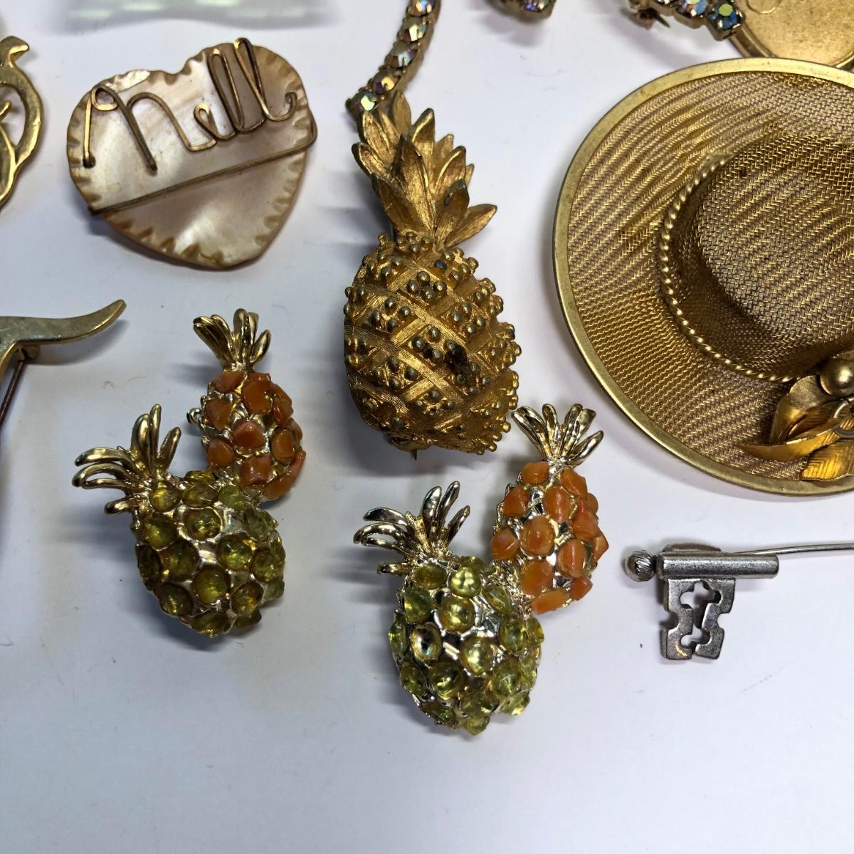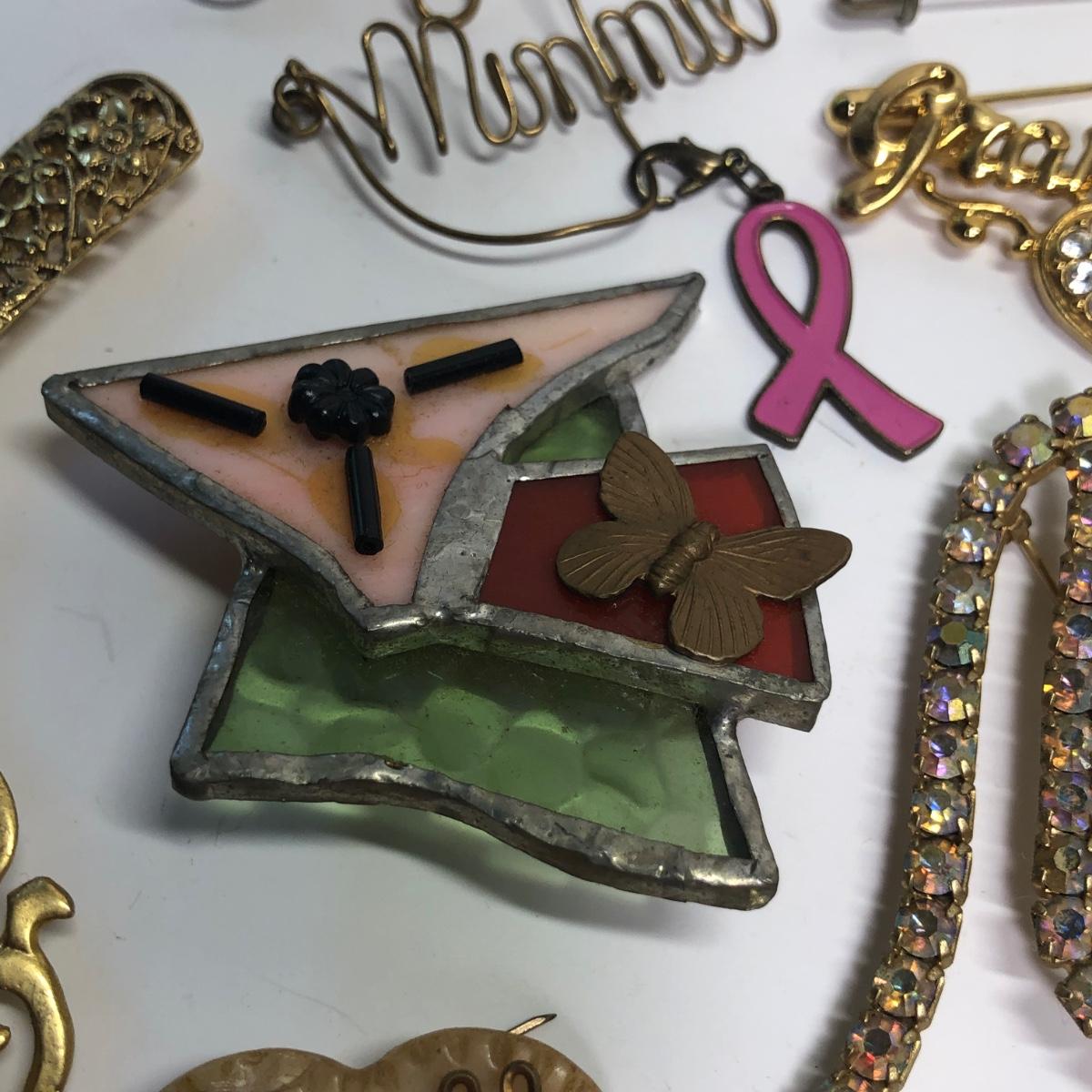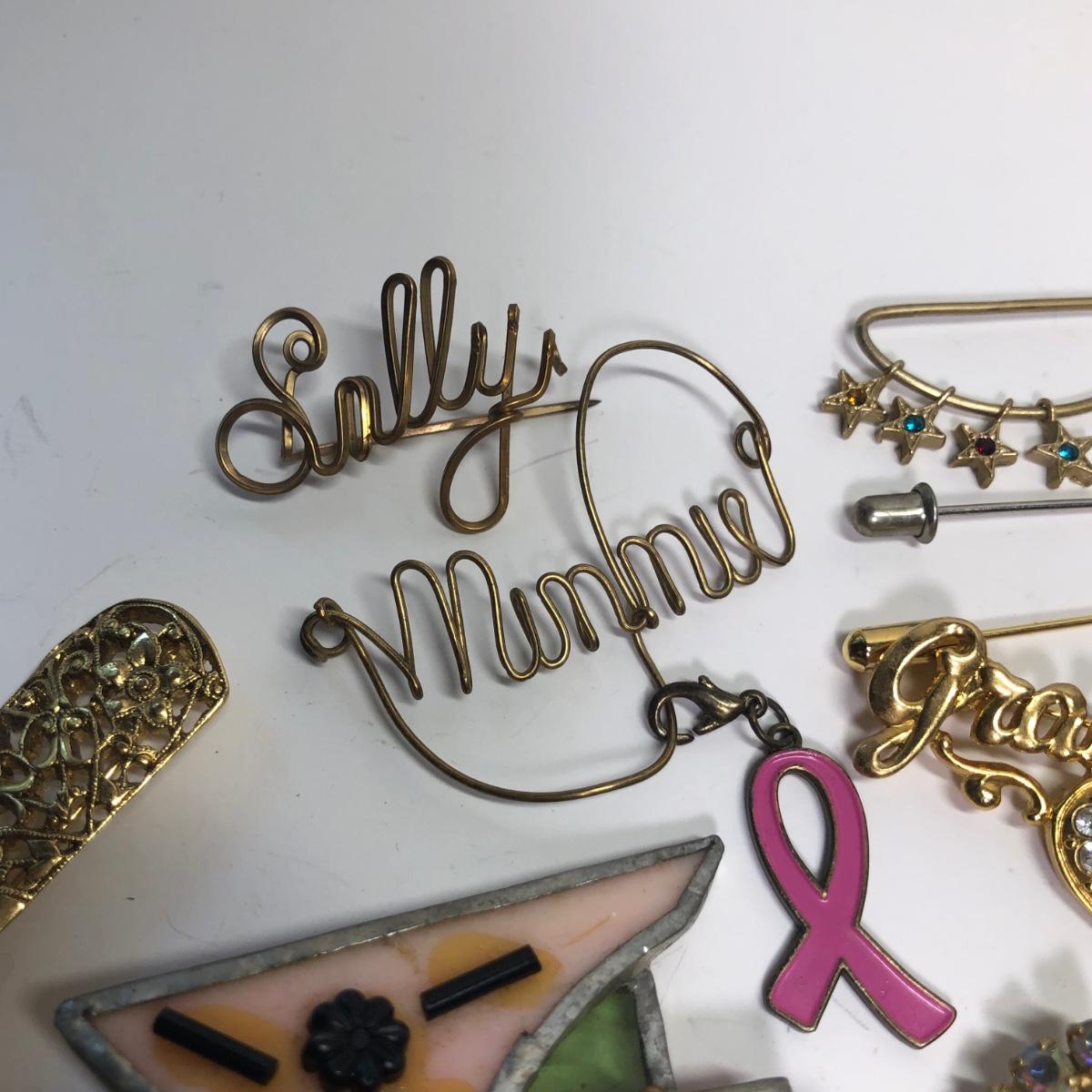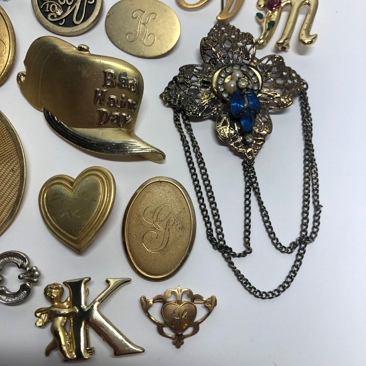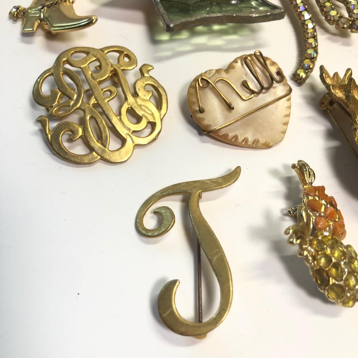 Brand marked broaches, Fun pins, stick pin and more.