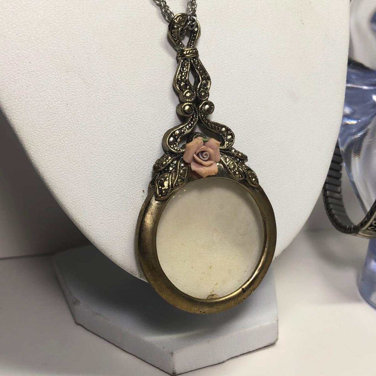 LOT 157: Nelson 157 17 Jewels Stickpin, Vintage Bulova Watch, Magnify Necklace And More Vintage Jewlry