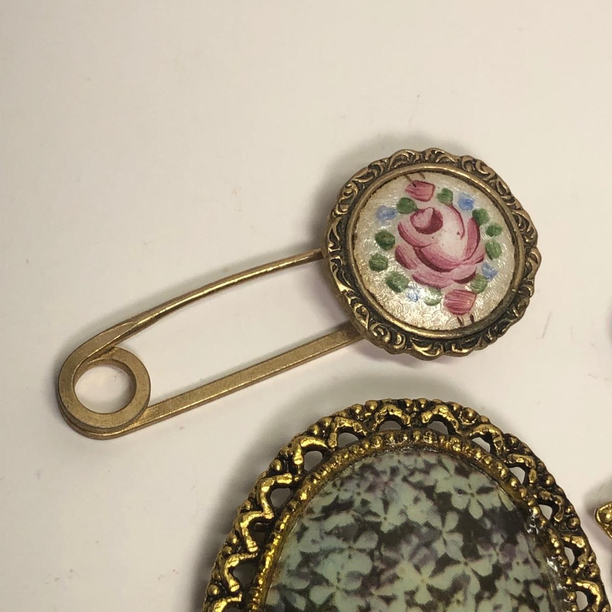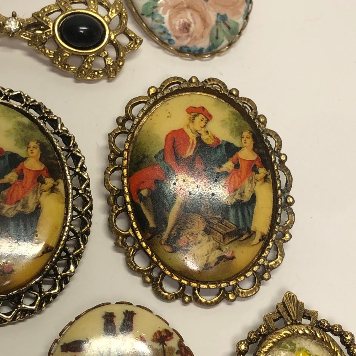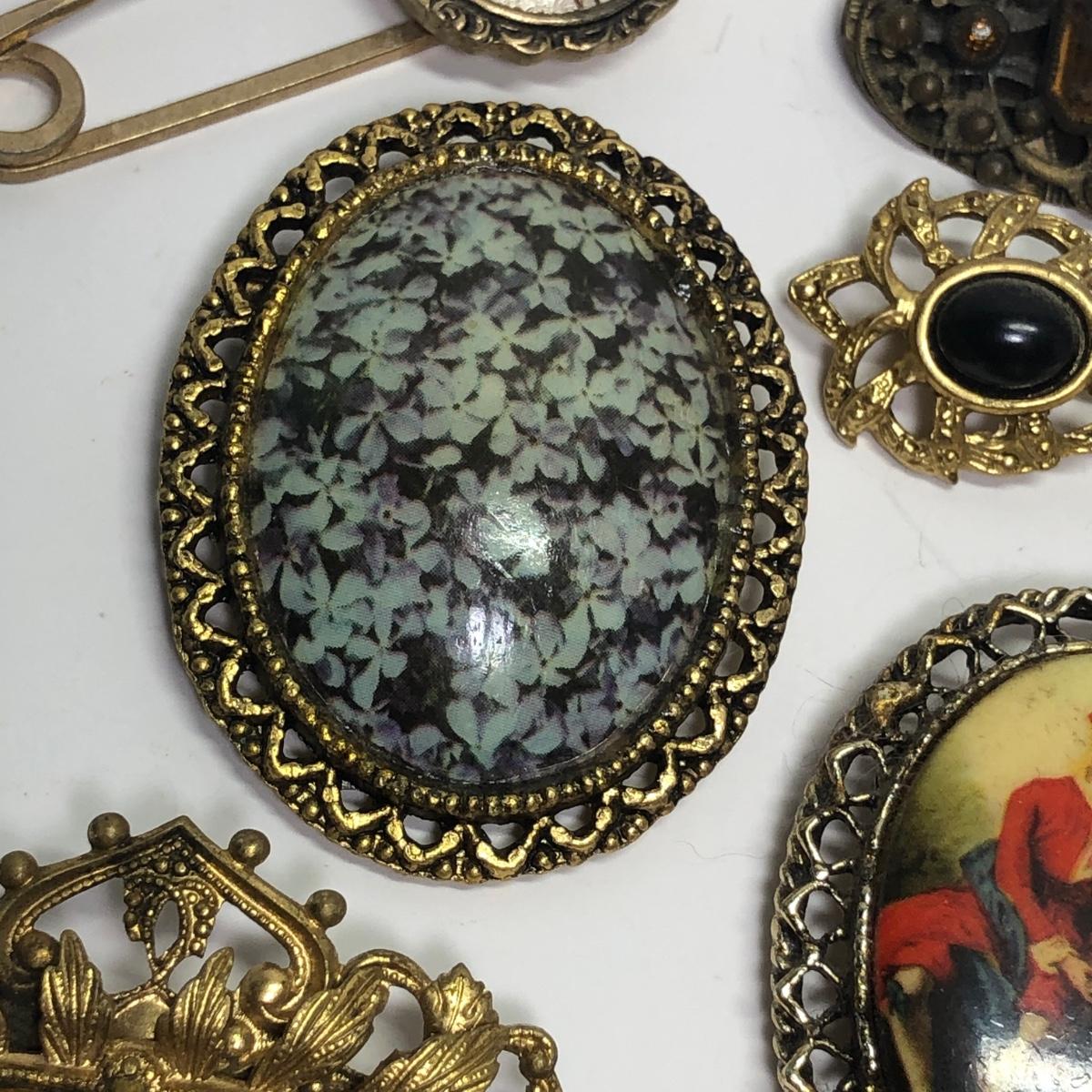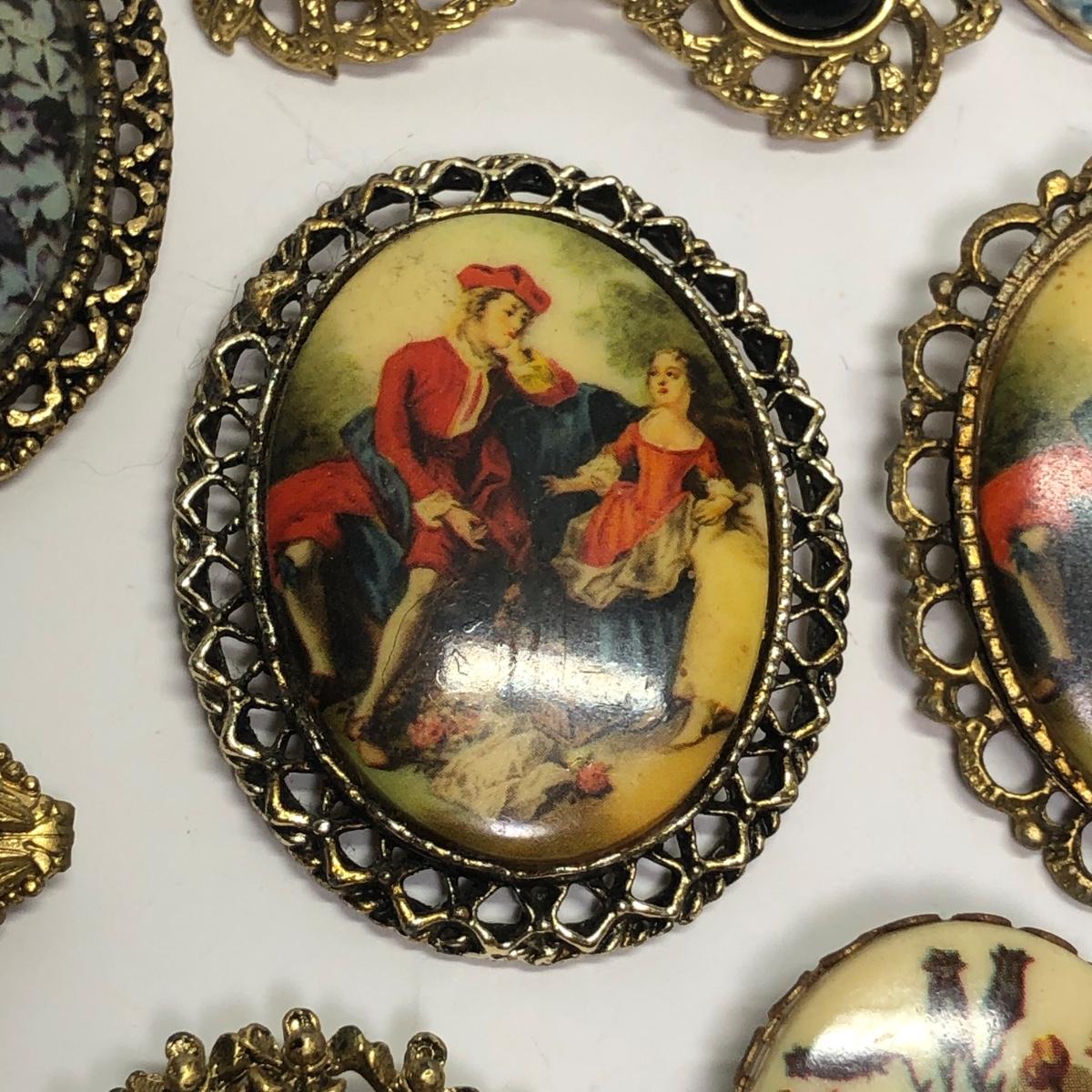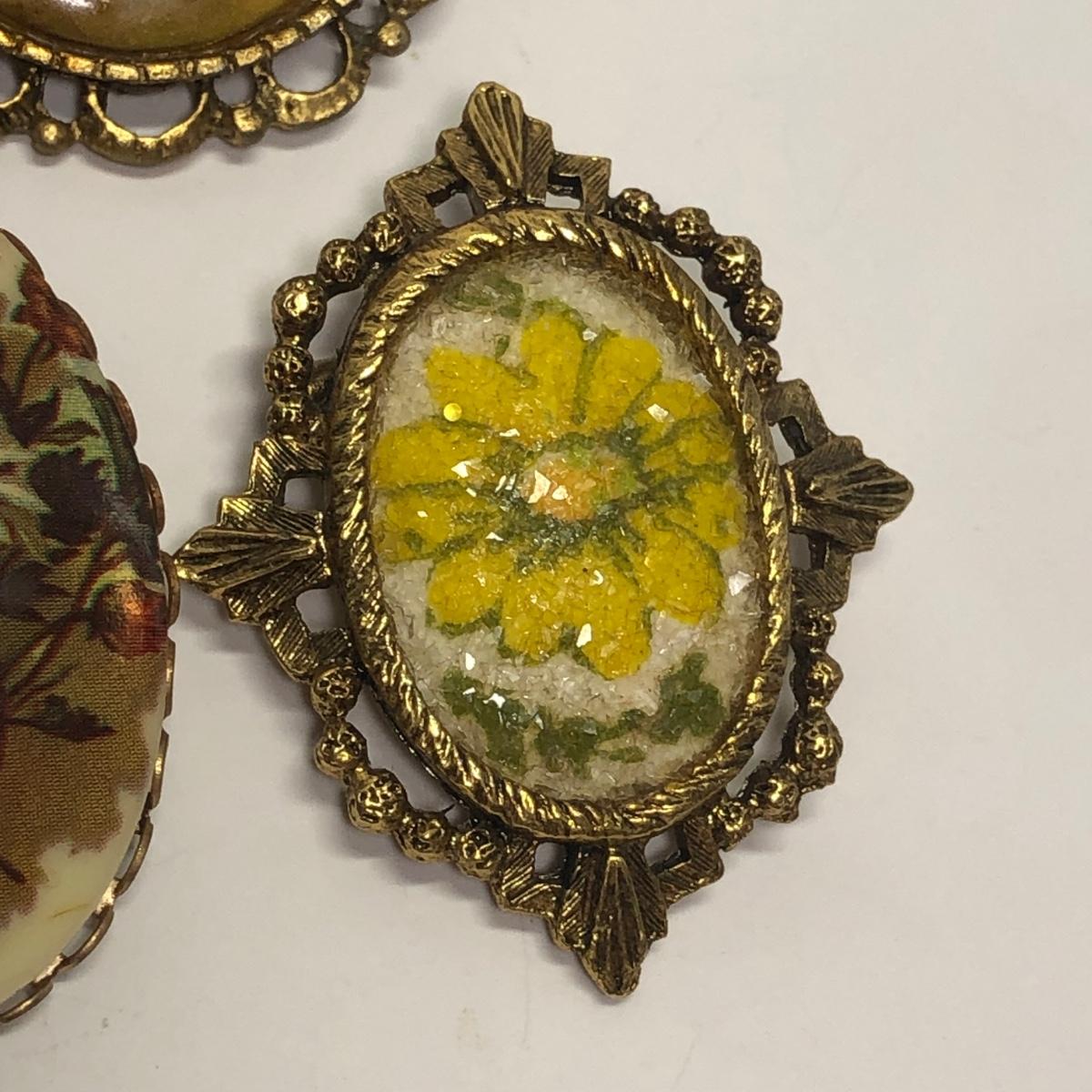 12 Framed vintage broaches. Vibrant colors.