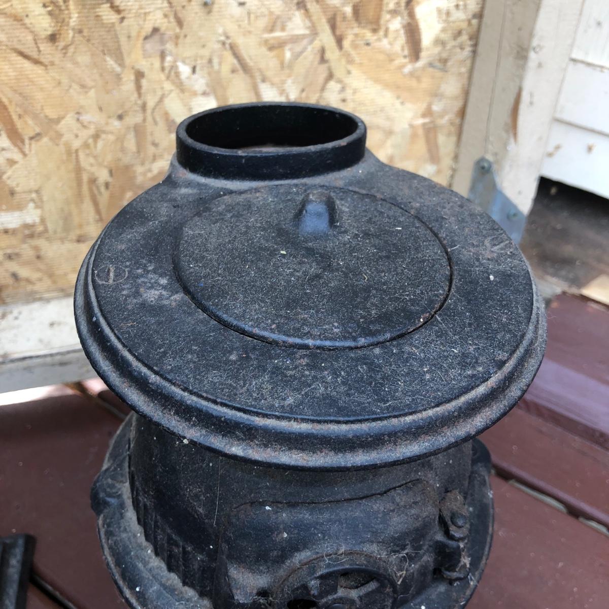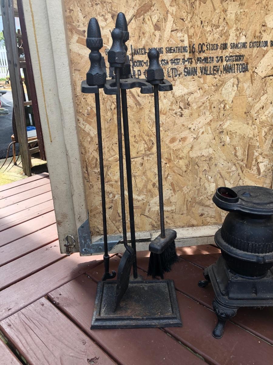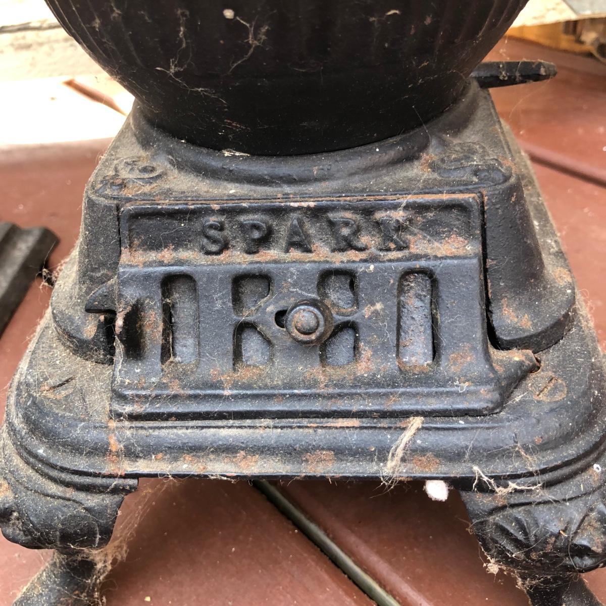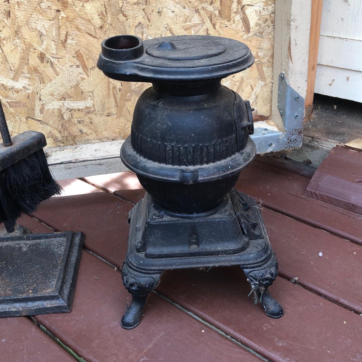 LOT 166M: Small Spark Potbelly Stove & Fireplace Tools