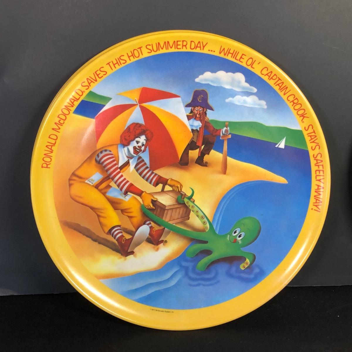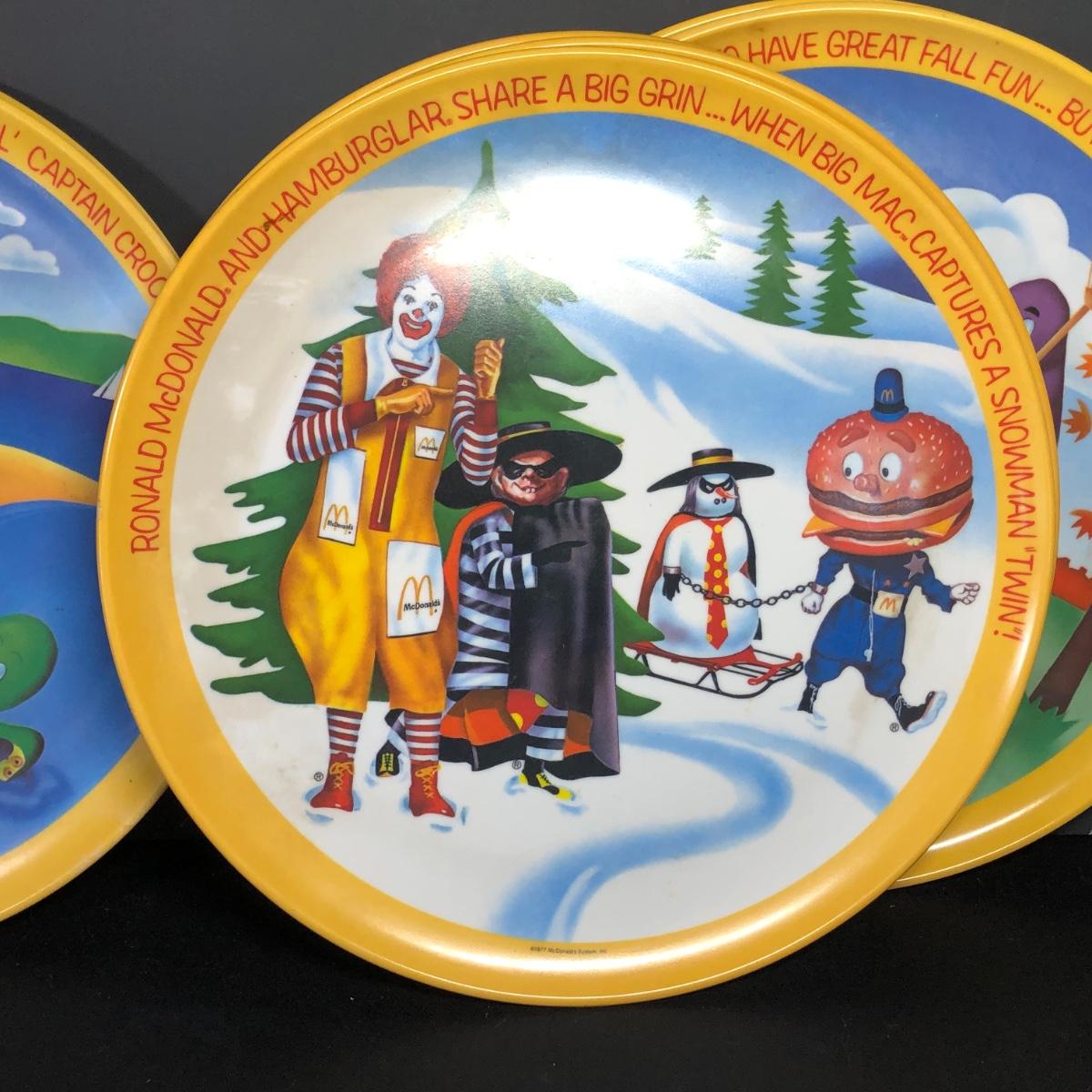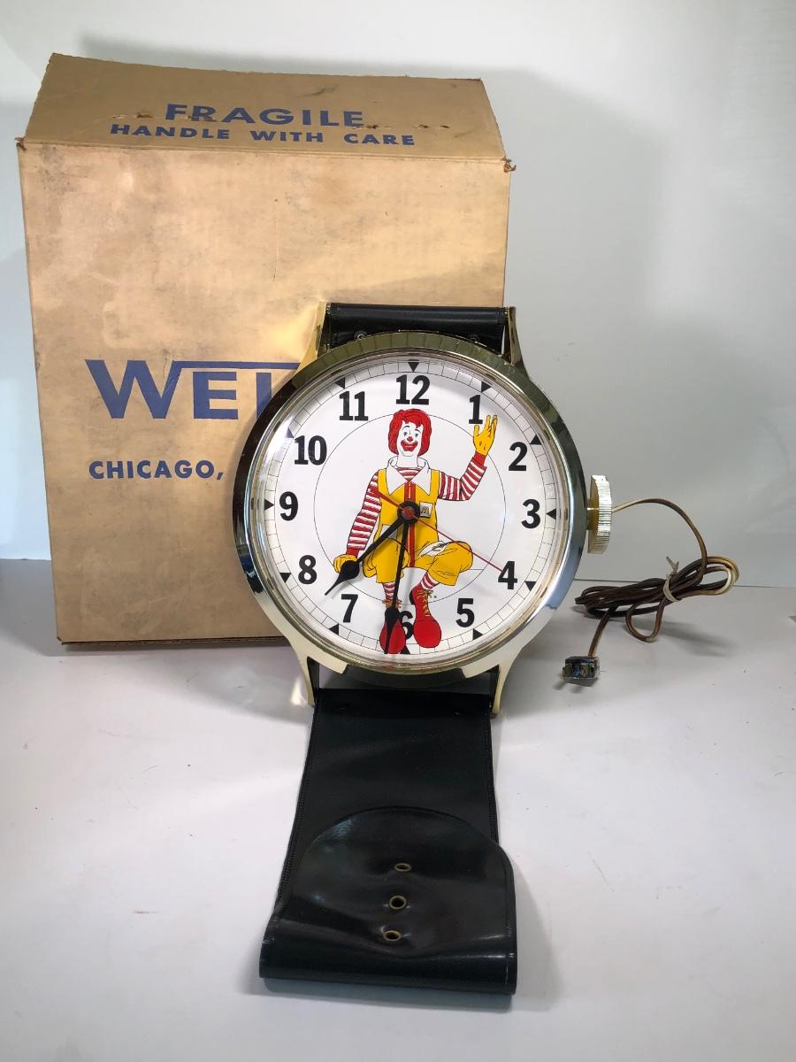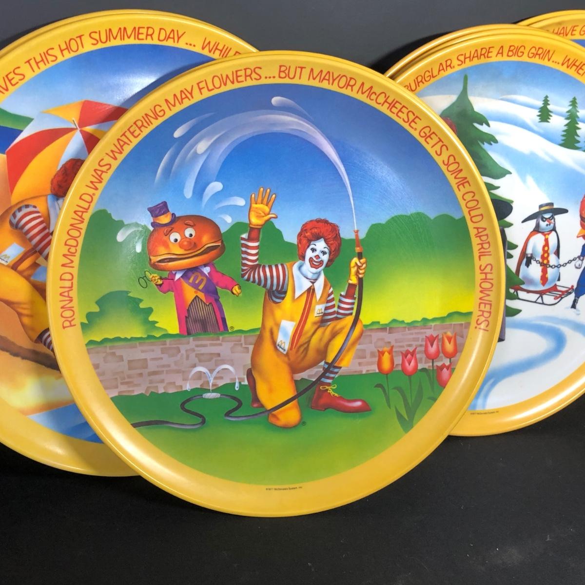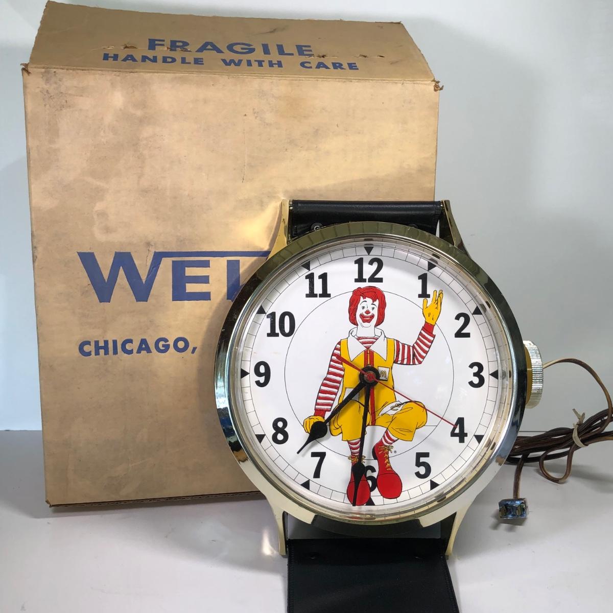 LOT 170M: Vintage McDonald's Collection - NIB Welby Ronald McDonald Giant Watch Clock, 1977 Seasonal Plates, Simon Marketing Character Plates w/ Cup Holder & Handheld Sonic Game Toys