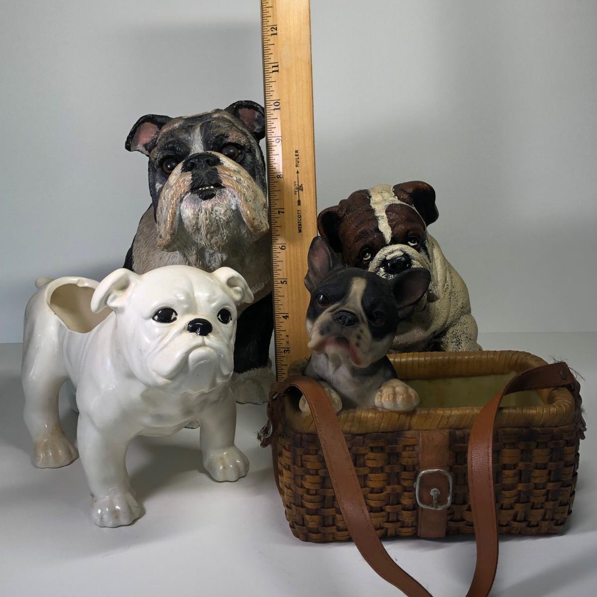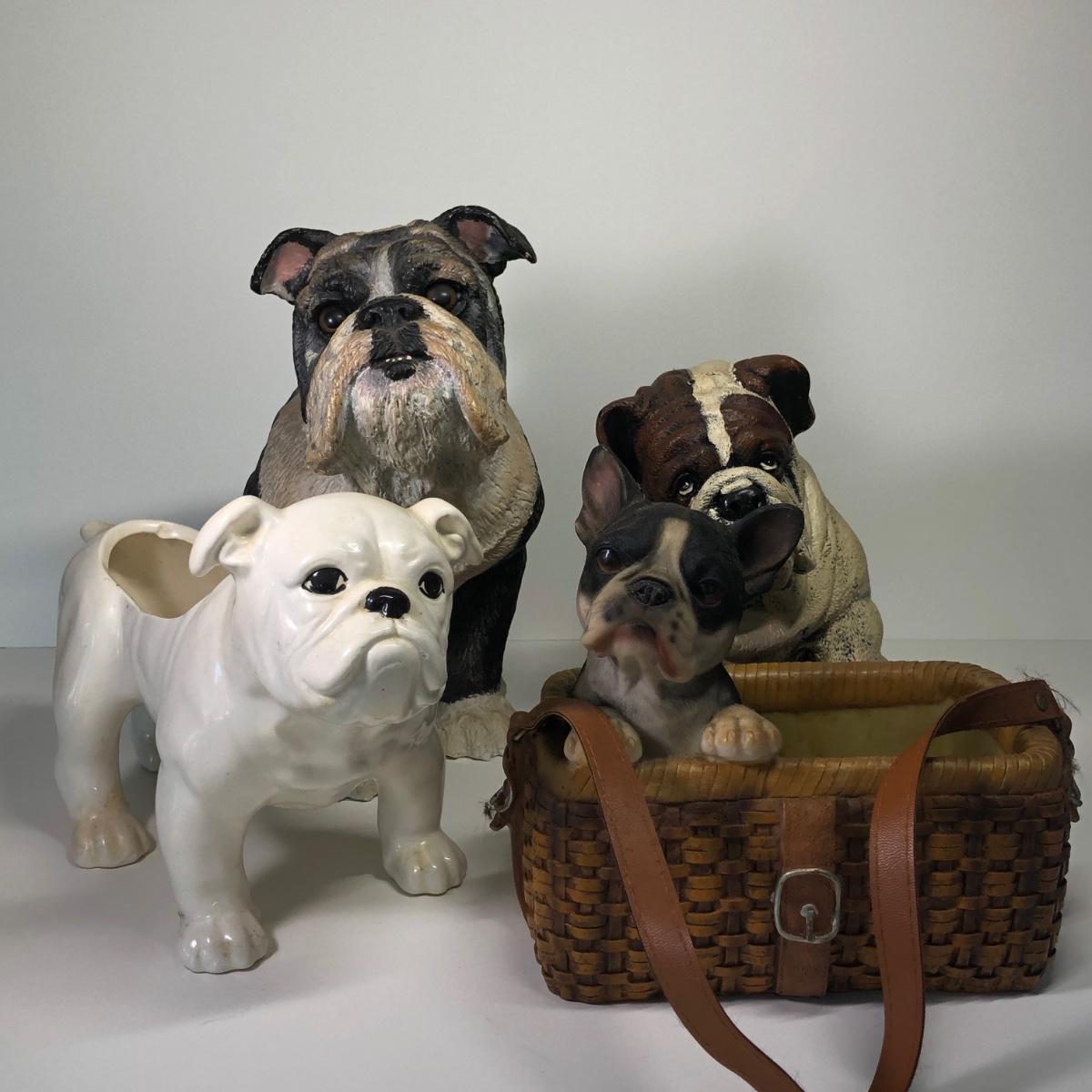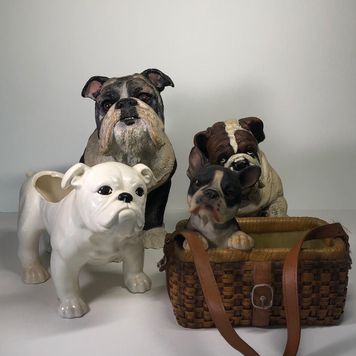 LOT 174M: Bulldog Statues, Planter & Hanging Decor