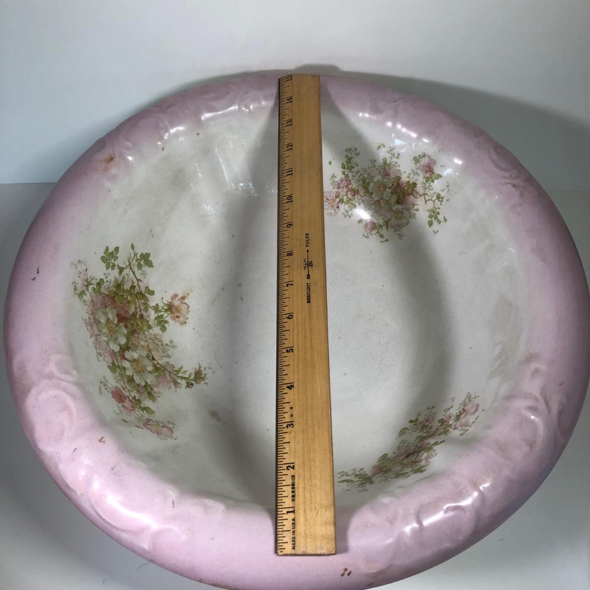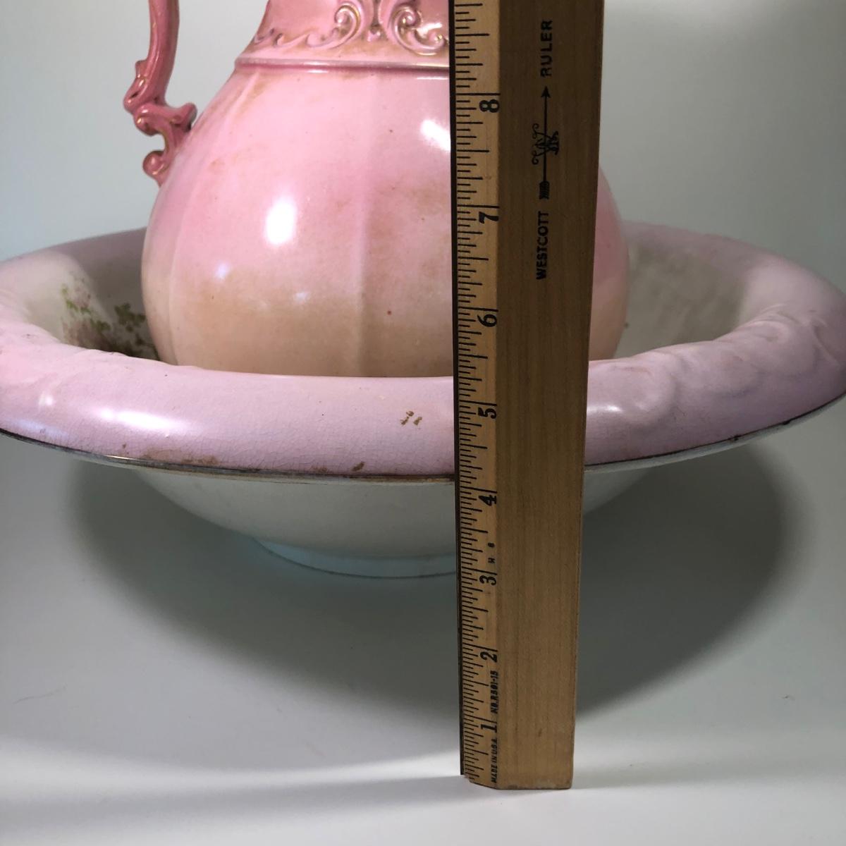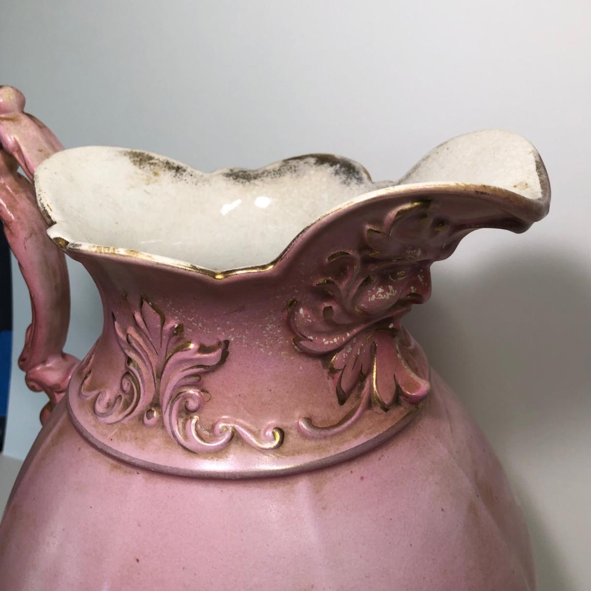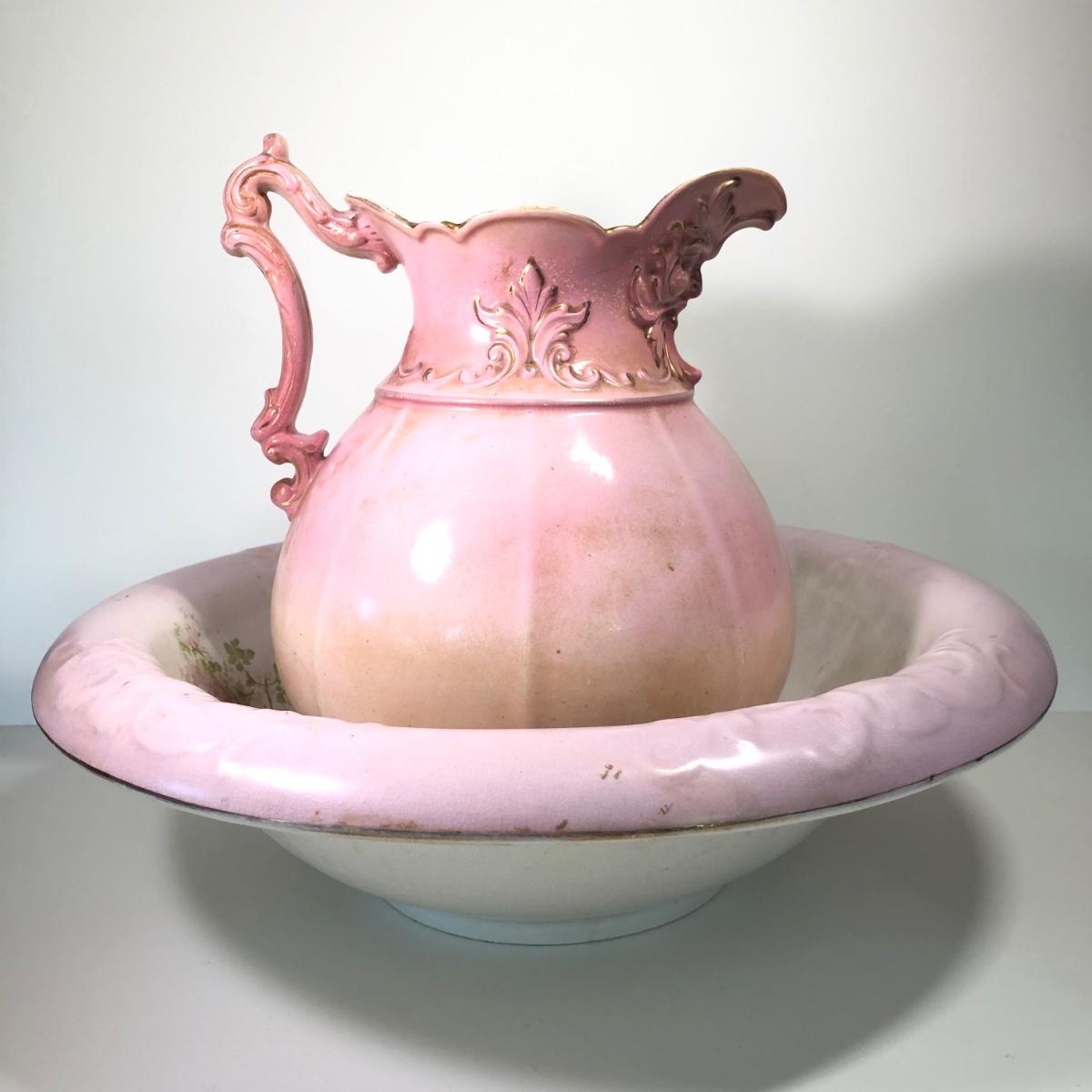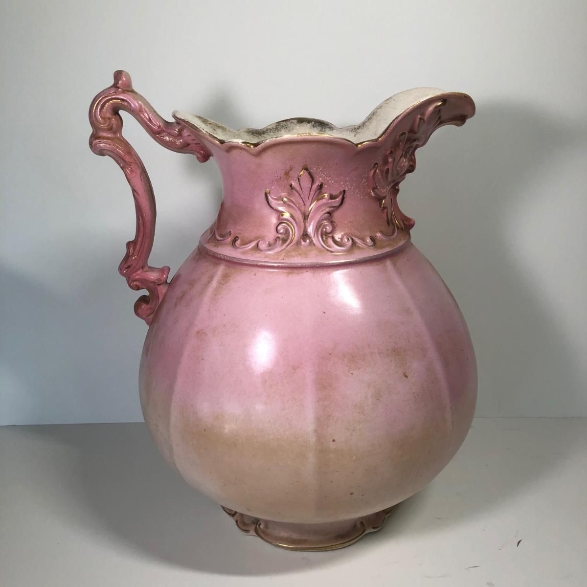 LOT 176M: Large Pink Pottery Pitcher w/ Basin