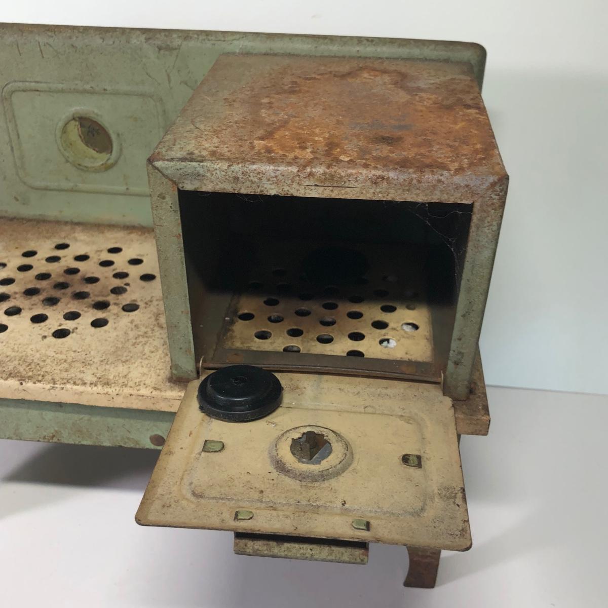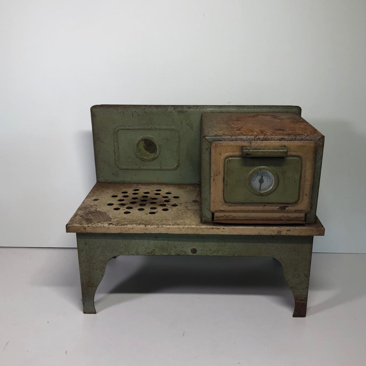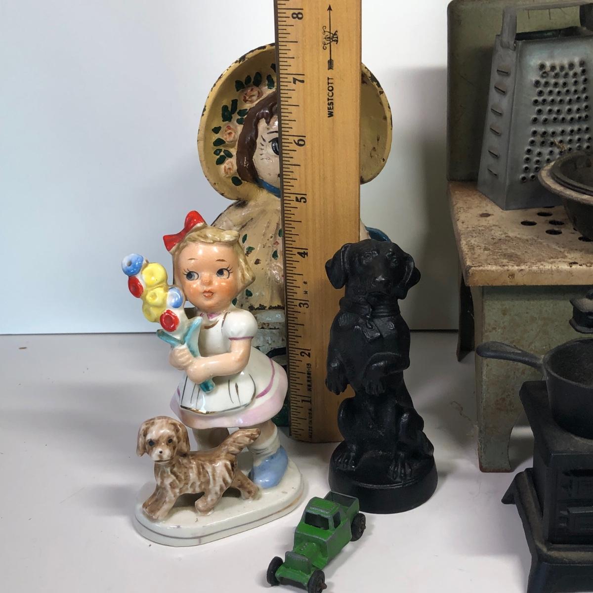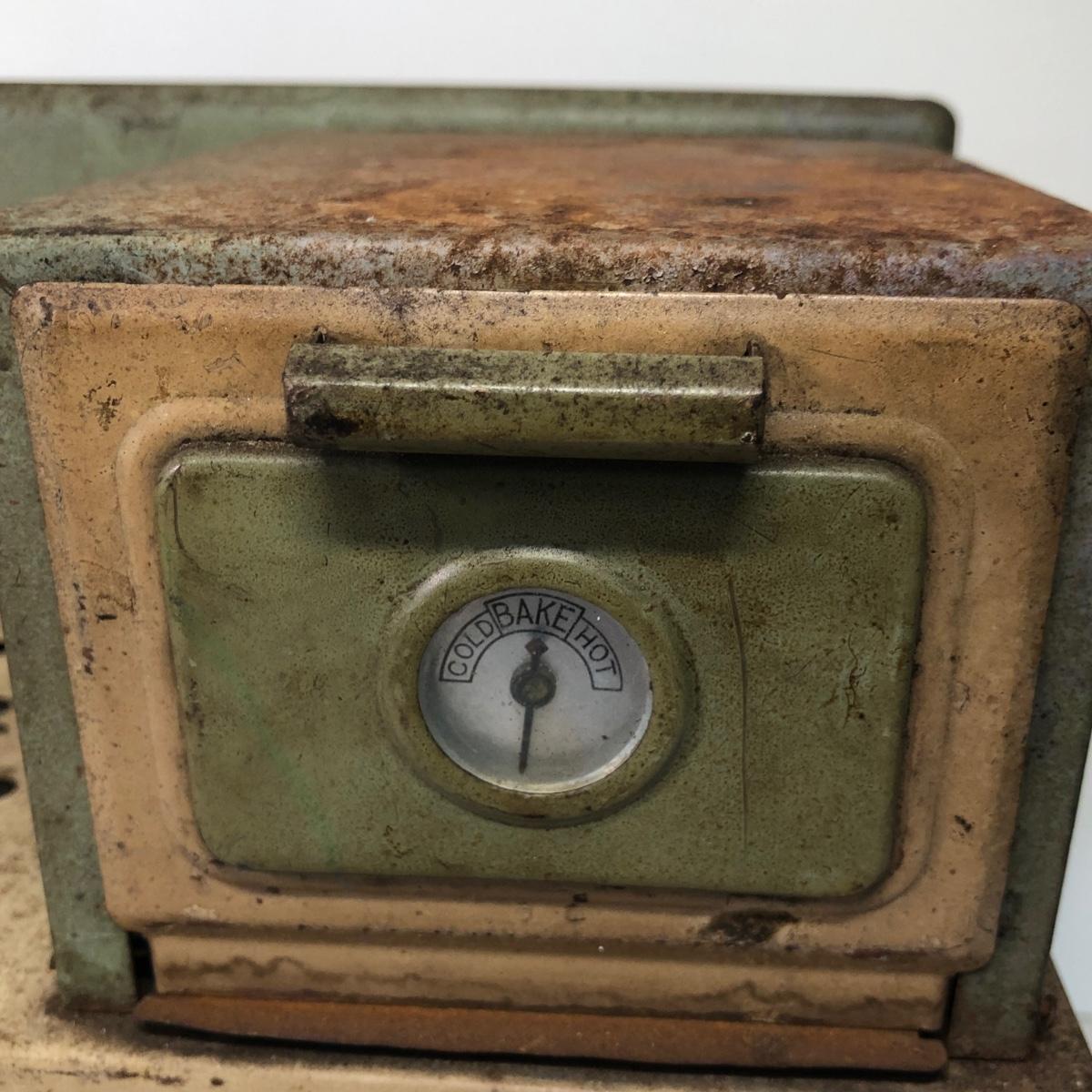 LOT 191M: Vintage Miniature Stove, Mini Kitchen Accessories, Cast Iron Coin Bank & More