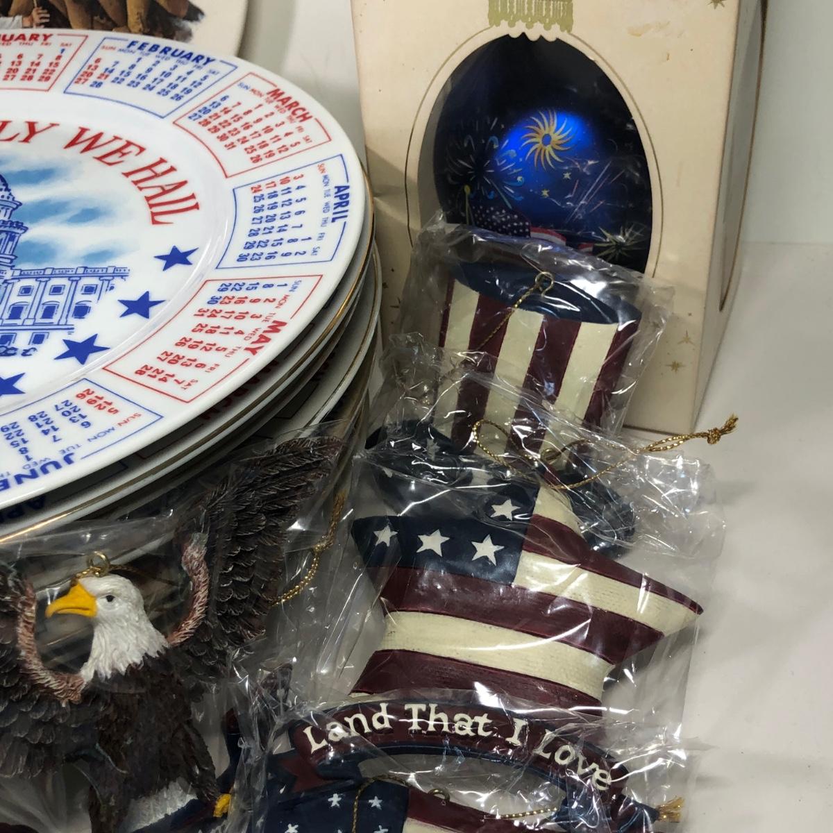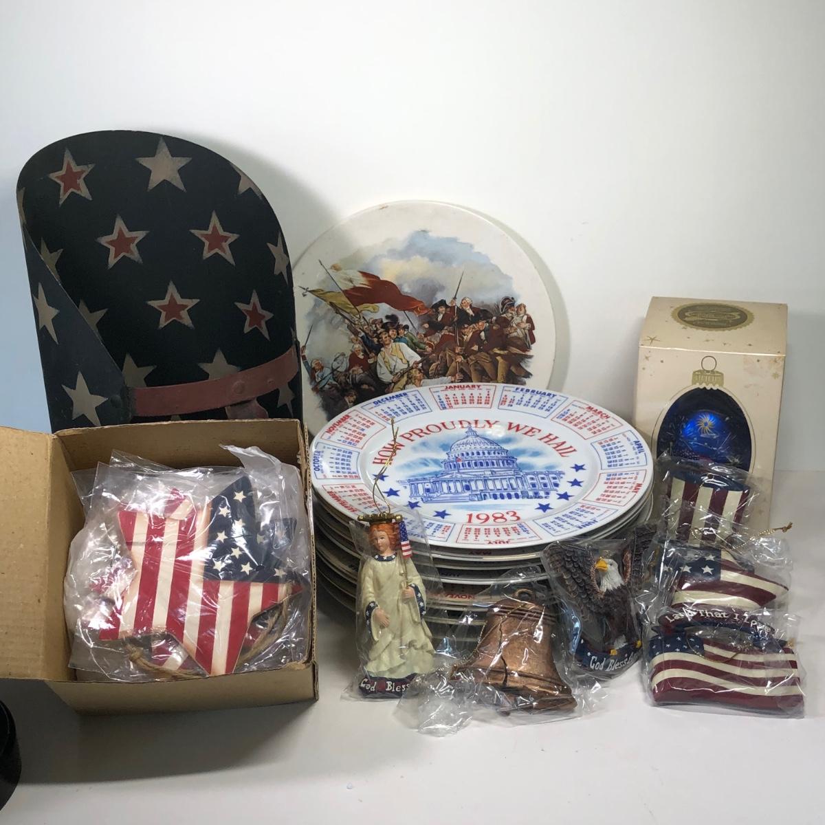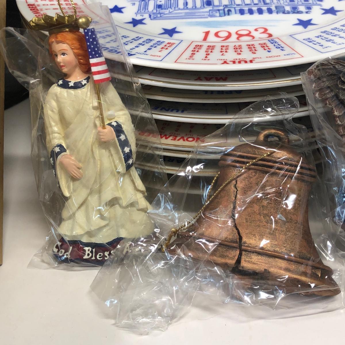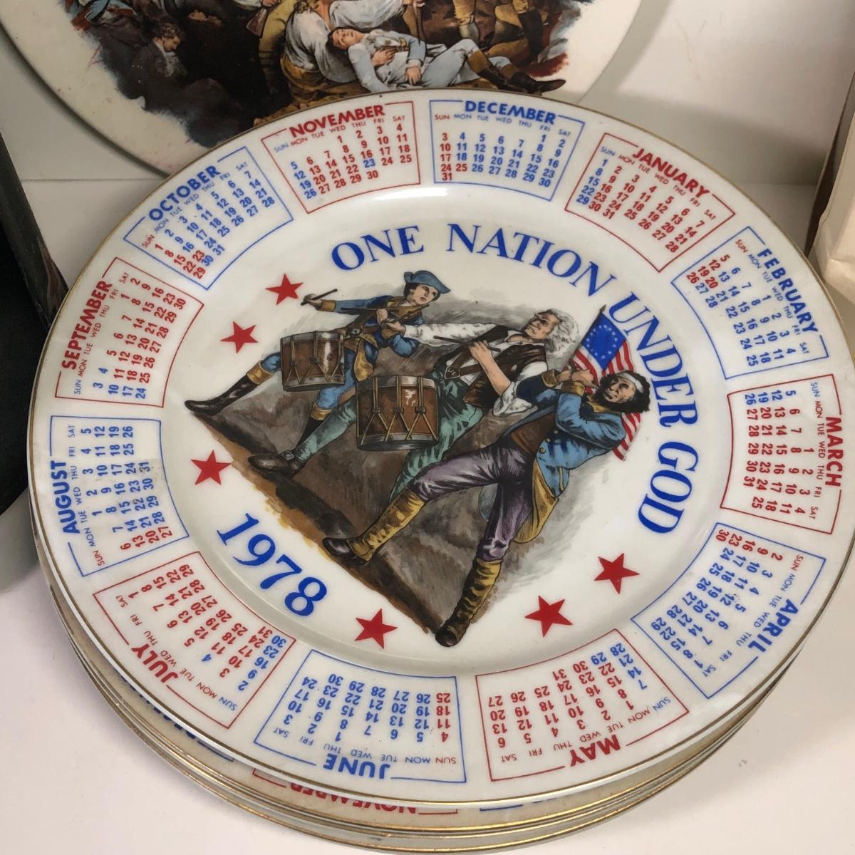 LOT 193M: Patriotic Collection - 1970s/80s Spencer Gifts Calendar Collection Plates, Wooden Ornaments & More