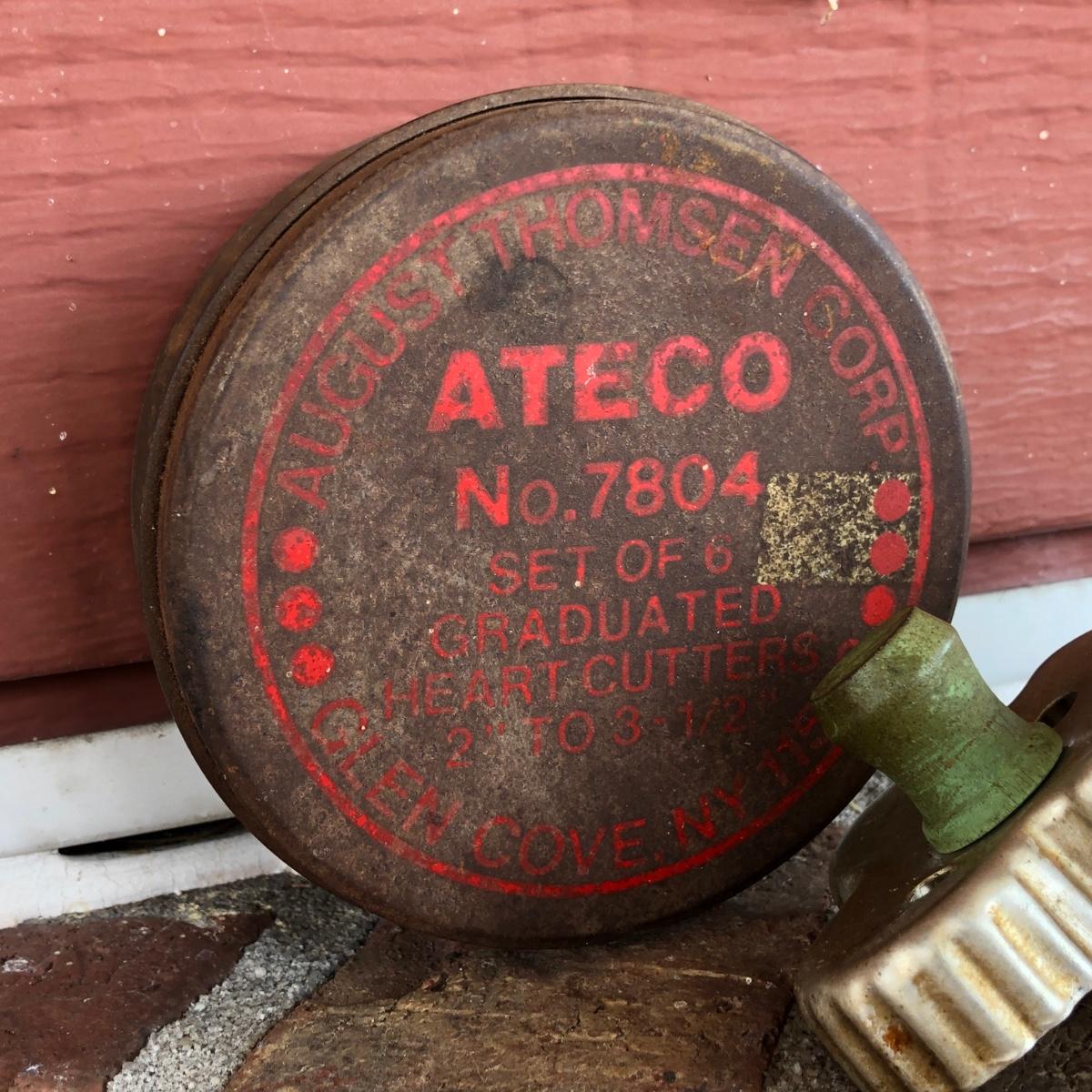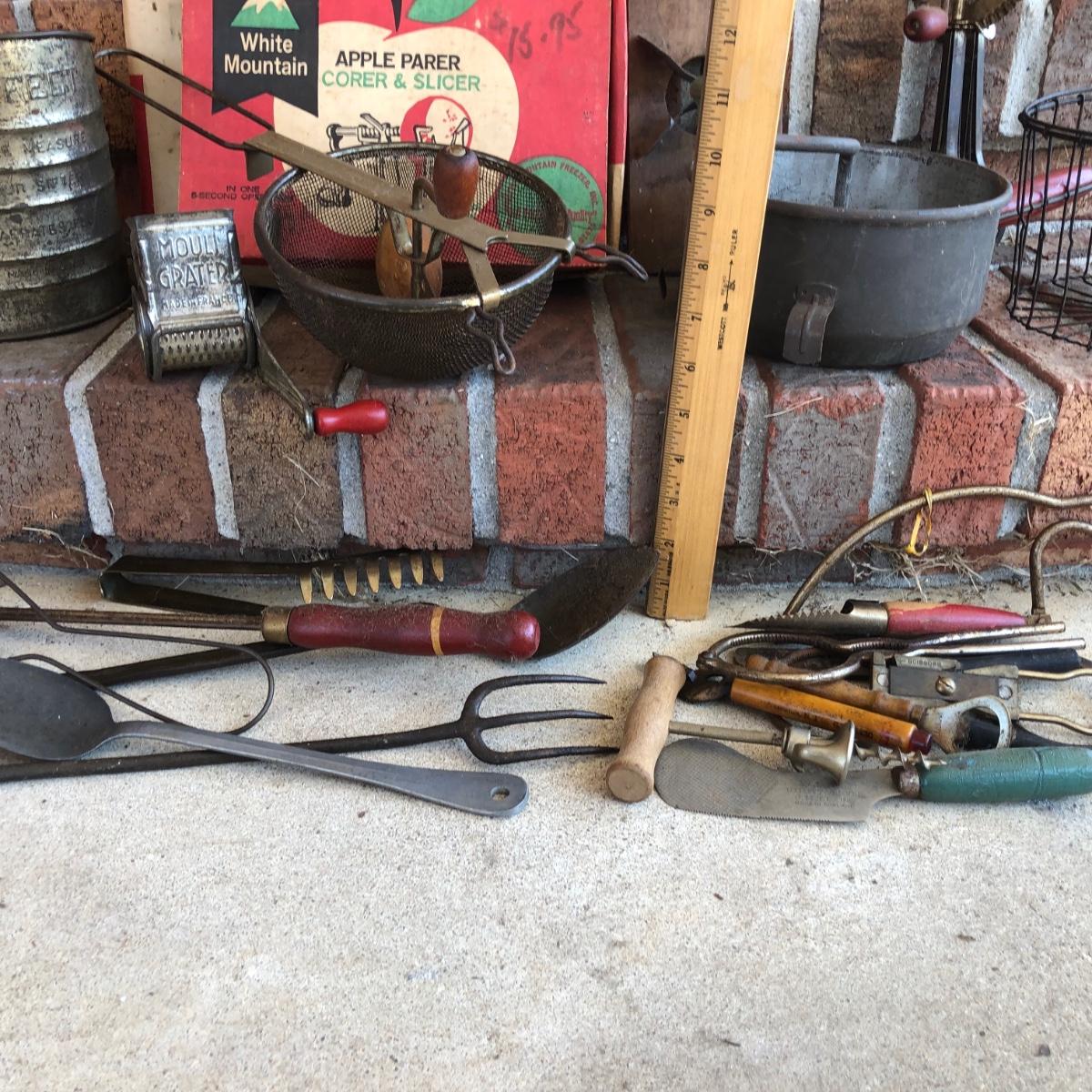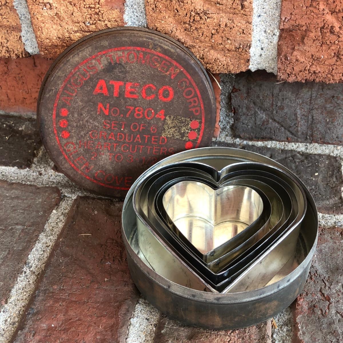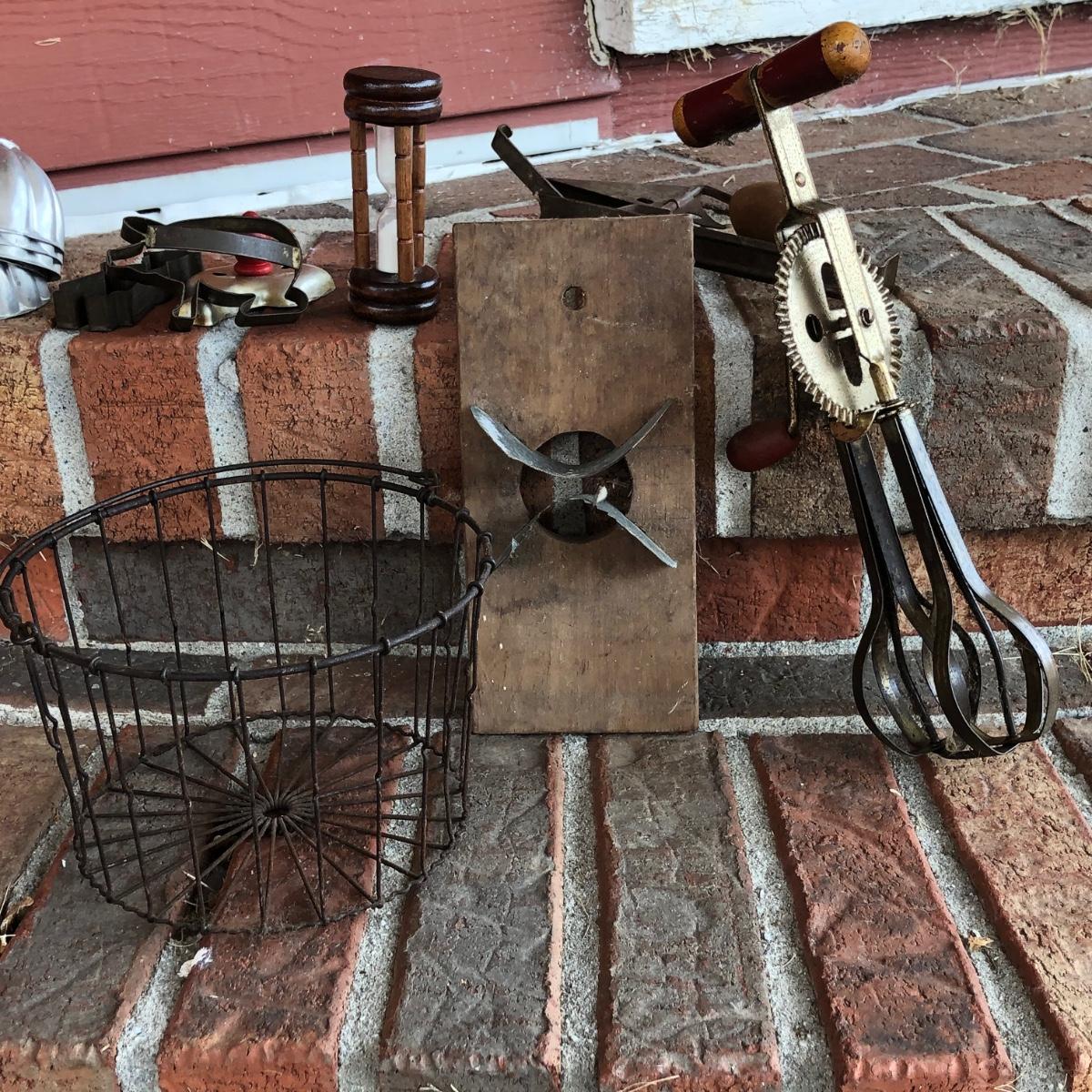 LOT 199M: Vintage Kitchen Collection - White Mountain Apple Parer in Box, "Perfect" Sifter, Ateco No 7804 Set of Heart Cookie Cutters, Jello Moulds, Mouli Grater & More