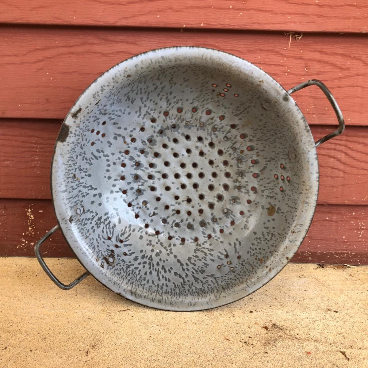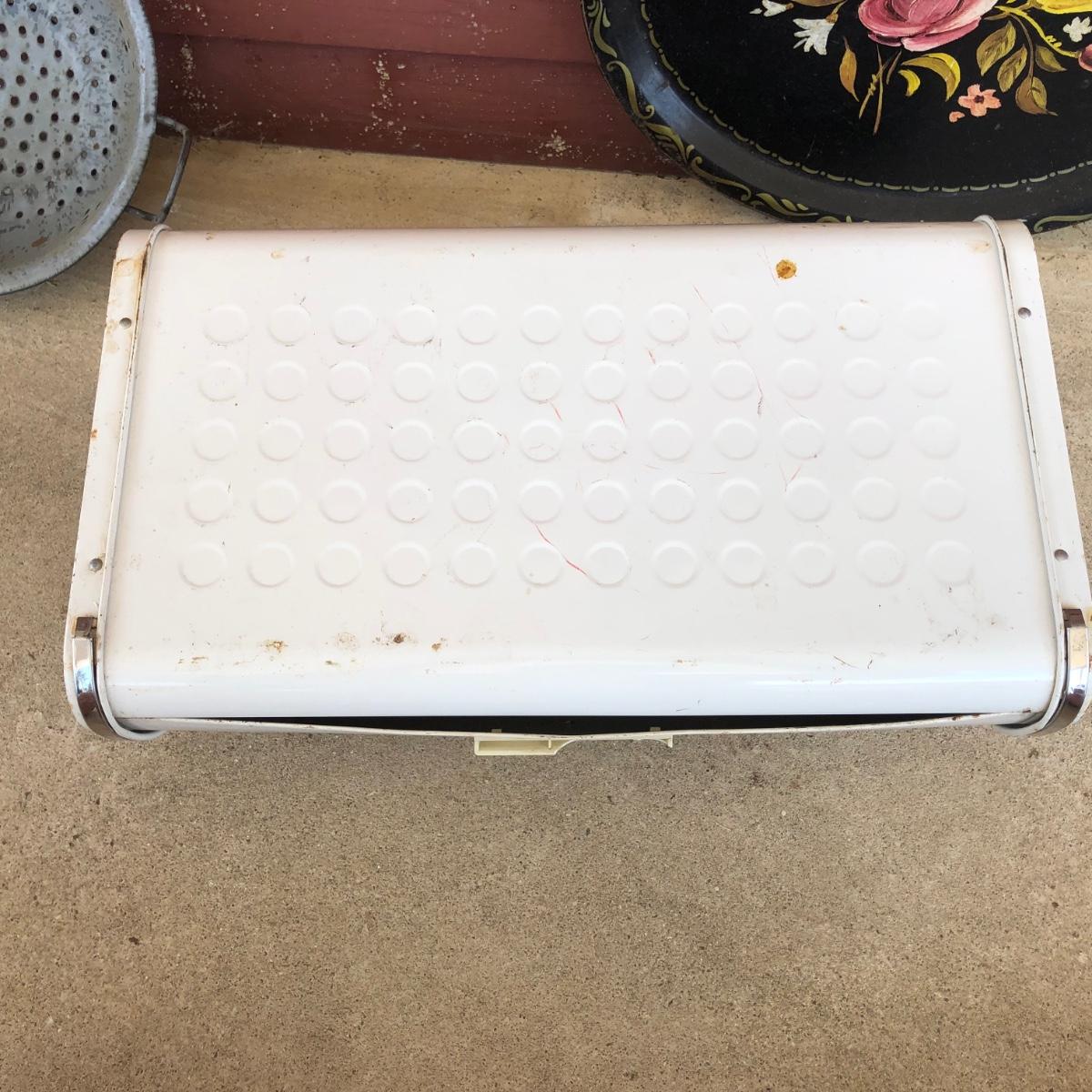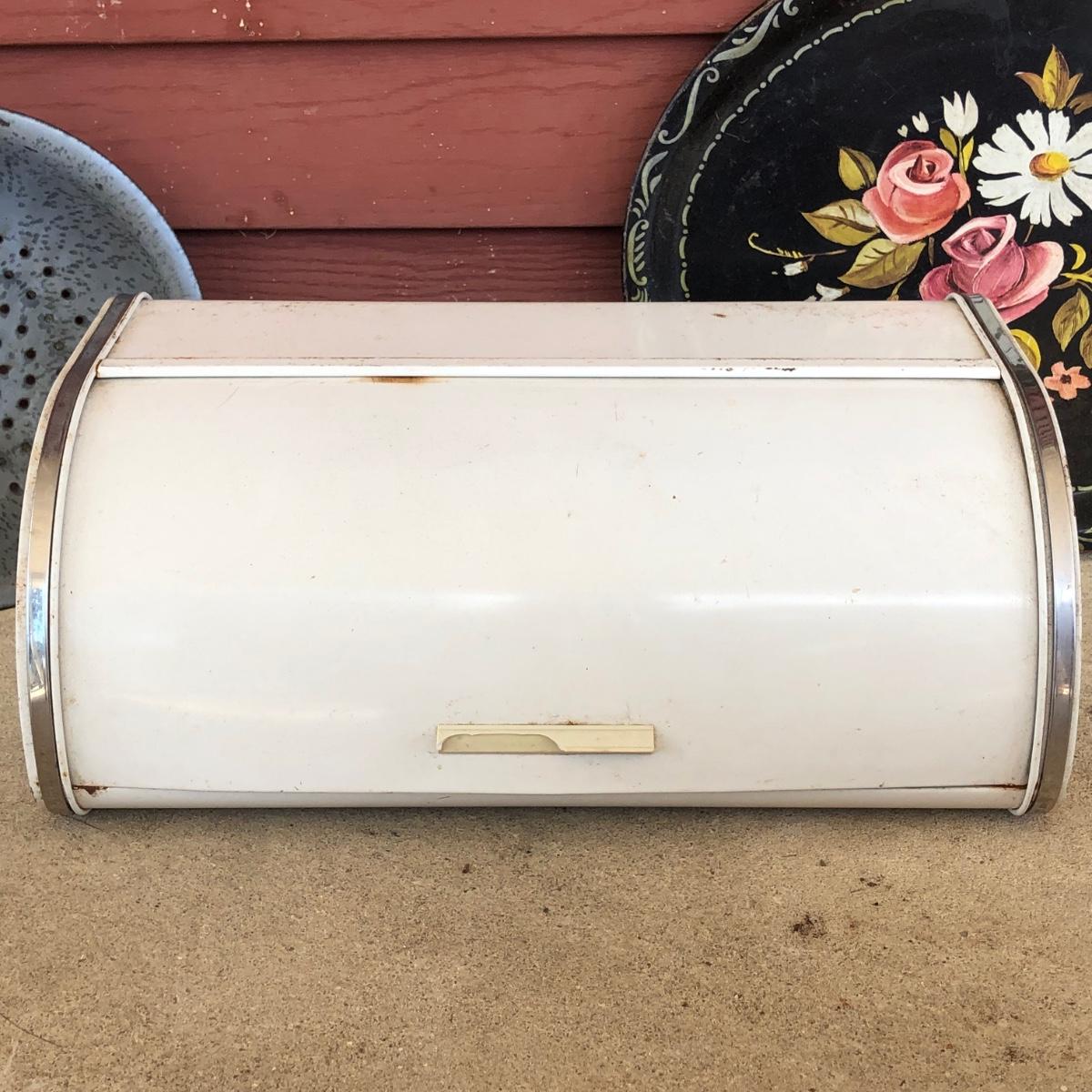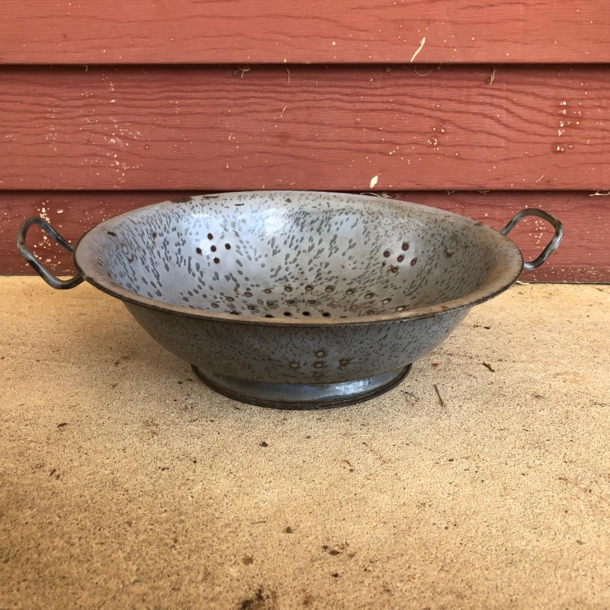 LOT 201M: Enamel "Savory" Dish, Bread Box, Collander, Kitchen Tools & More